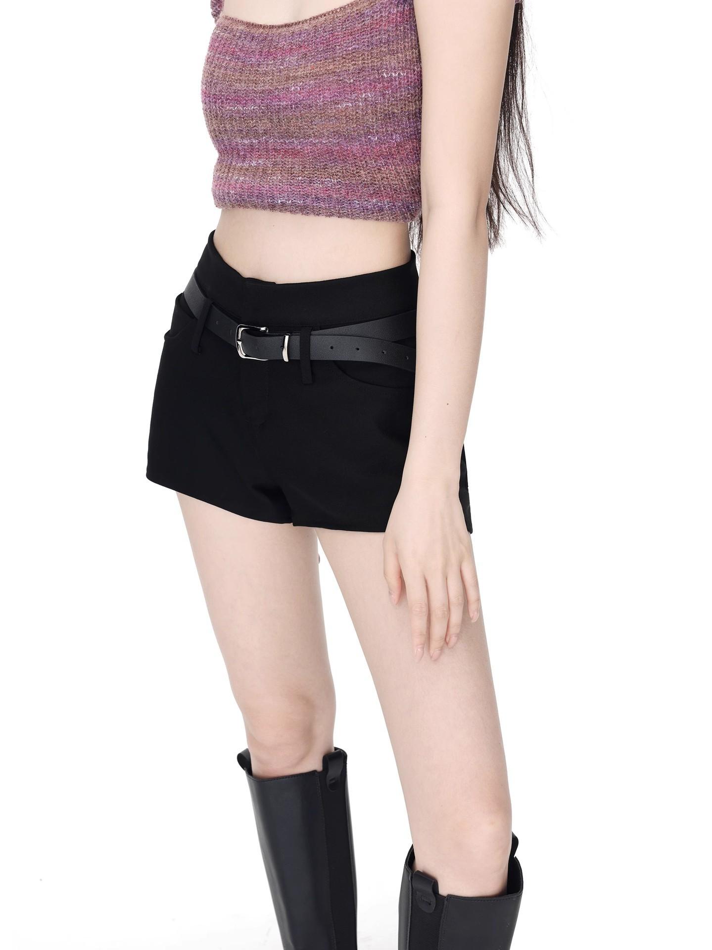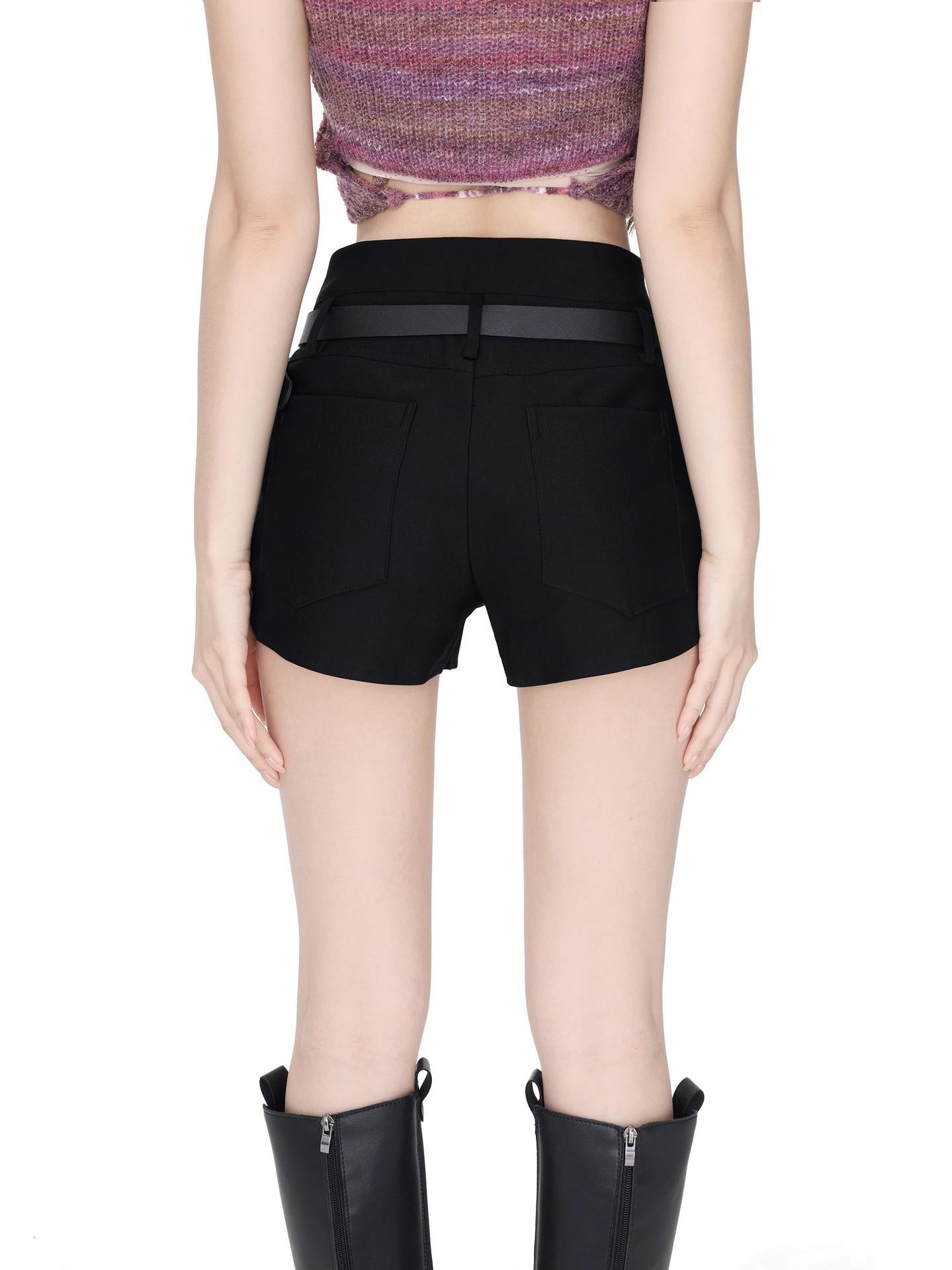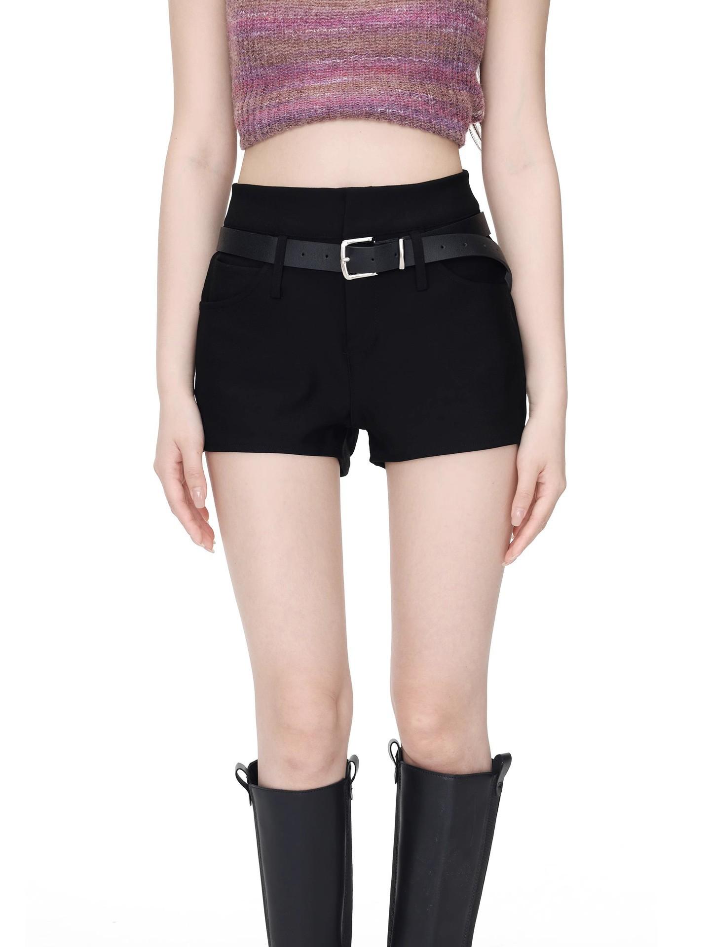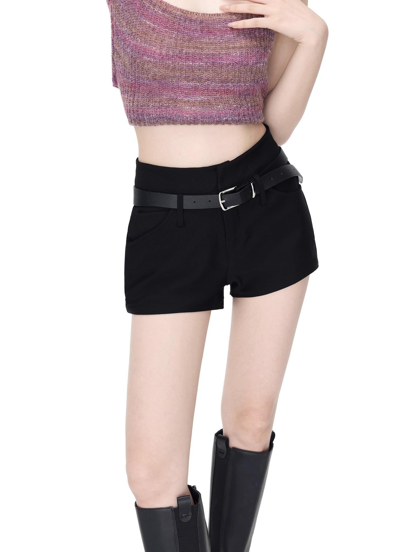 Shorts Negros Calientes para Mujer en Verano, Cintura Alta Sexy Chicas Calientes con Cinturones, Look Adelgazante Pantalones Cortos Casuales Calientes