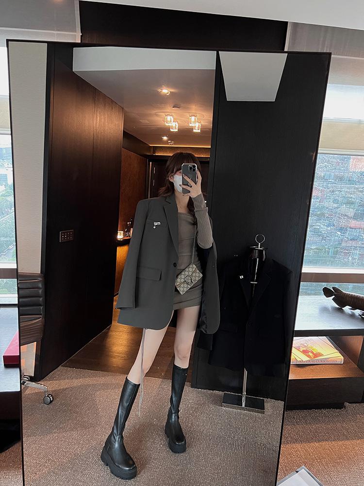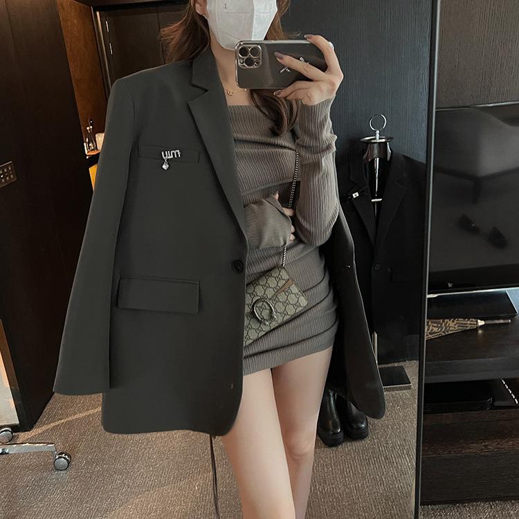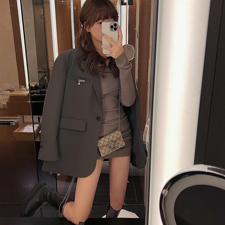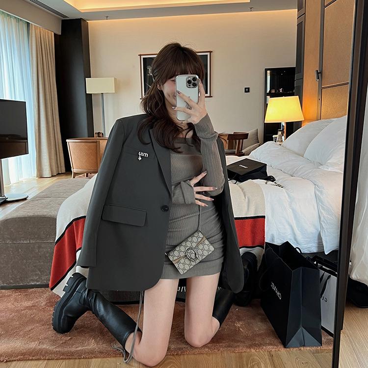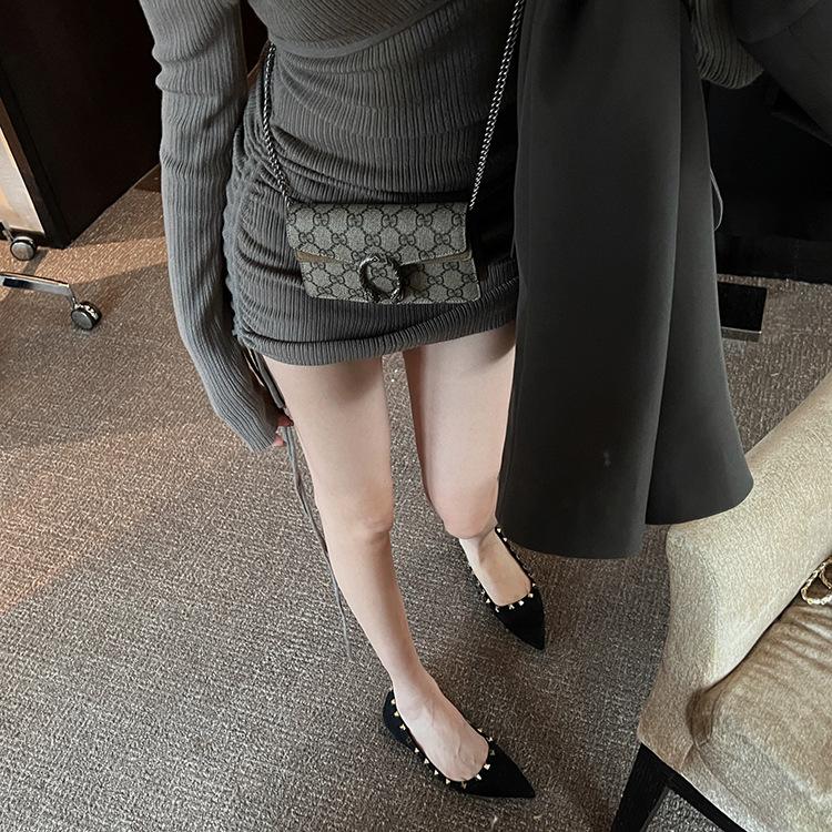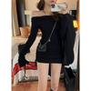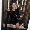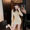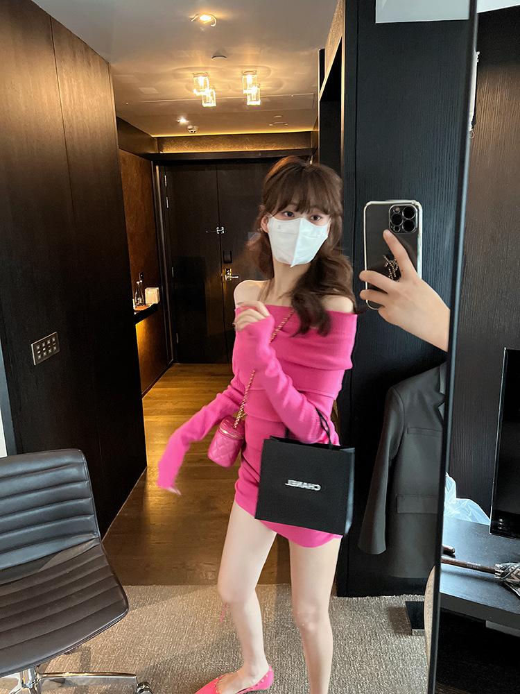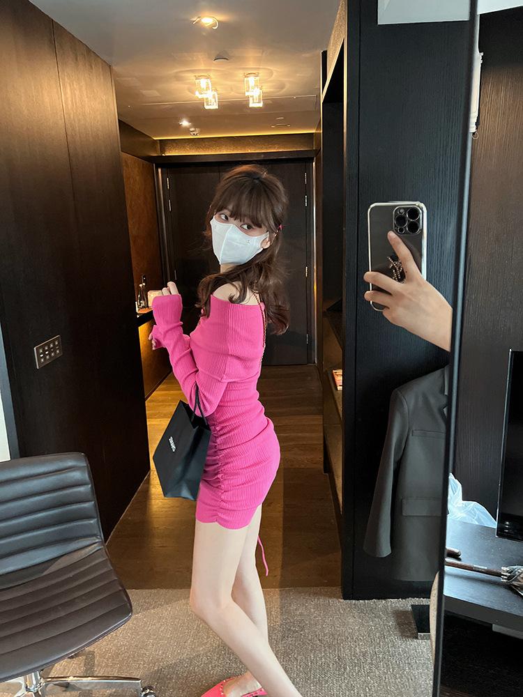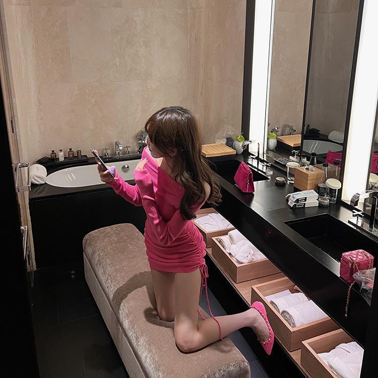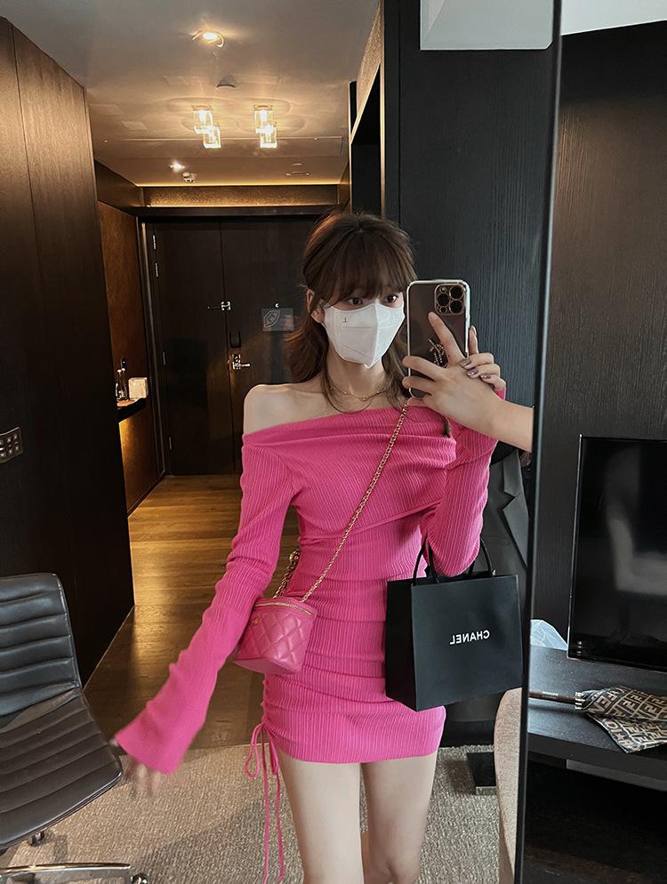 Vestido ajustado de punto con hombros descubiertos y manga larga para mujer, sexy y sexy, ajustado hasta la cadera.
