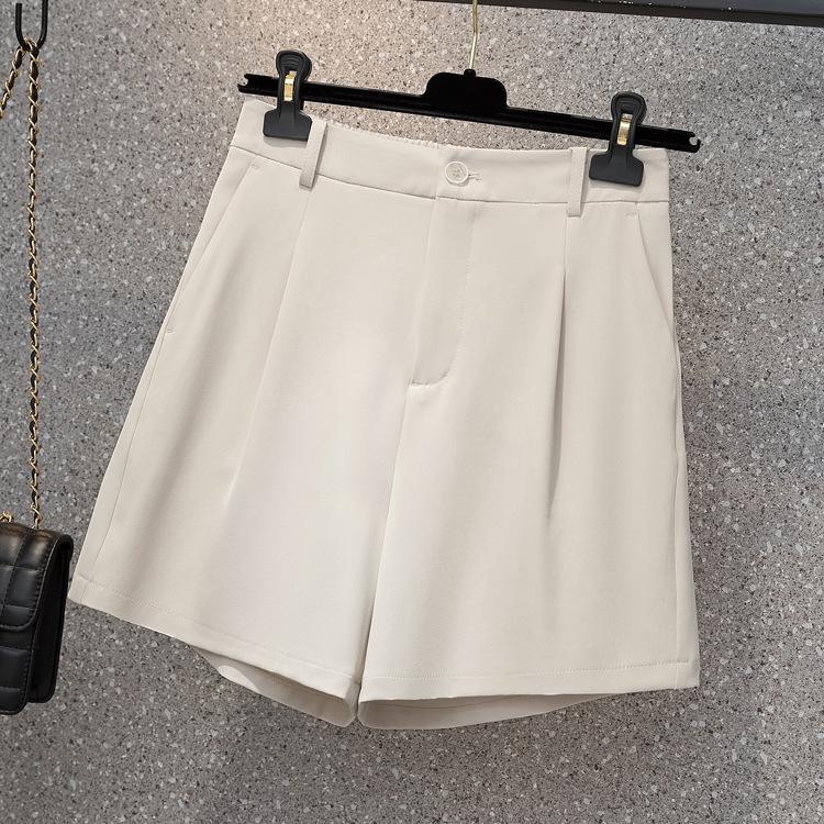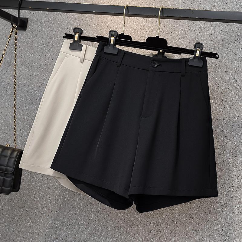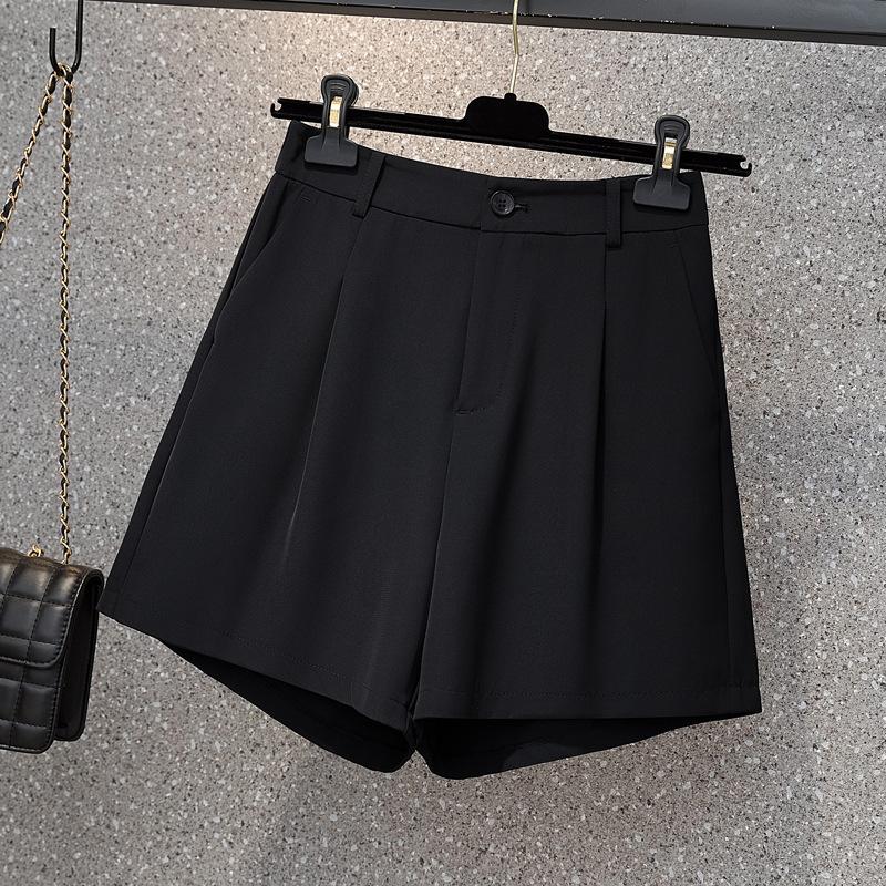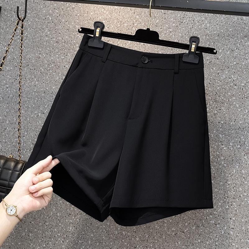 2024 verano talla grande para mujer traje de chifón negro shorts cintura elástica delgados pequeños pantalones de pierna ancha en A