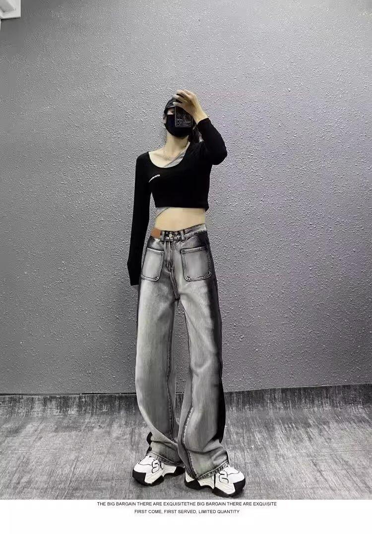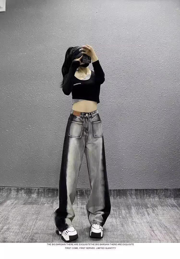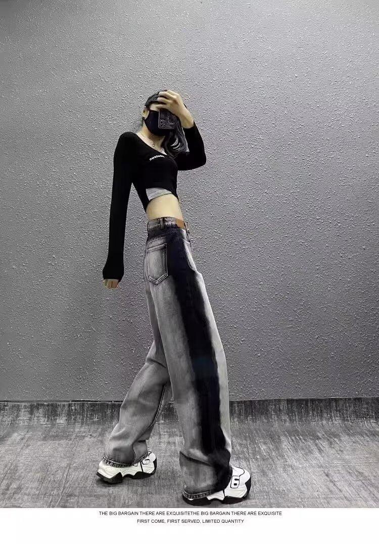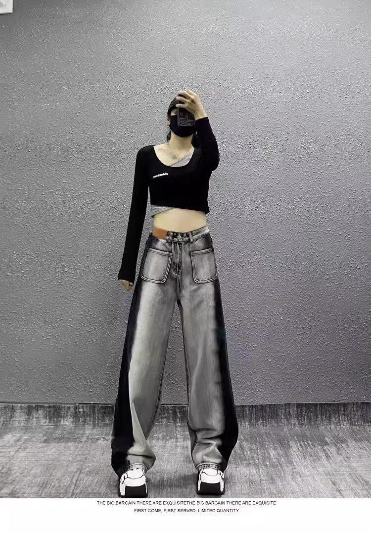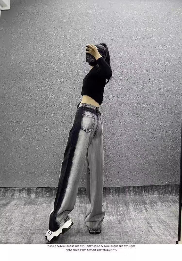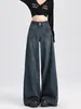 Jeans retro azules para chica gordita de talla grande, diseño nicho para mujer, Primavera y Otoño, cintura alta, rectos, de pierna ancha, moda urbana ins