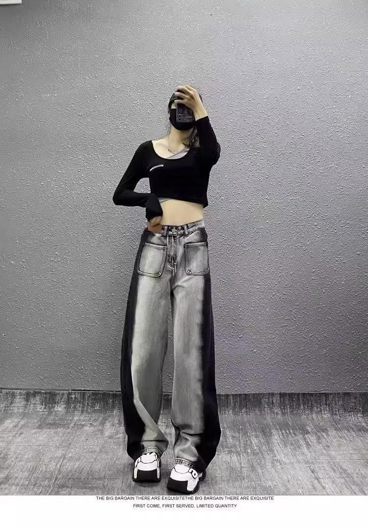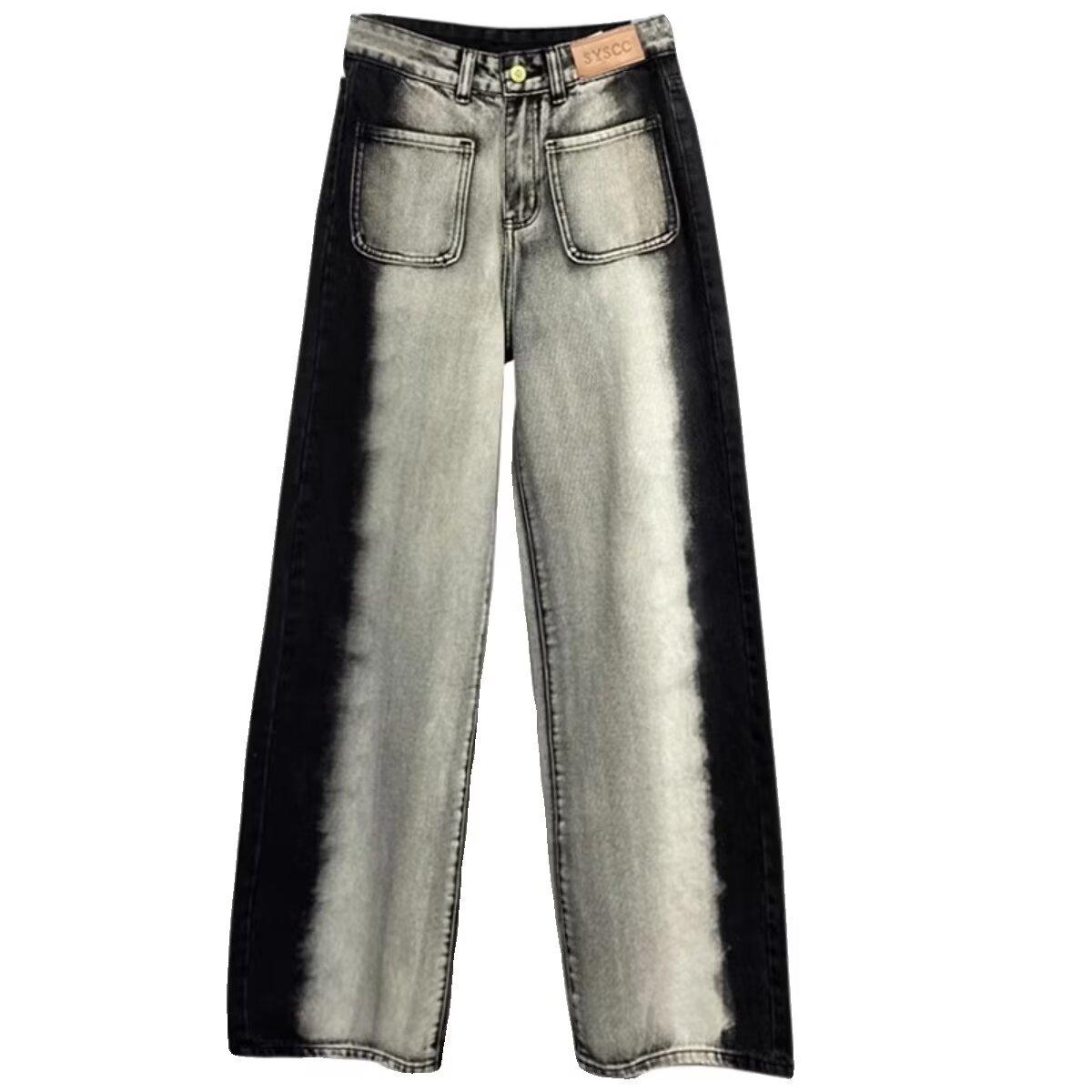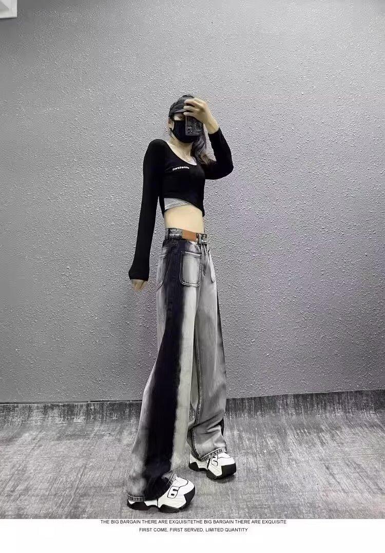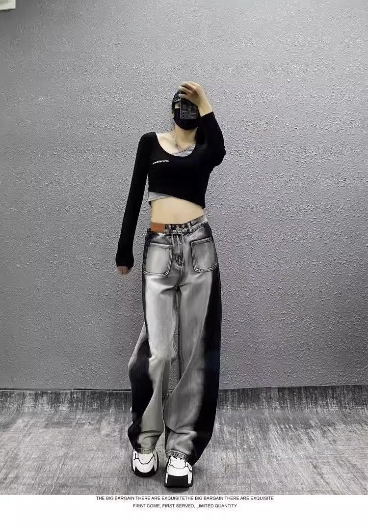 Jeans retro azules para chica gordita de talla grande, diseño nicho para mujer, Primavera y Otoño, cintura alta, rectos, de pierna ancha, moda urbana ins