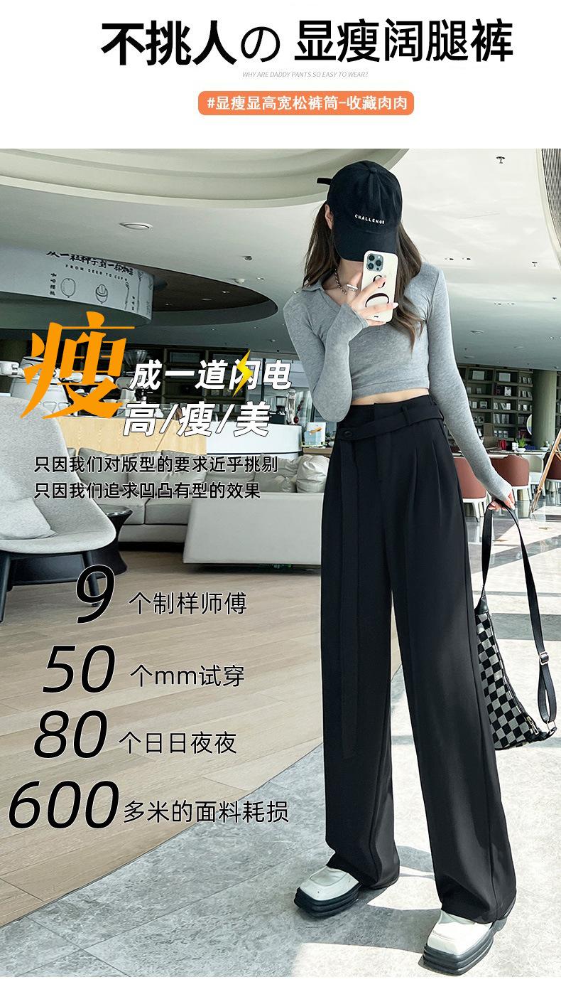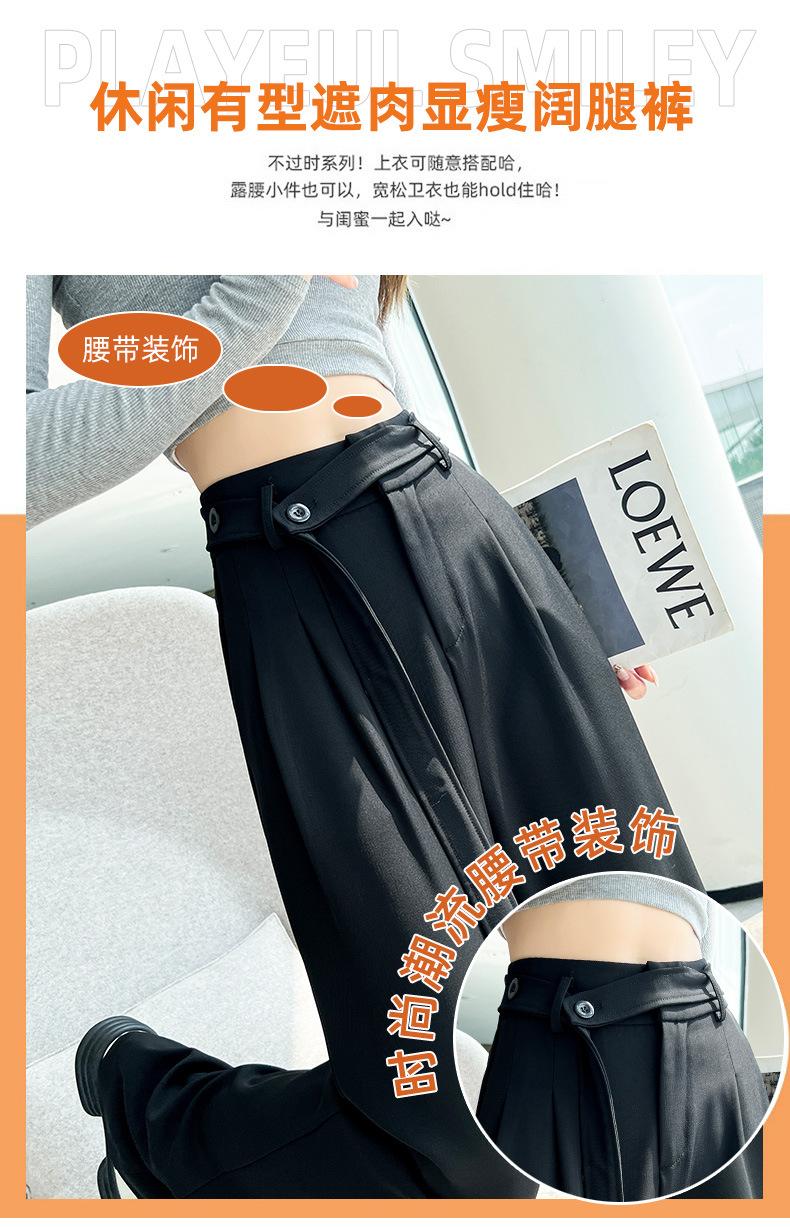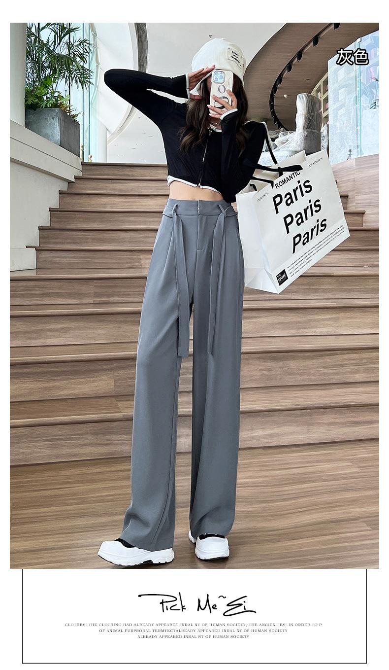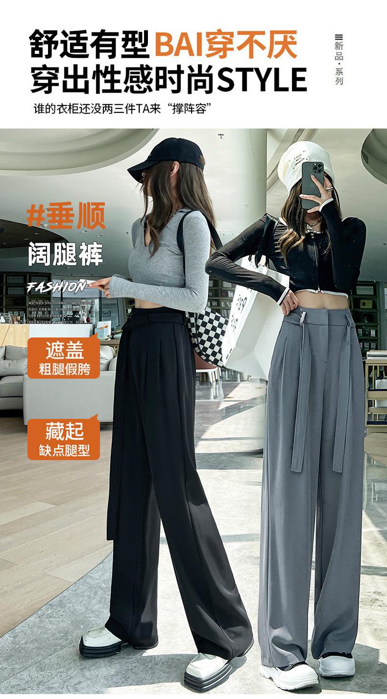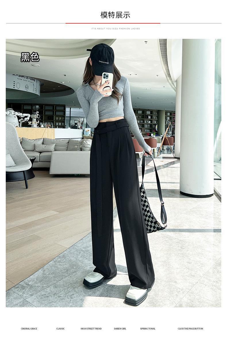 Pantalones de Traje de Moda con Cinturón para Mujer, Otoño 2024 Nuevo Suelto Adelgazante Drapeado Recto Casual Hasta el Piso E593
