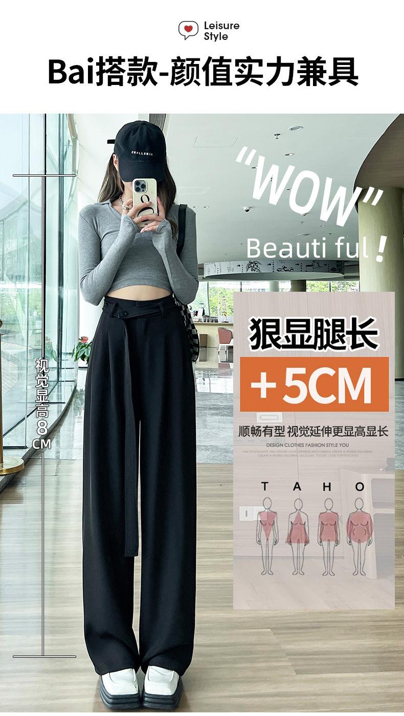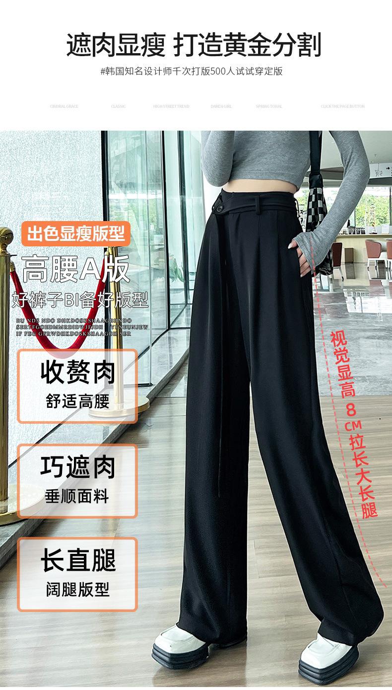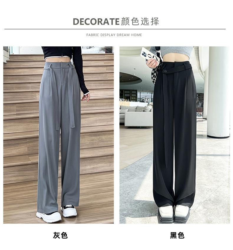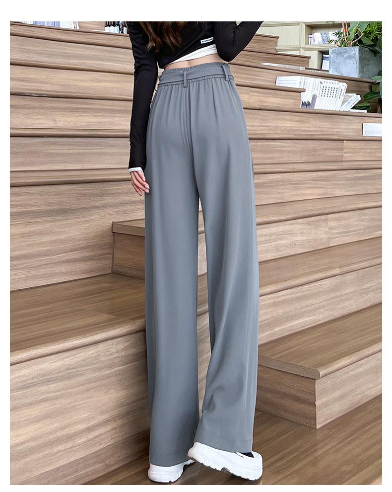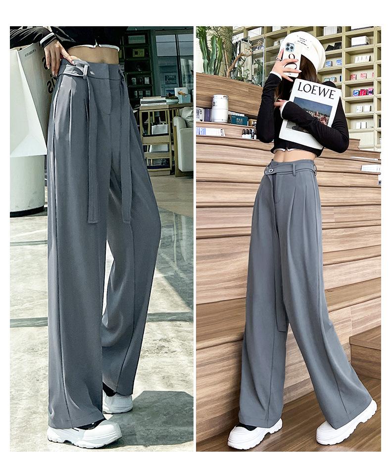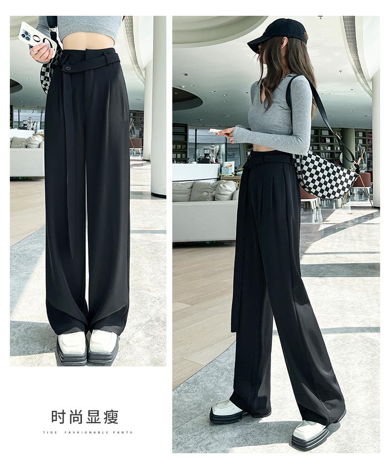Pantalones de Traje de Moda con Cinturón para Mujer, Otoño 2024 Nuevo Suelto Adelgazante Drapeado Recto Casual Hasta el Piso E593