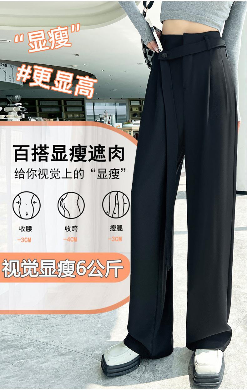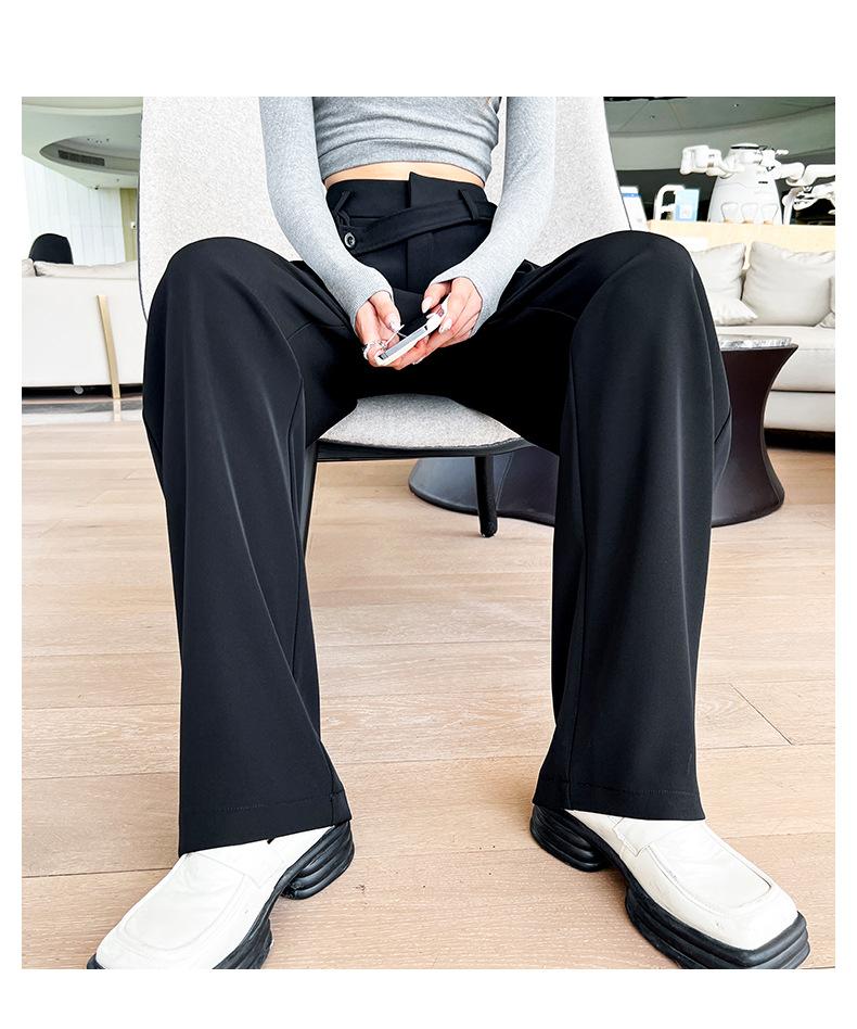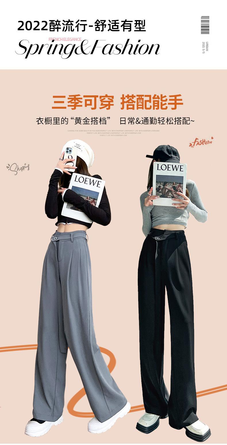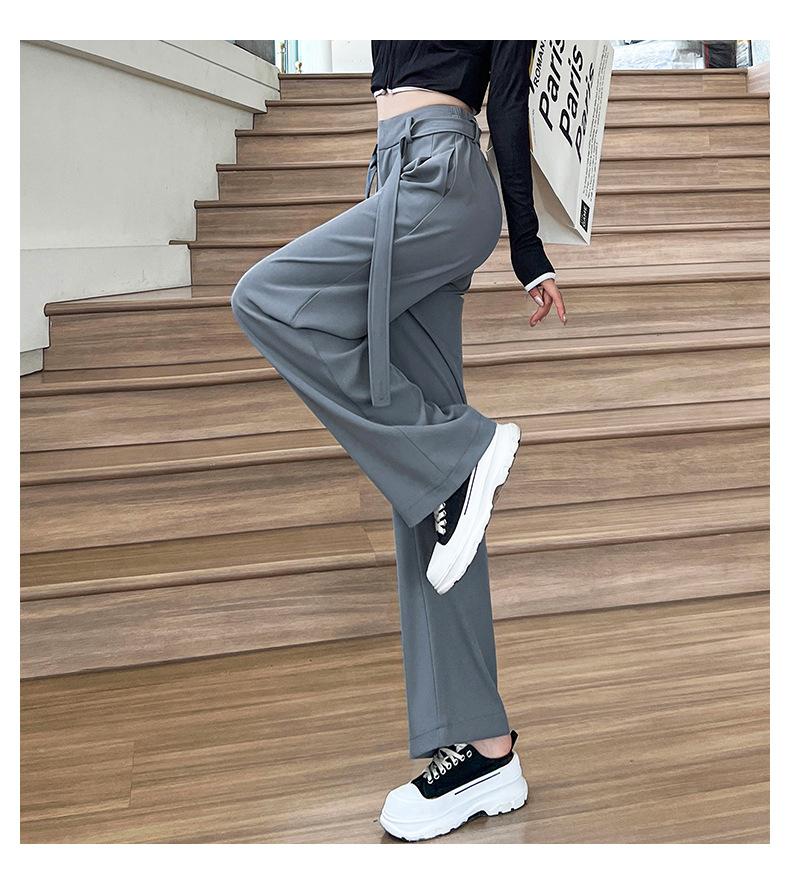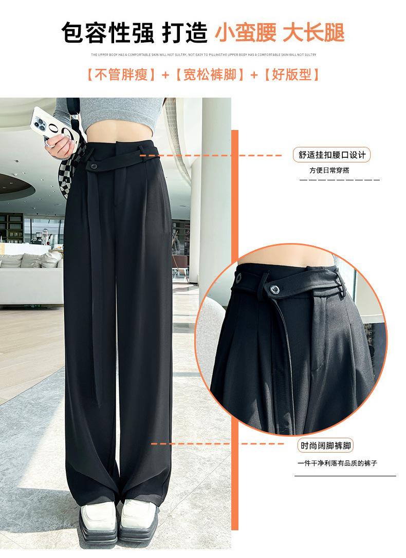 Pantalones de Traje de Moda con Cinturón para Mujer, Otoño 2024 Nuevo Suelto Adelgazante Drapeado Recto Casual Hasta el Piso E593