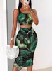 2024 Novo Verão Europeu e Americano Moda Feminina Sexy Sling Top Cintura Alta Saia De Quadril Apertado Impresso