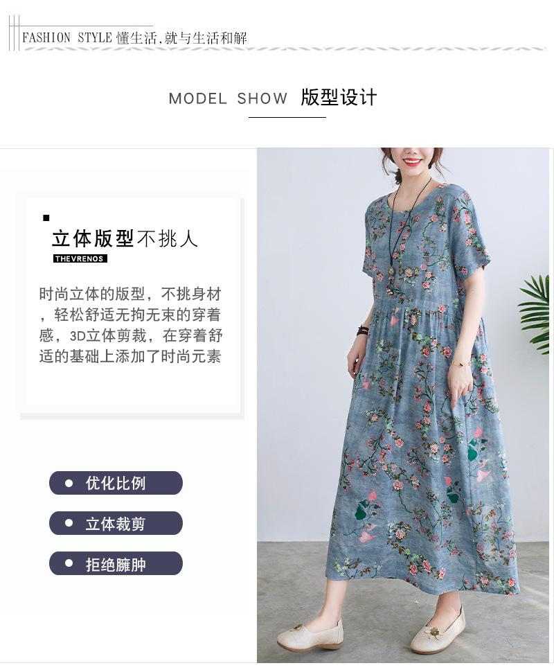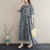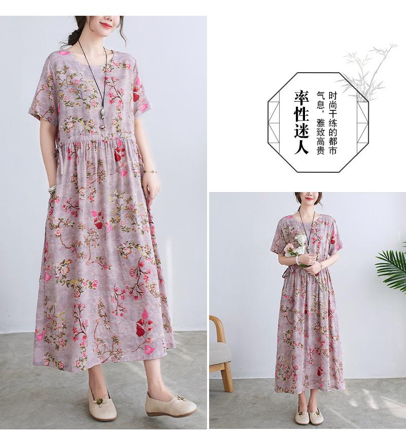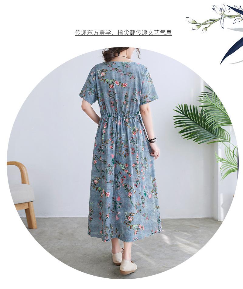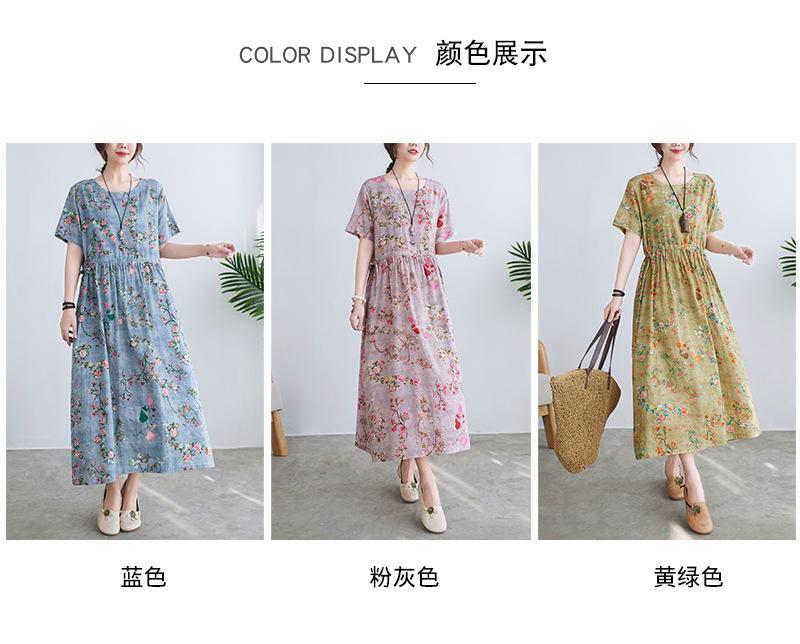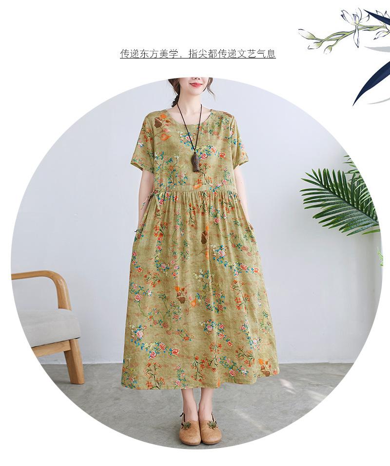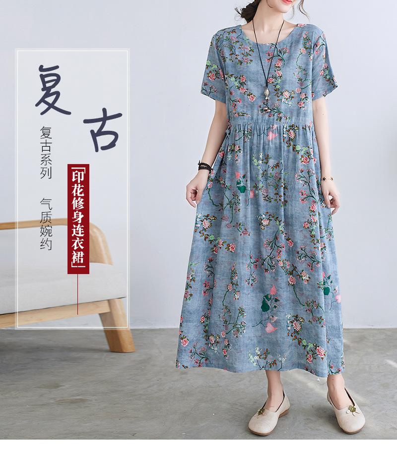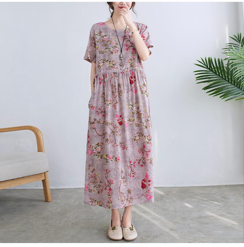 Vestido Floral Artístico Retro de Algodón y Lino para Mujer 2024 Verano Nuevo Vestido Largo Holgado con Cintura Ceñida y Bajo Amplio