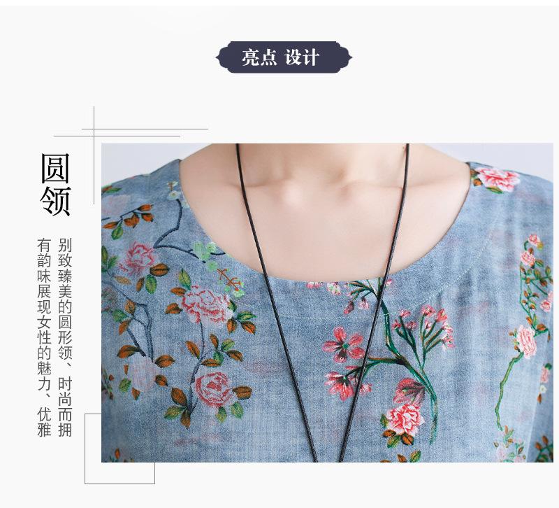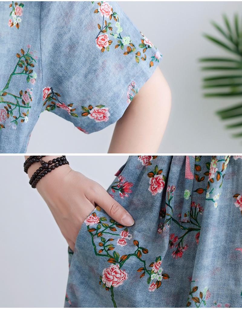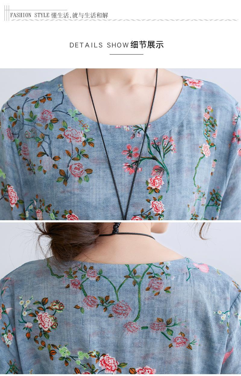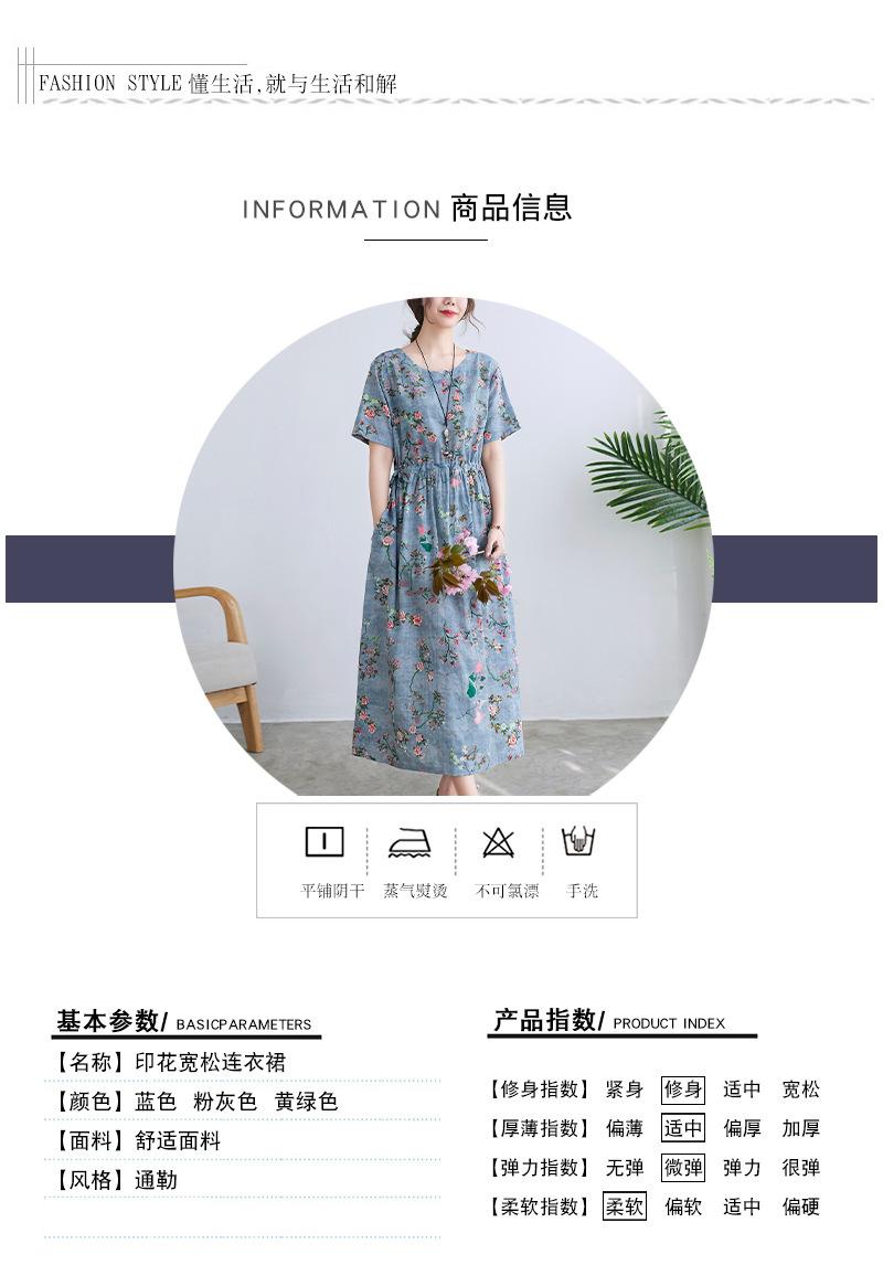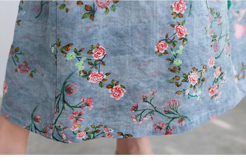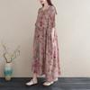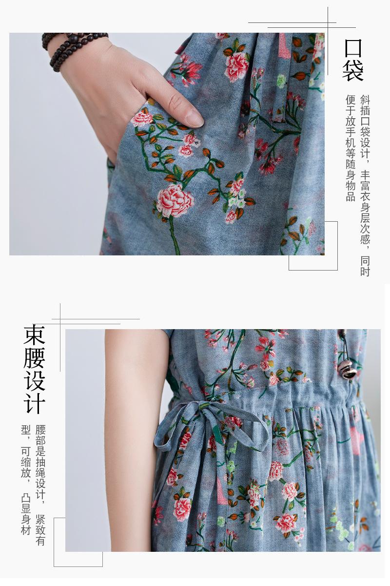 Vestido Floral Artístico Retro de Algodón y Lino para Mujer 2024 Verano Nuevo Vestido Largo Holgado con Cintura Ceñida y Bajo Amplio