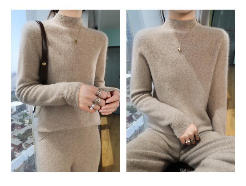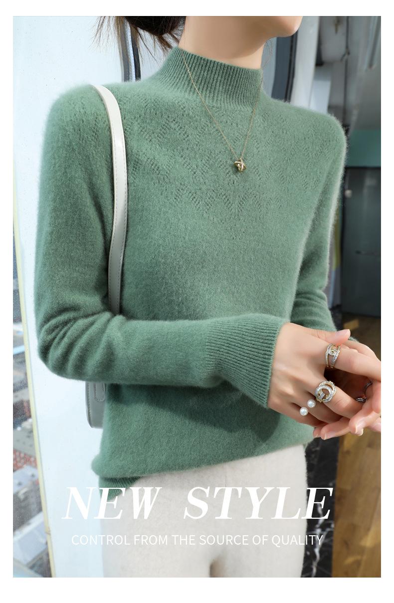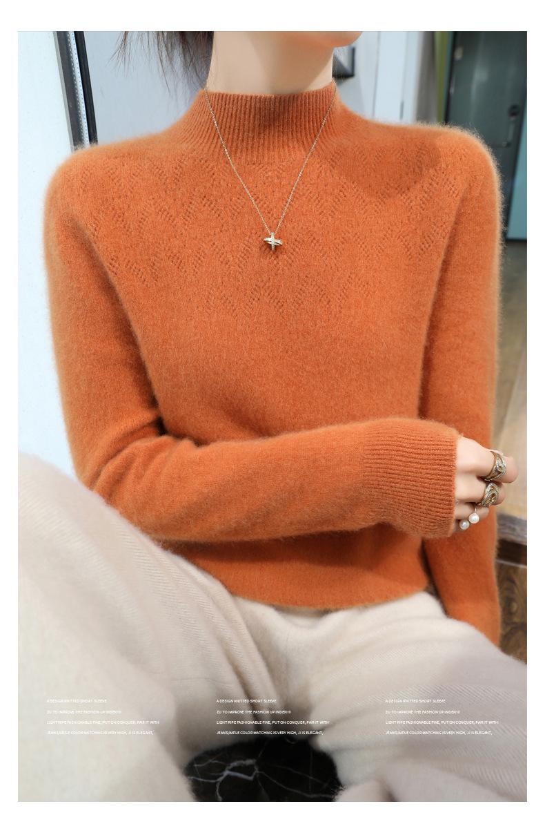 Suéter de punto adelgazante de manga larga con cuello medio alto y ropa de primera línea sin costuras para mujer, otoño e invierno, nuevo