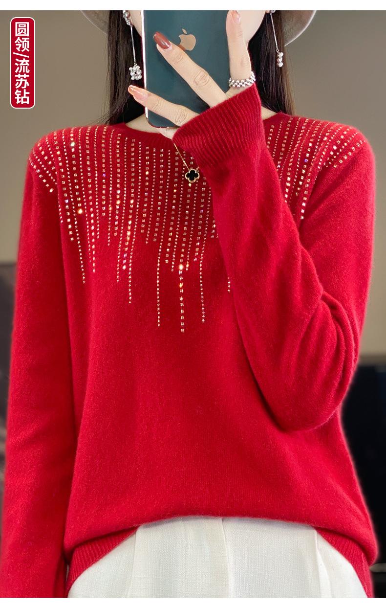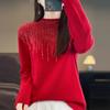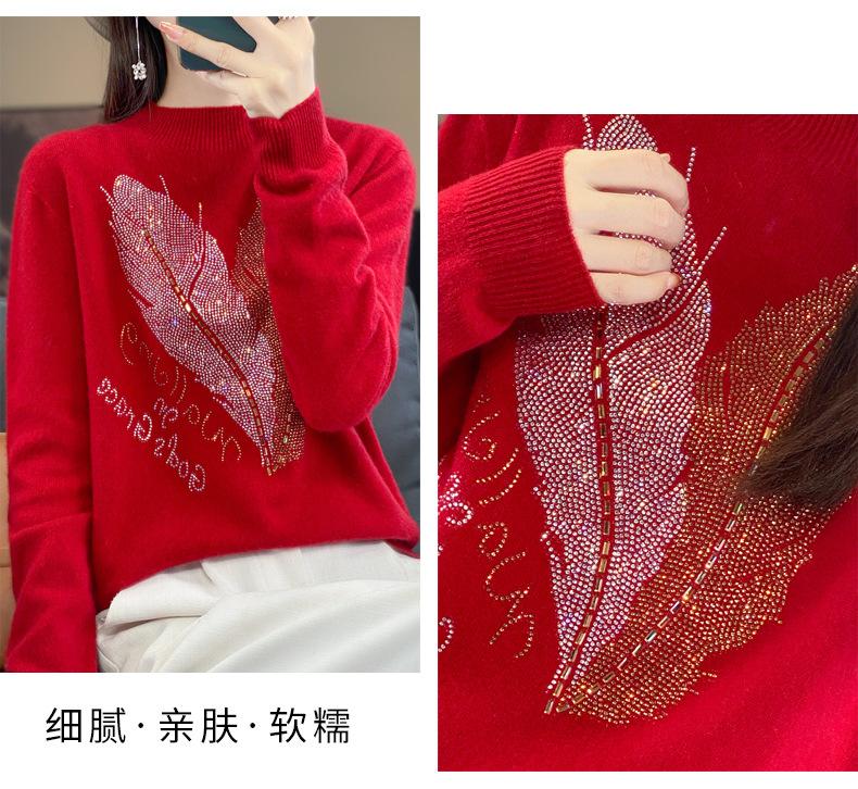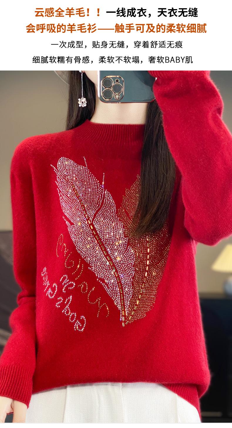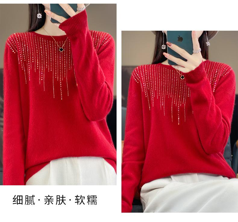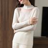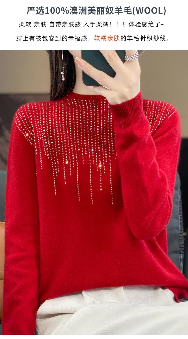 Ropa Premade de Una Línea Cuello Redondo Medio Alto Rhinting Lana Pura Mujer Otoño e Invierno Nueva Moda Camiseta Base Tejida Suéter de Manga Larga