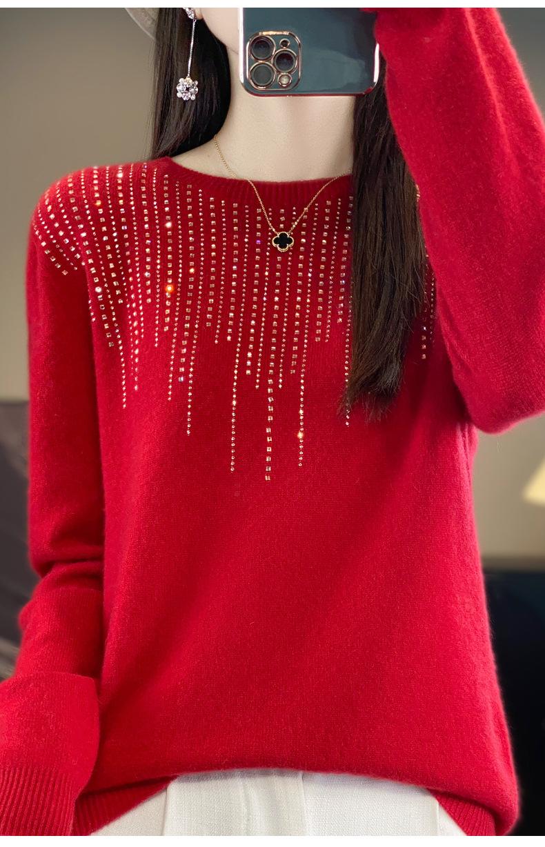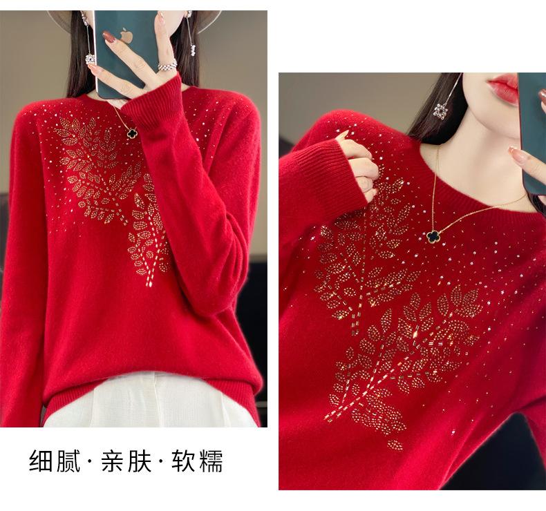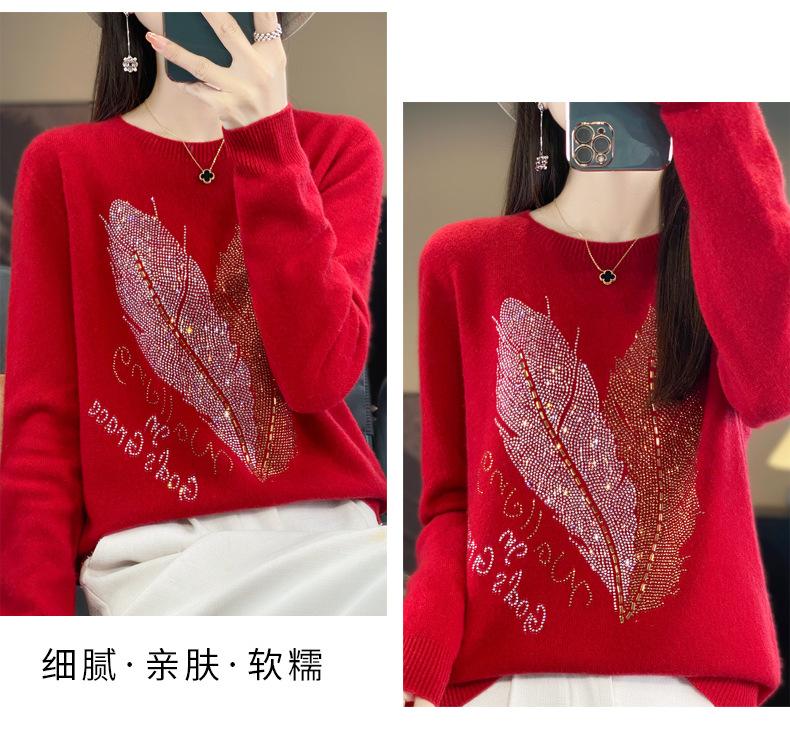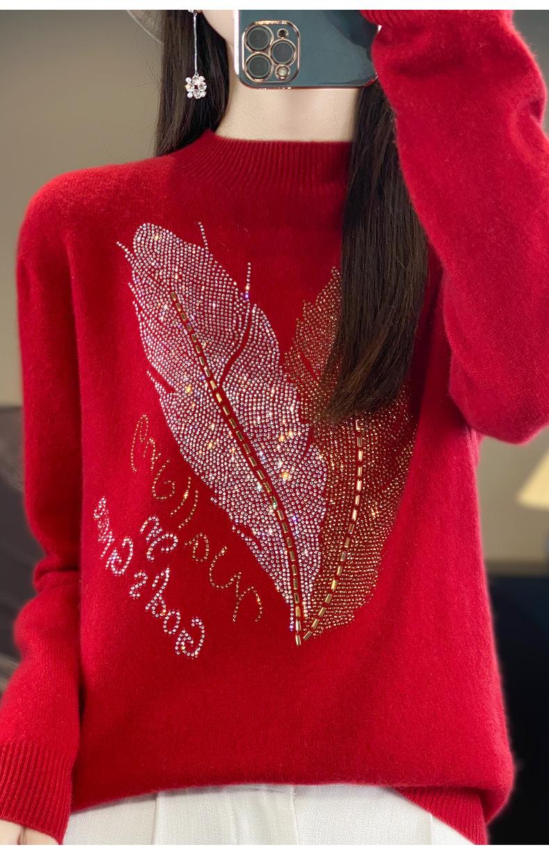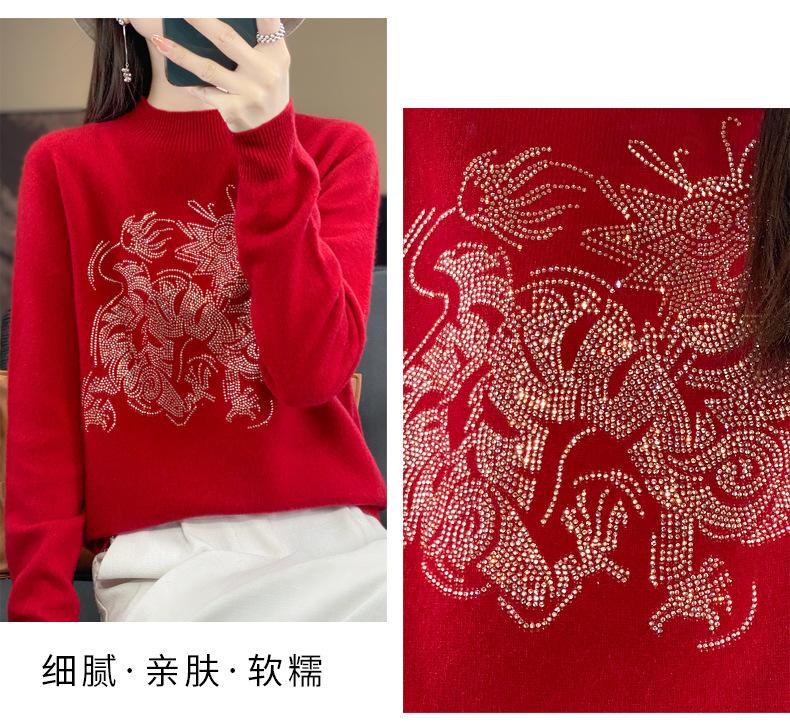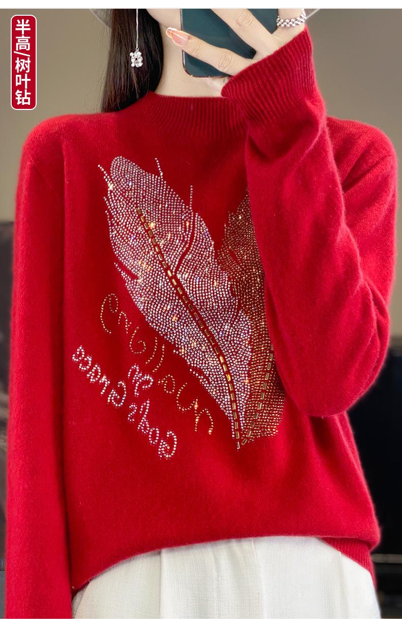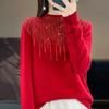 Ropa Premade de Una Línea Cuello Redondo Medio Alto Rhinting Lana Pura Mujer Otoño e Invierno Nueva Moda Camiseta Base Tejida Suéter de Manga Larga