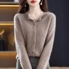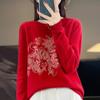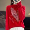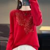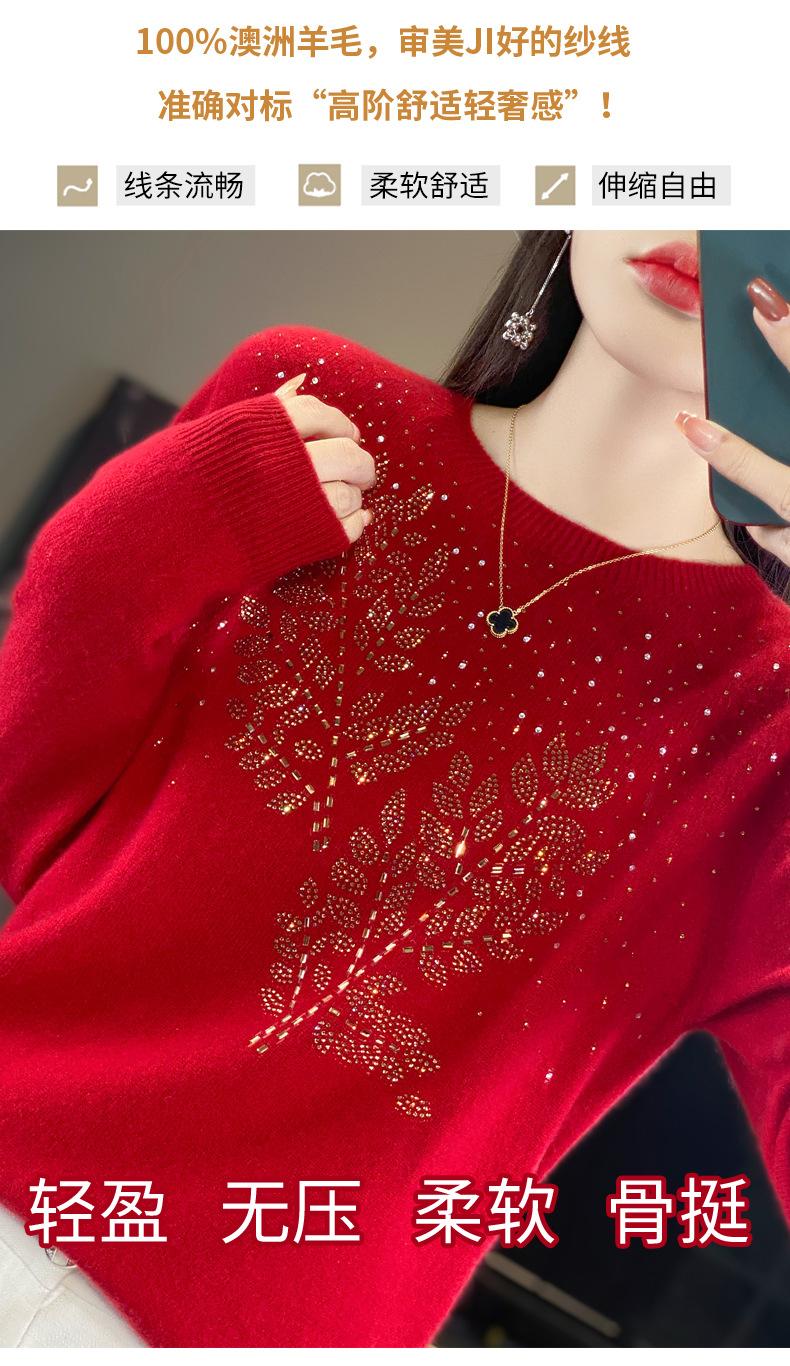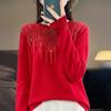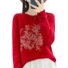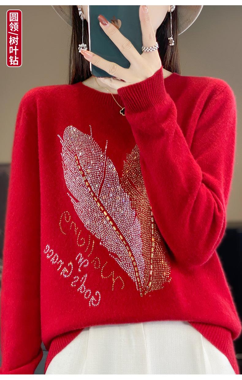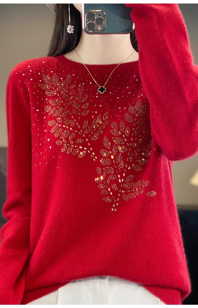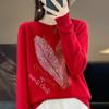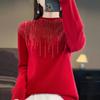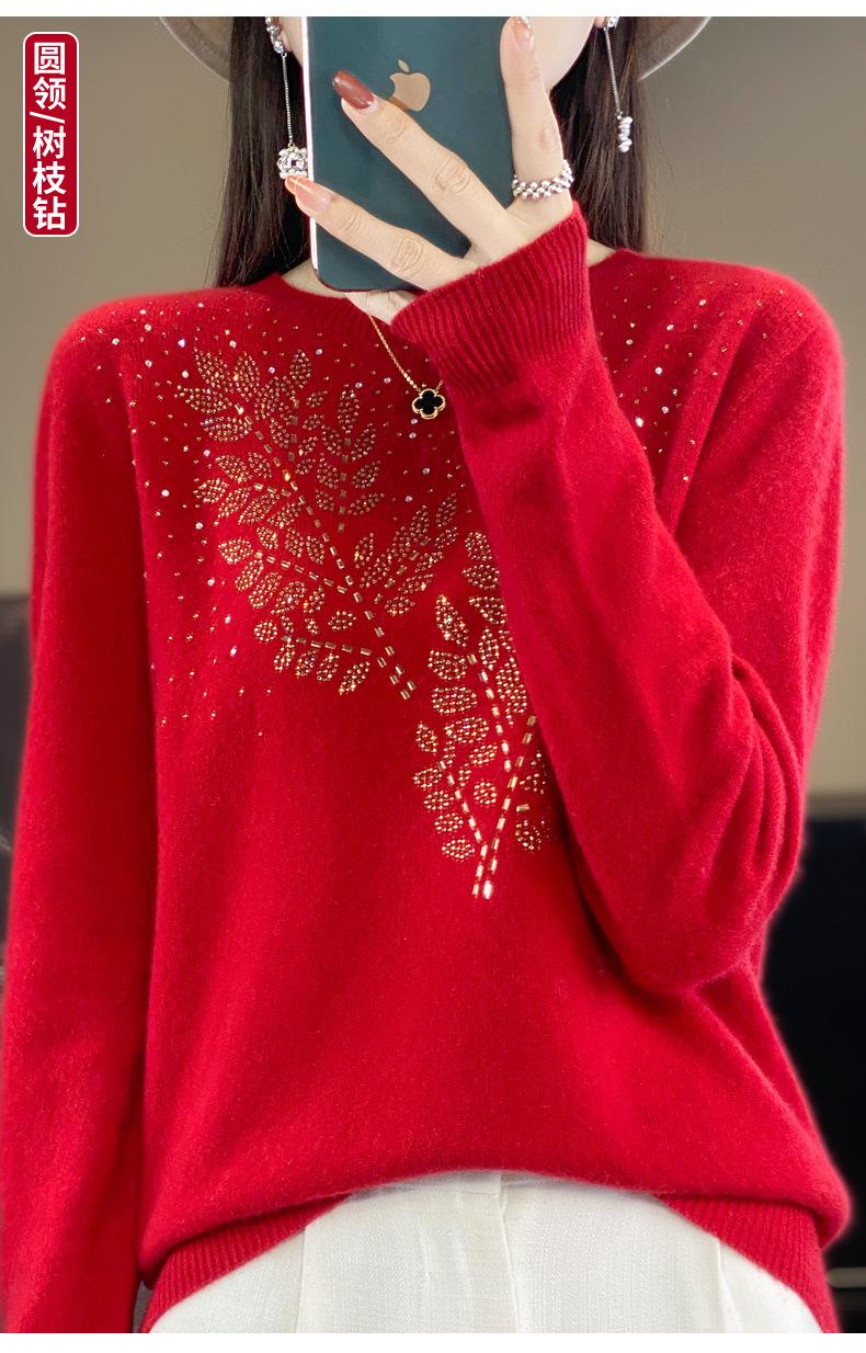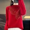 Ropa Premade de Una Línea Cuello Redondo Medio Alto Rhinting Lana Pura Mujer Otoño e Invierno Nueva Moda Camiseta Base Tejida Suéter de Manga Larga