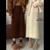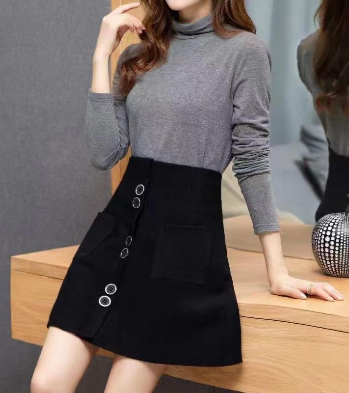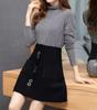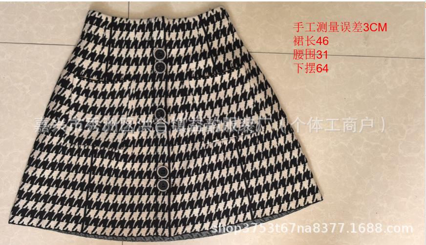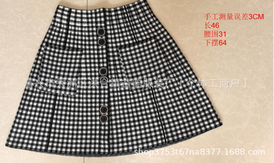 Falda Corta de Punto Nueva de Otoño e Invierno a Cuadros Corte A para Mujer Cintura Alta Adelgazante Engrosada Combinable Bolsillo Botón Lana