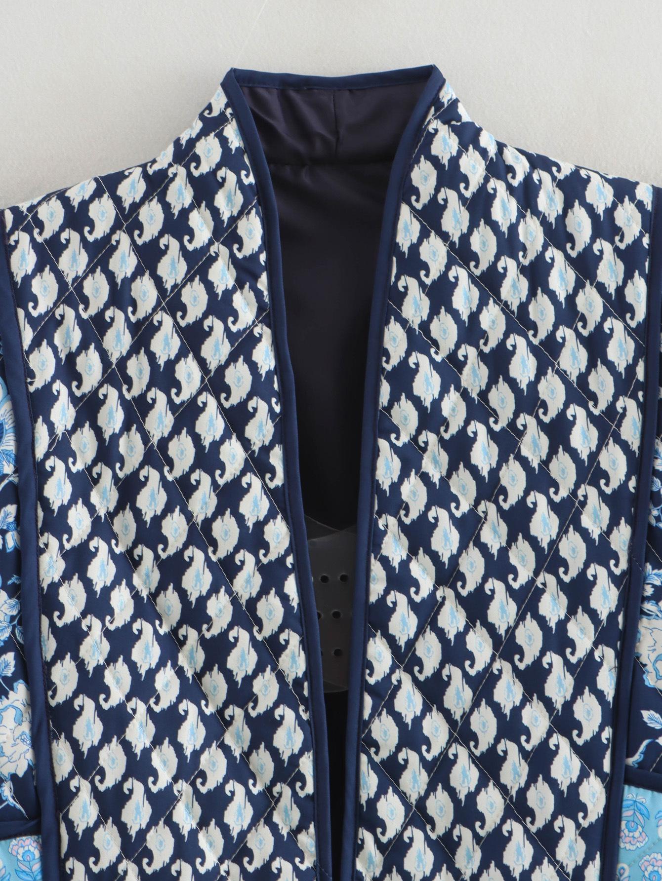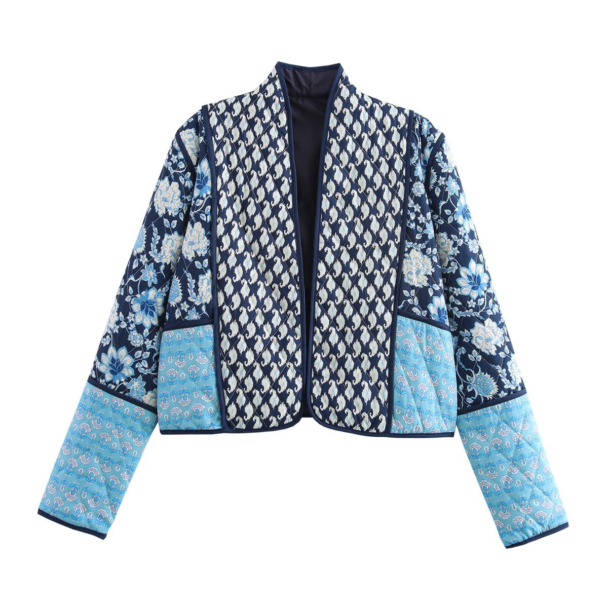 2024 Otoño e Invierno Nuevo Europeo y Americano Transfronterizo Moda Urbana para Mujer Chaqueta de Algodón Estampada con Parches W089 9090