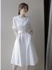 2024 Nuevo Estilo de Verano Dulce Francés Cintura Delgada Primer Amor Blanco Camisa Bosque Vestido Elegante Hada