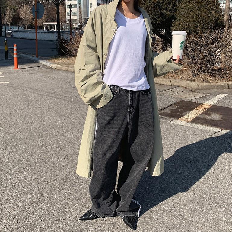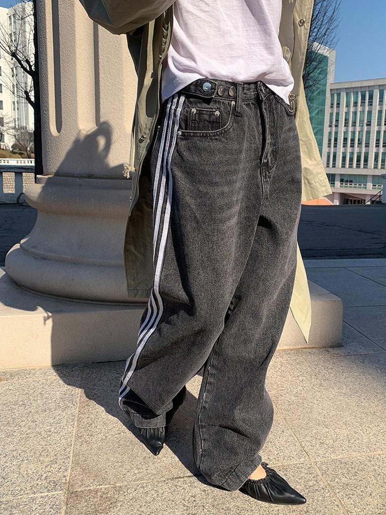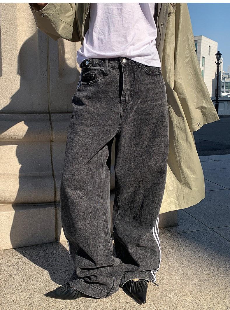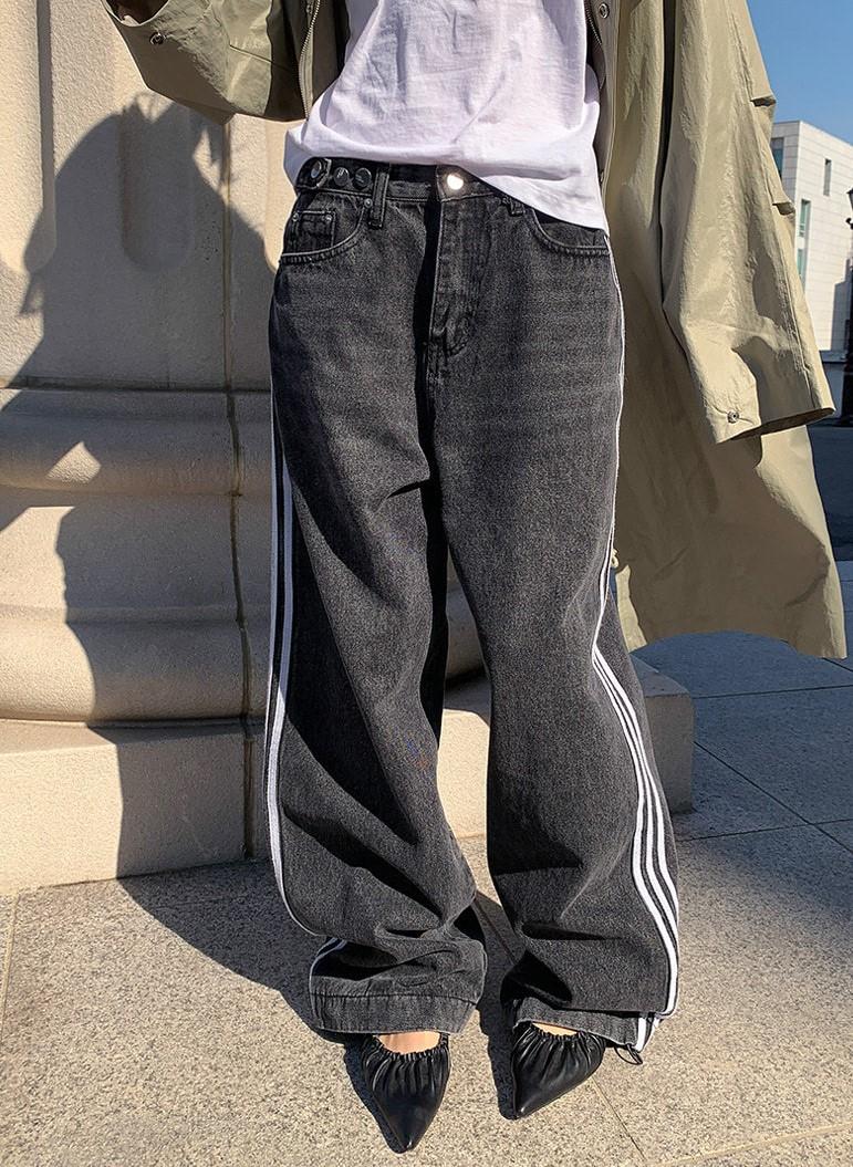 Vaqueros holgados de cintura ajustable con diseño de tres rayas de alta calidad para mujer coreana Dongdaemun, otoño