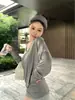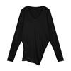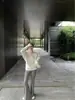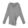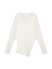 Camiseta holgada de manga larga con cuello en V en color blanco cremoso para mujer de principios de otoño de 2024, nueva camiseta informal de estilo coreano de longitud media, versátil, de color sólido.