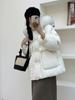 Chamarra corta suave de plumón Huhu para mujer 2025 Invierno Nueva Moda Dulce Cuello de piel de mapache Engrosada Cintura