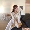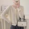 2025 Nuevo Otoño e Invierno Estilo Coreano Color Puro Cuello en V Encaje Tejido de Punto para Mujer Diseño Suelto y Delicado Tejido de Punto