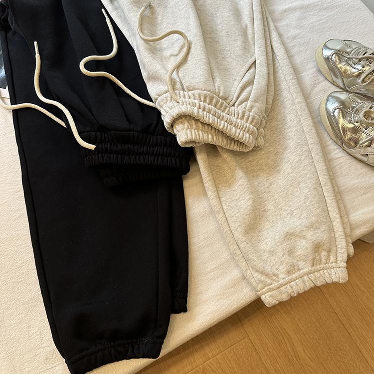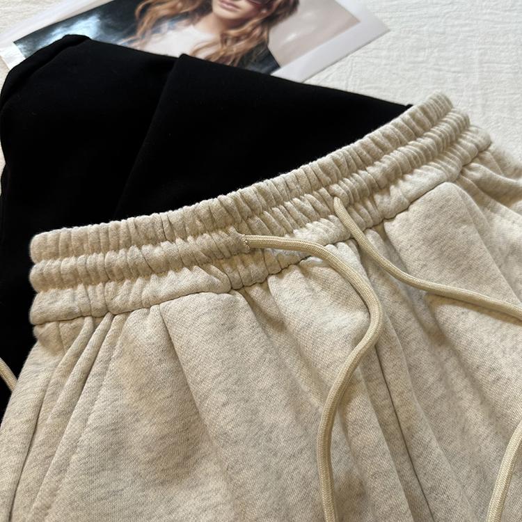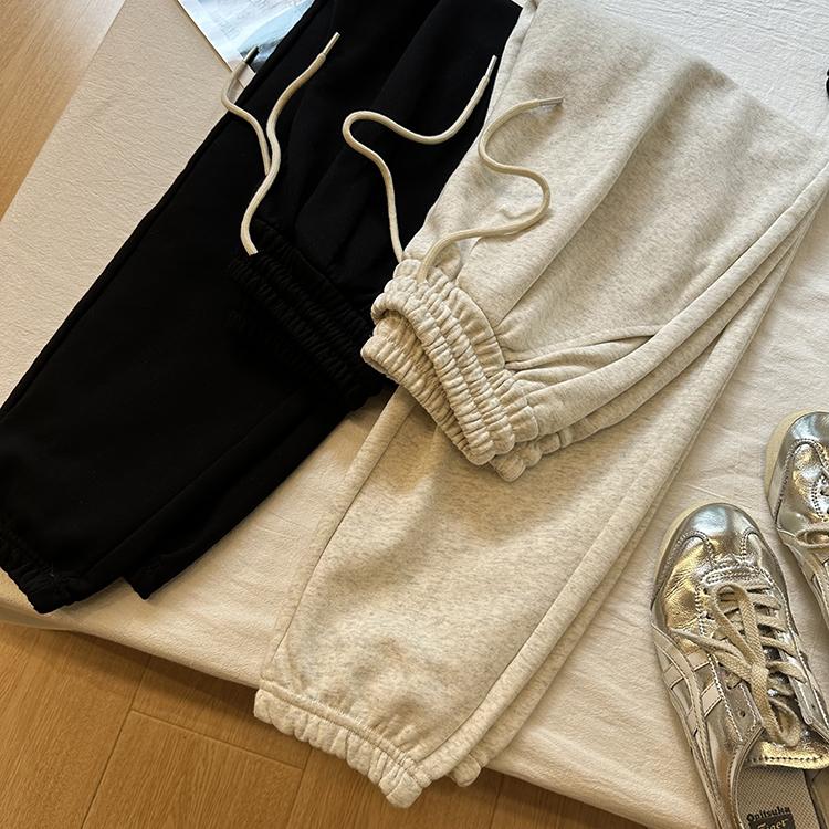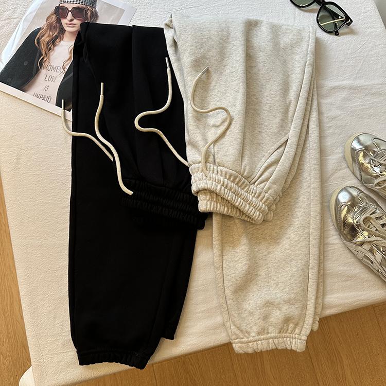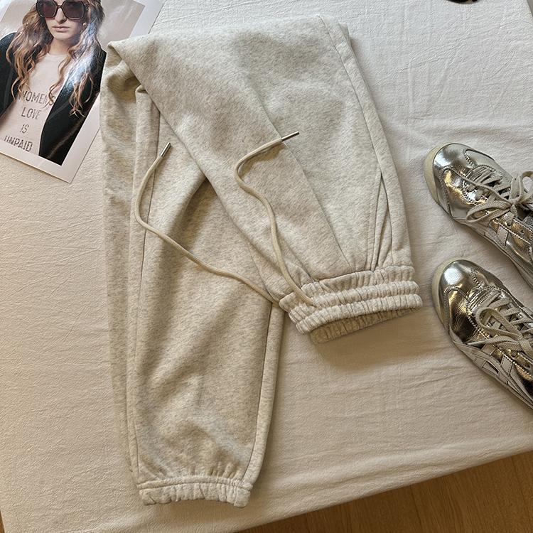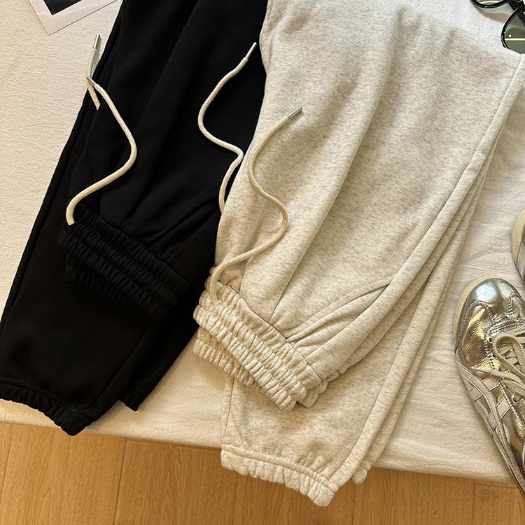 Pantalones deportivos de felpa de algodón de color sólido para mujer 2024 otoño nuevos elásticos de cintura alta pantalones casuales de punta combinables pantalones ajustados