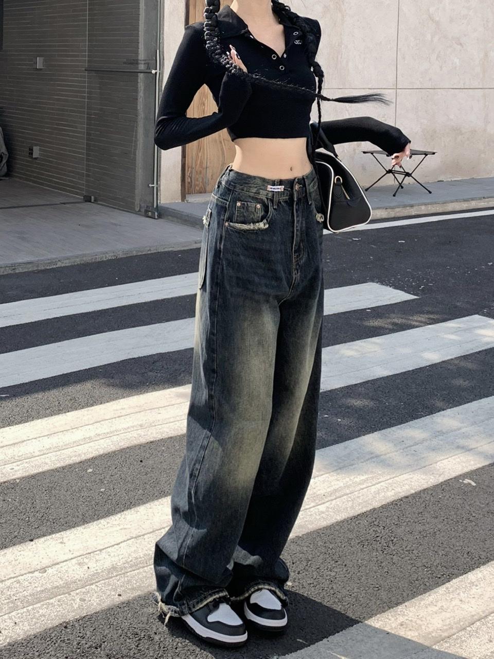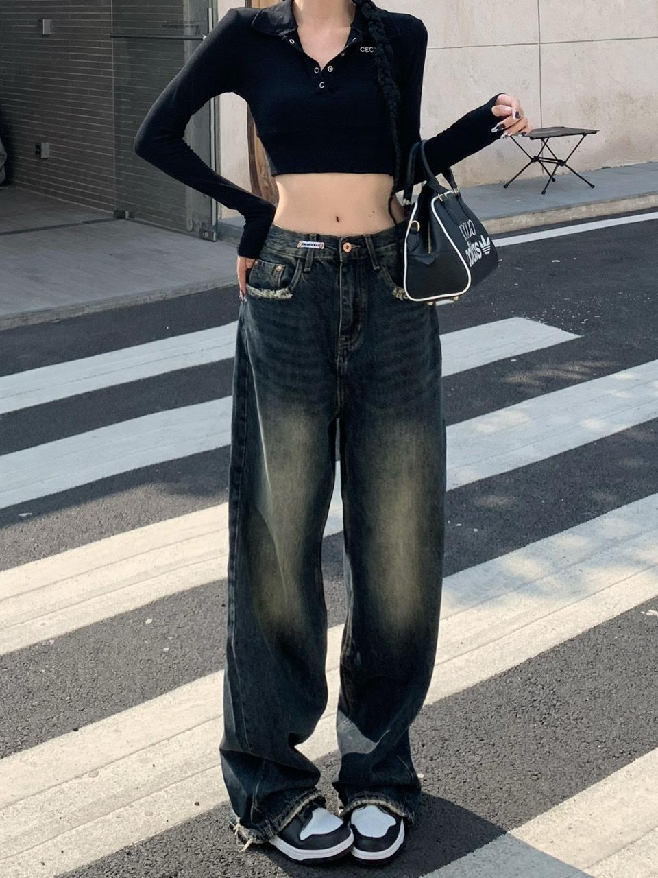 Pantalones largos rectos de corte slim para mujer de talla grande, para chica gordita, talle alto, cuerpo en forma de pera, holgados de pierna ancha