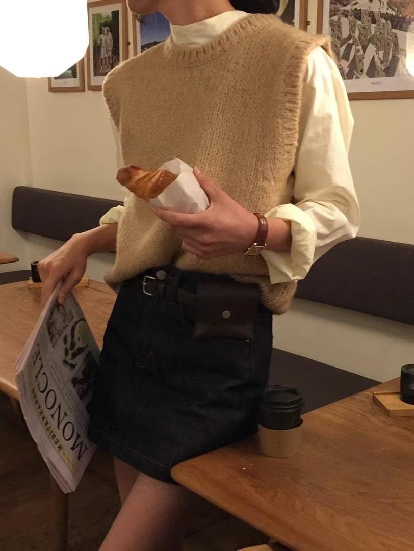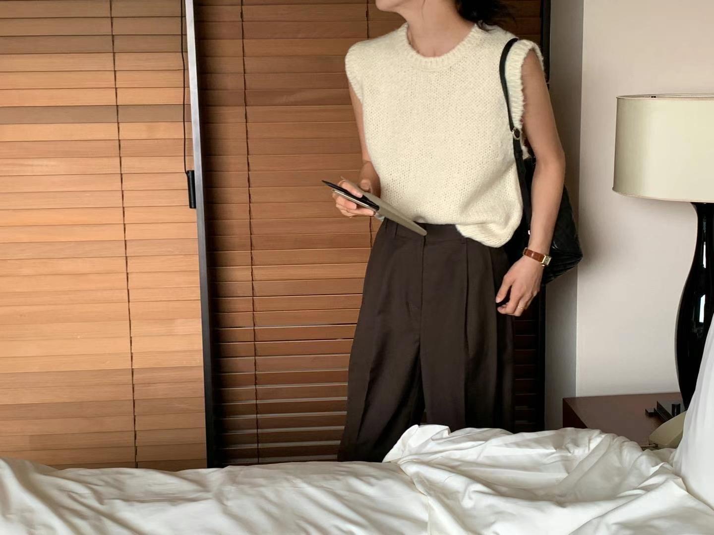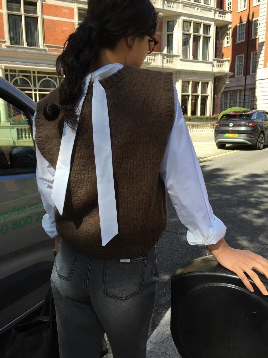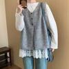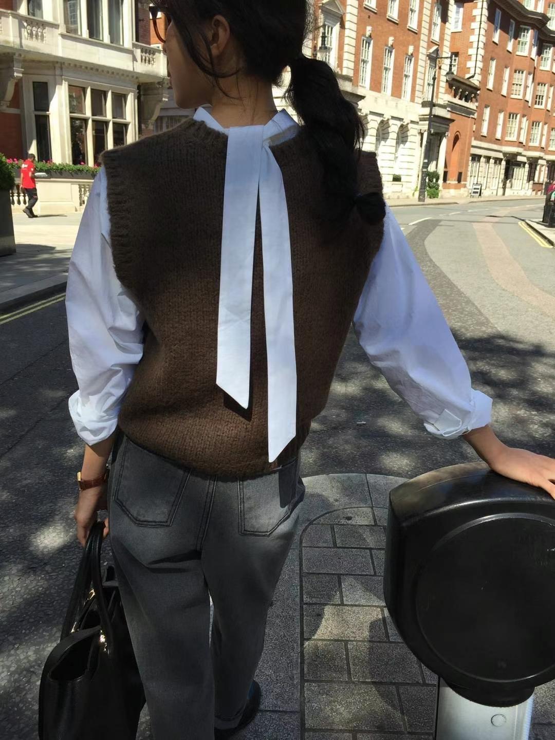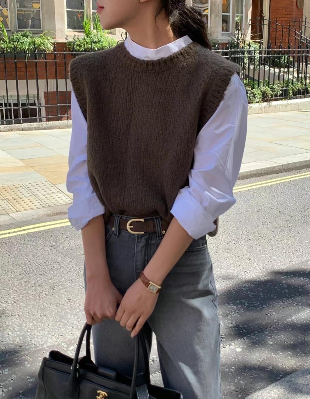 Ahora H Chaleco de Punto de Cuello Redondo de Color Puro Ropa de Trabajo en Capas Estilo Coreano Primavera 2025 para Mujer Top Overta*E