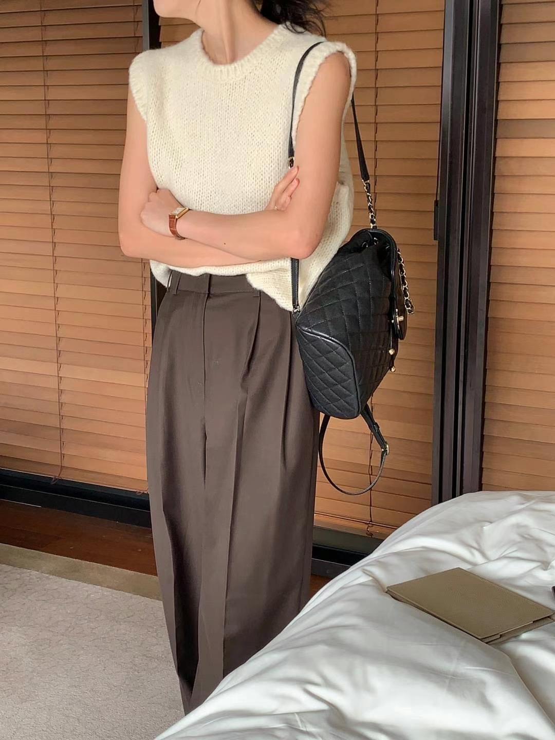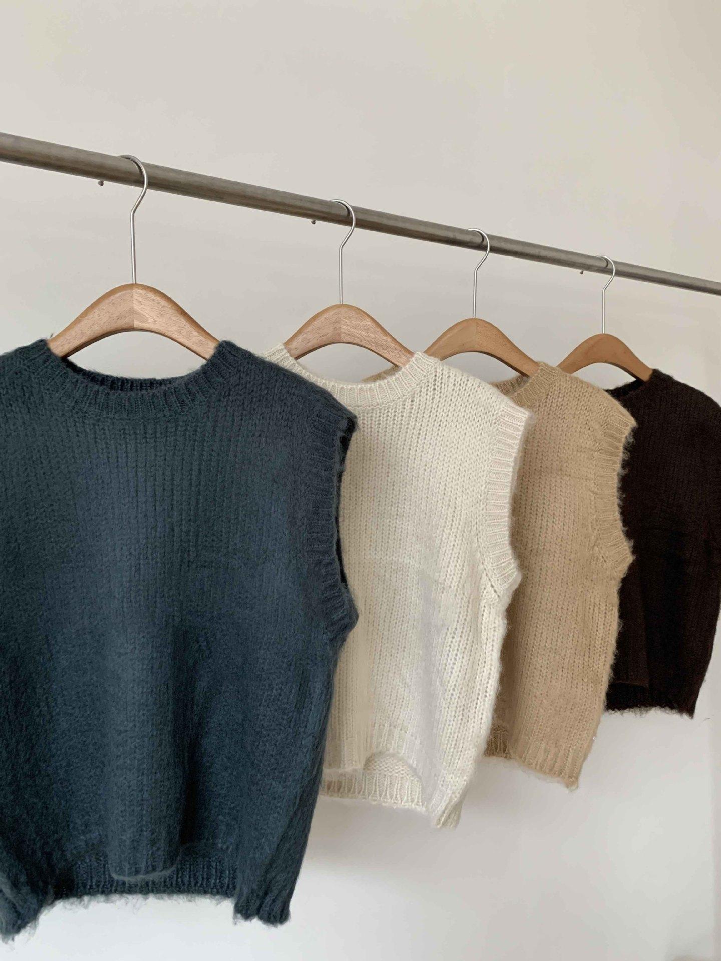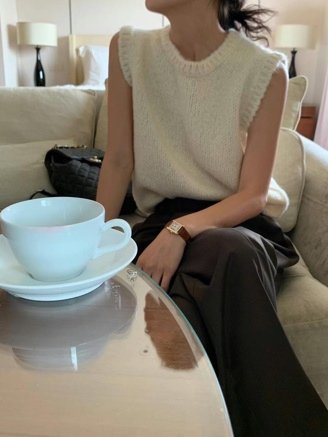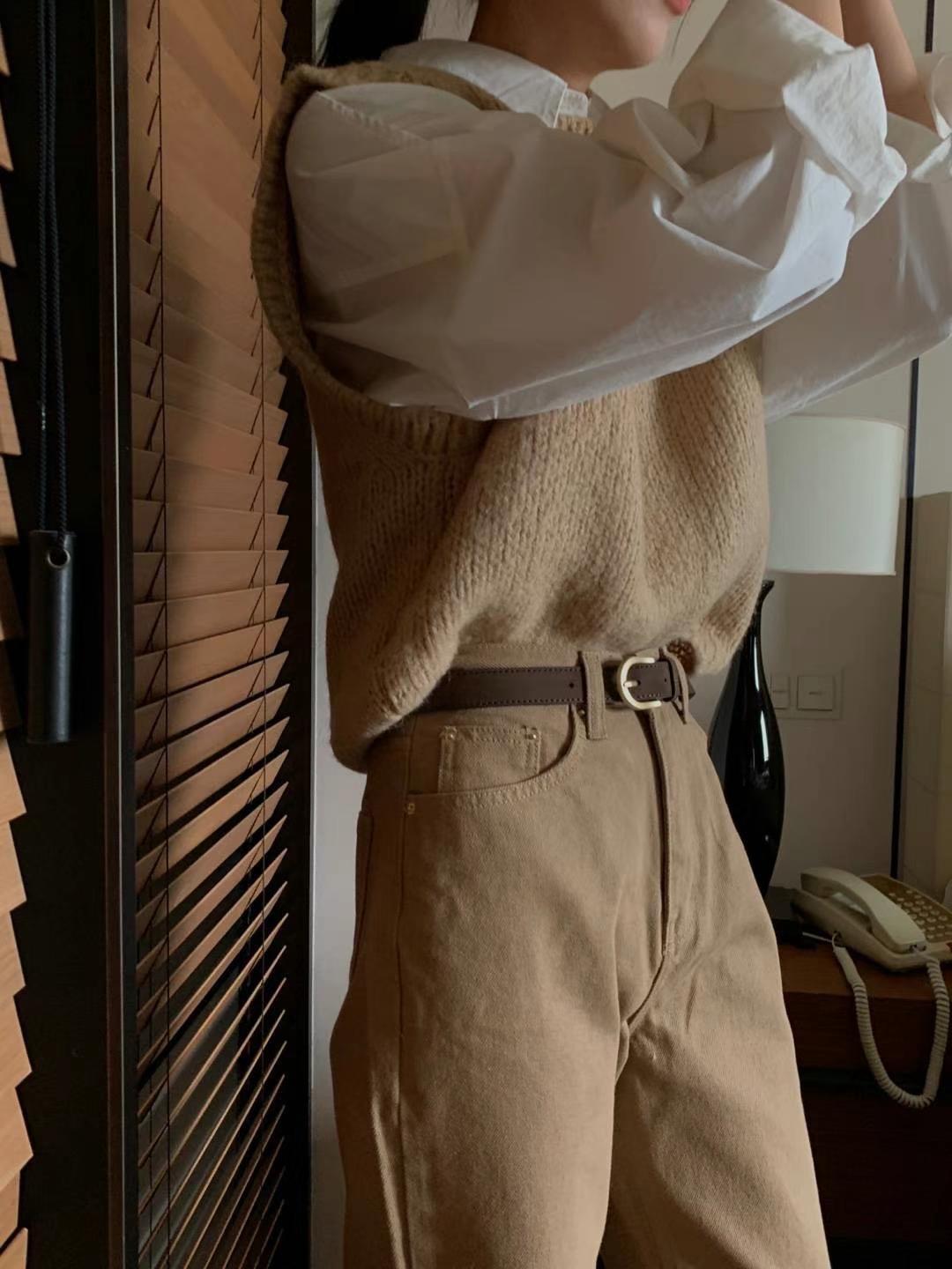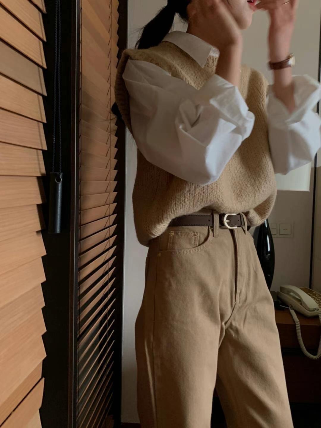 Ahora H Chaleco de Punto de Cuello Redondo de Color Puro Ropa de Trabajo en Capas Estilo Coreano Primavera 2025 para Mujer Top Overta*E