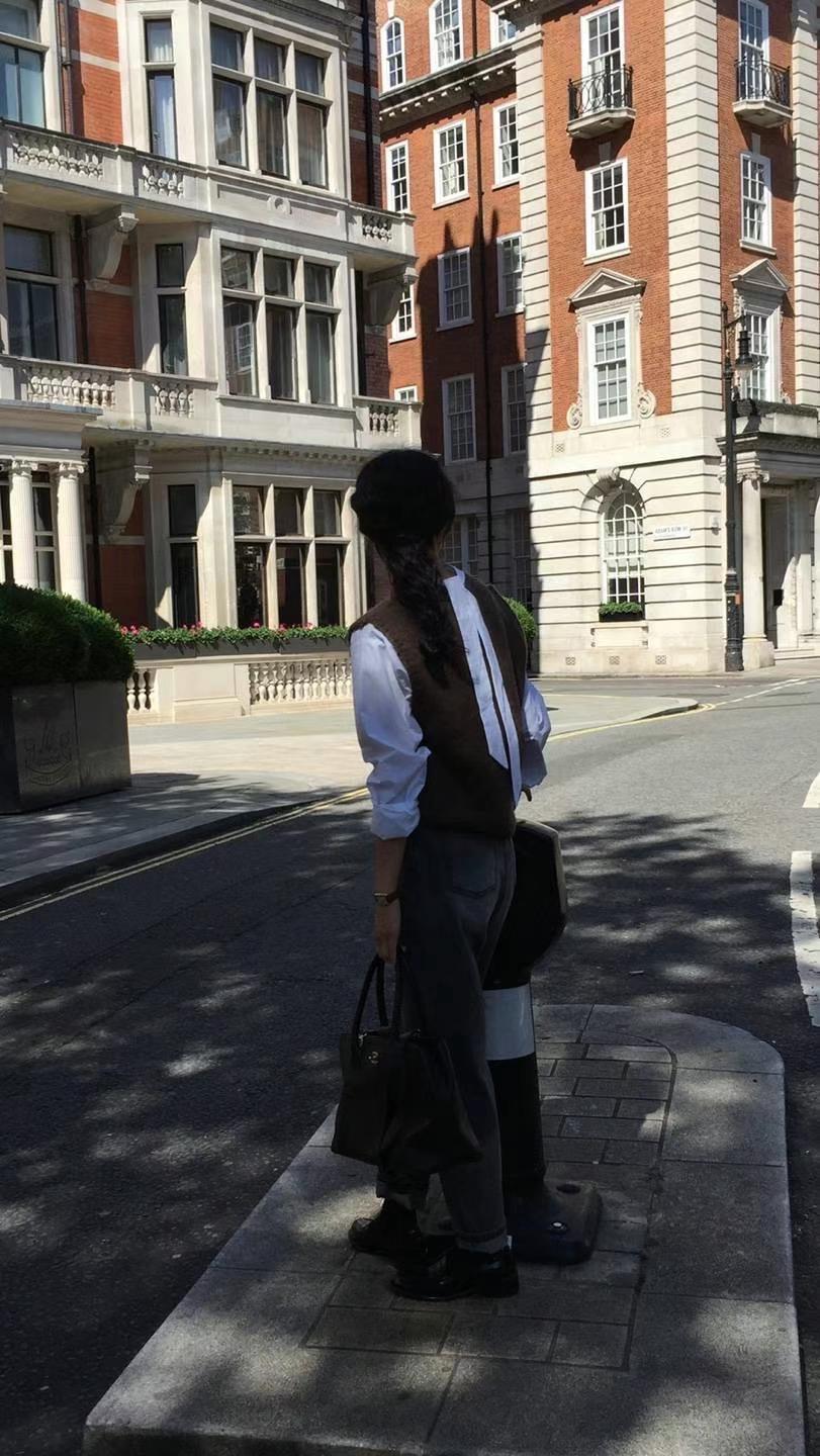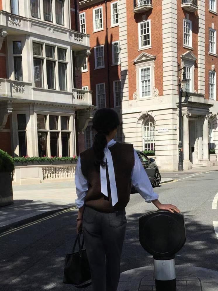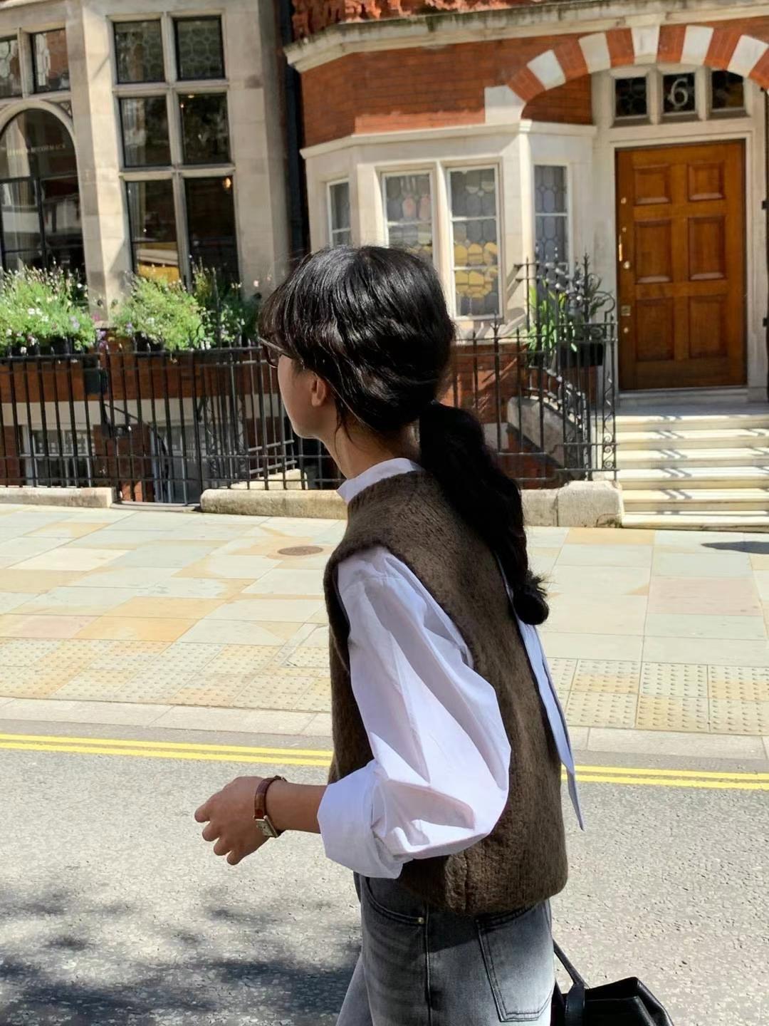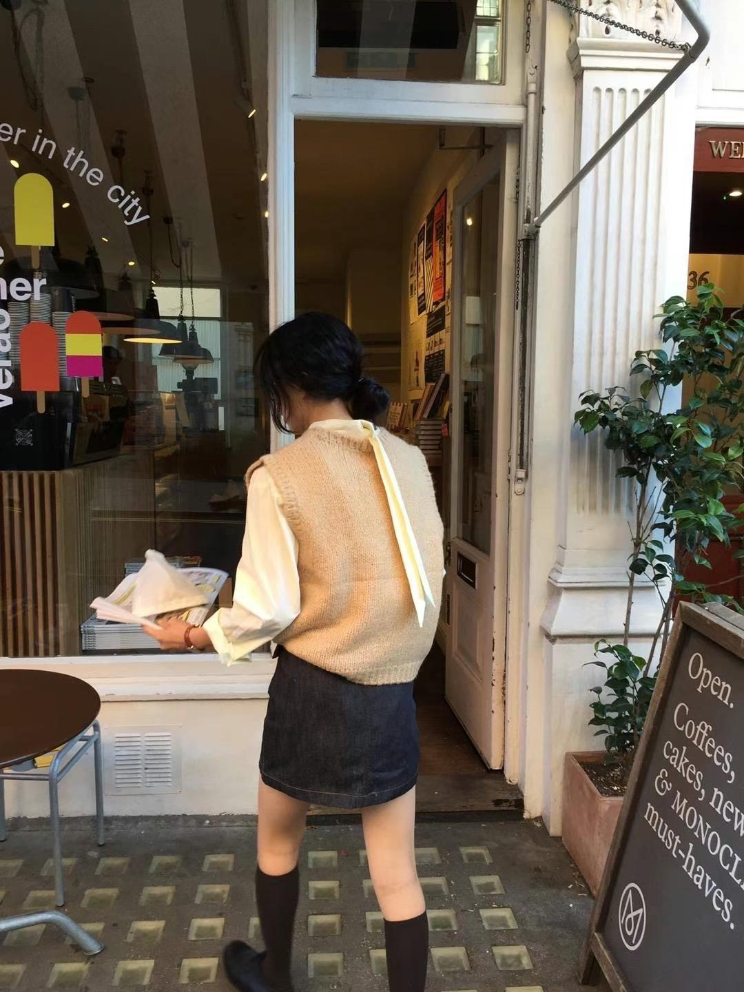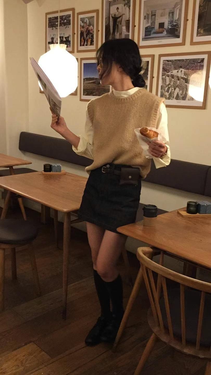 Ahora H Chaleco de Punto de Cuello Redondo de Color Puro Ropa de Trabajo en Capas Estilo Coreano Primavera 2025 para Mujer Top Overta*E