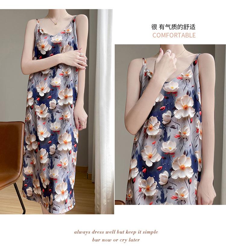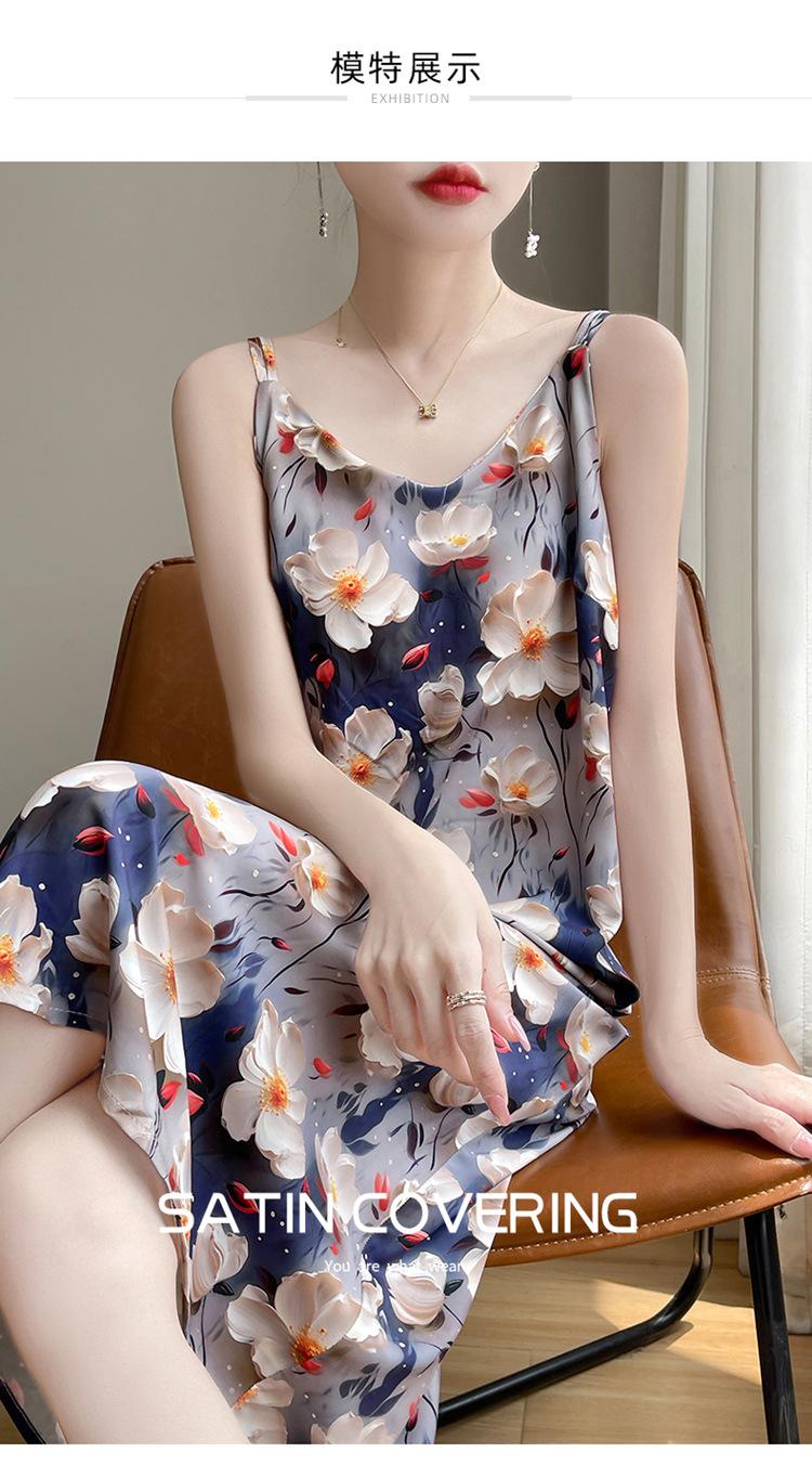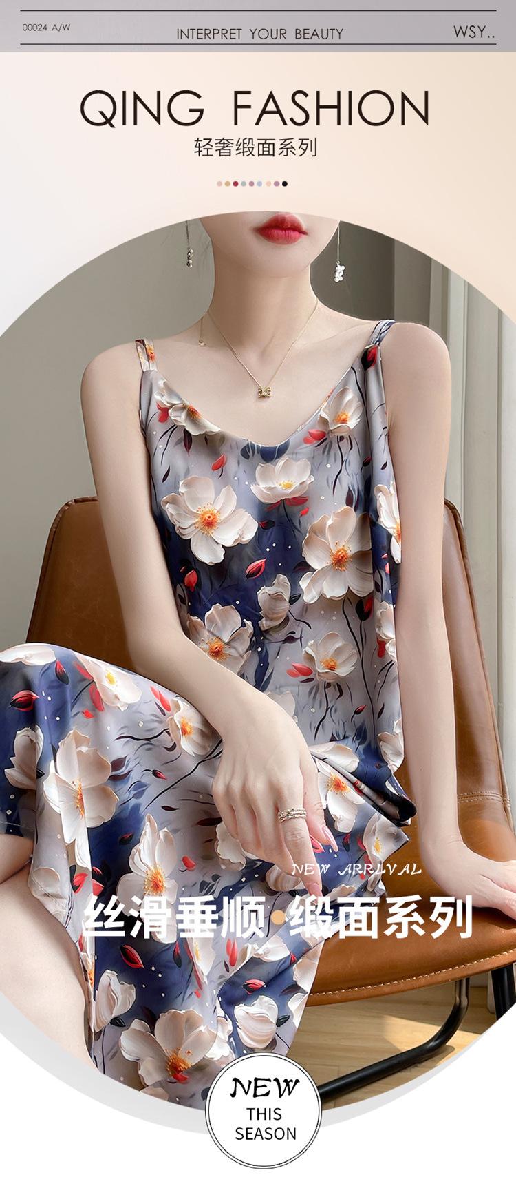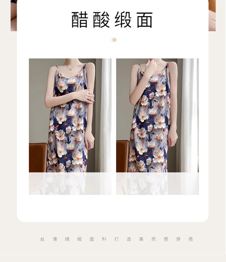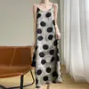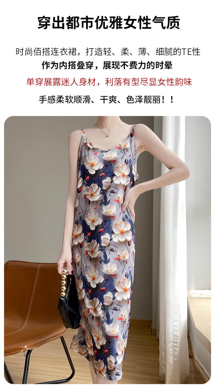 Vestido de tirantes de seda estilo francés para mujer 24 Verano Floral Cuello en V Vacaciones en la playa Línea A Midi Ácido Acético