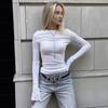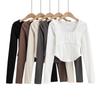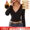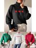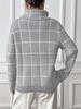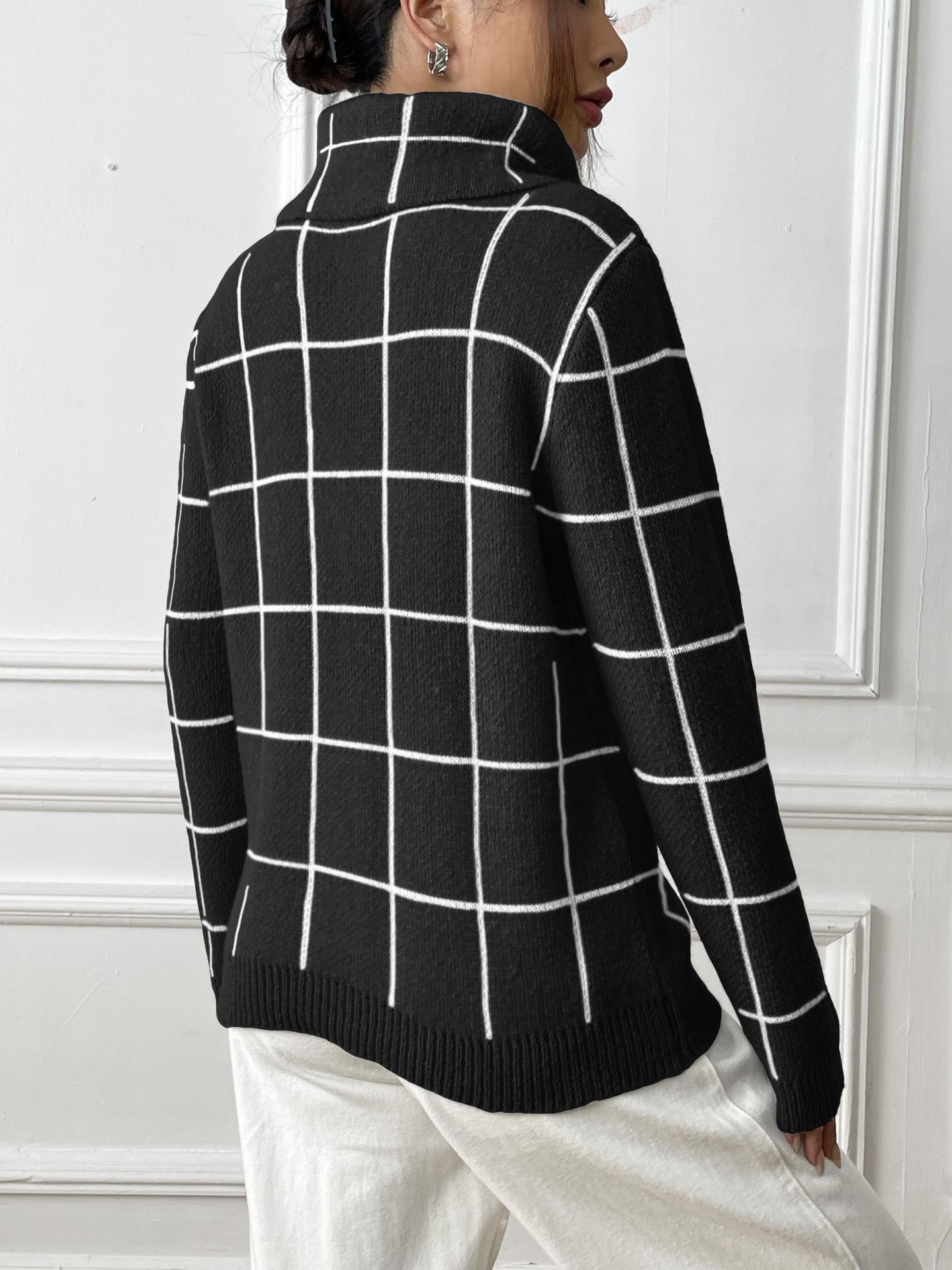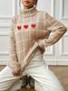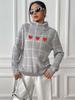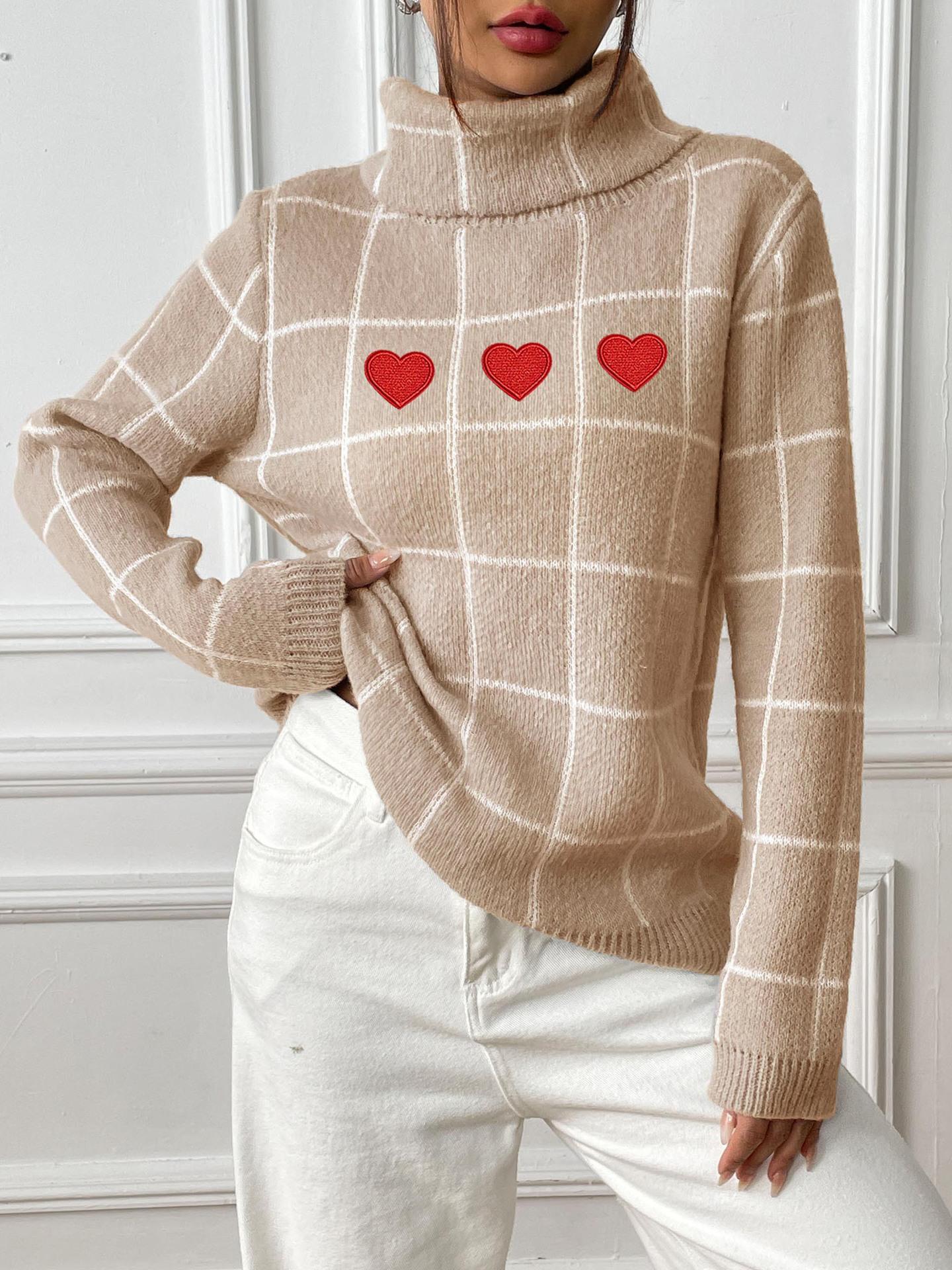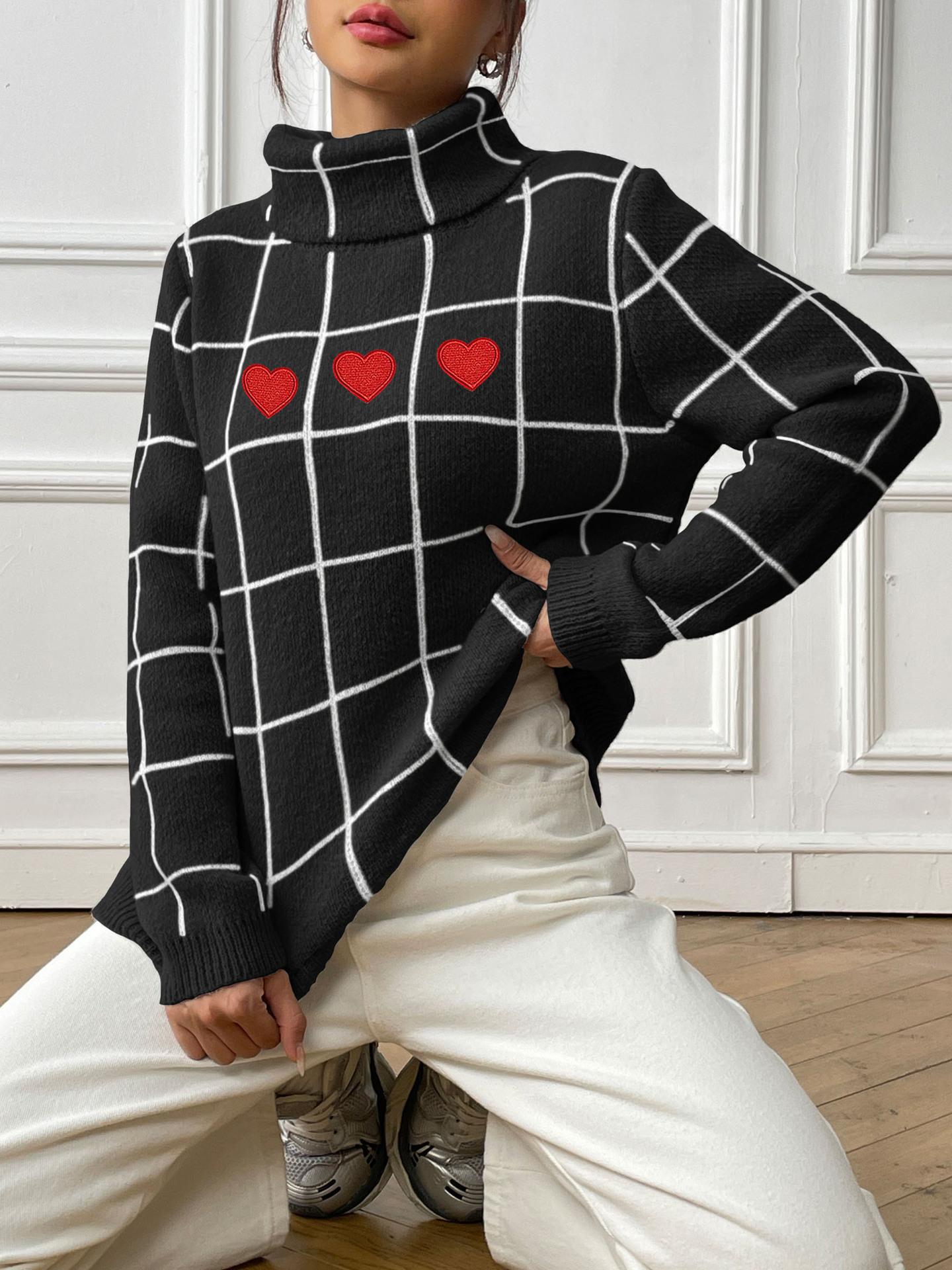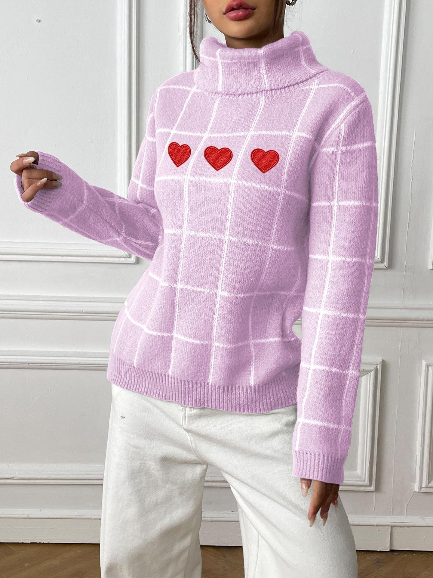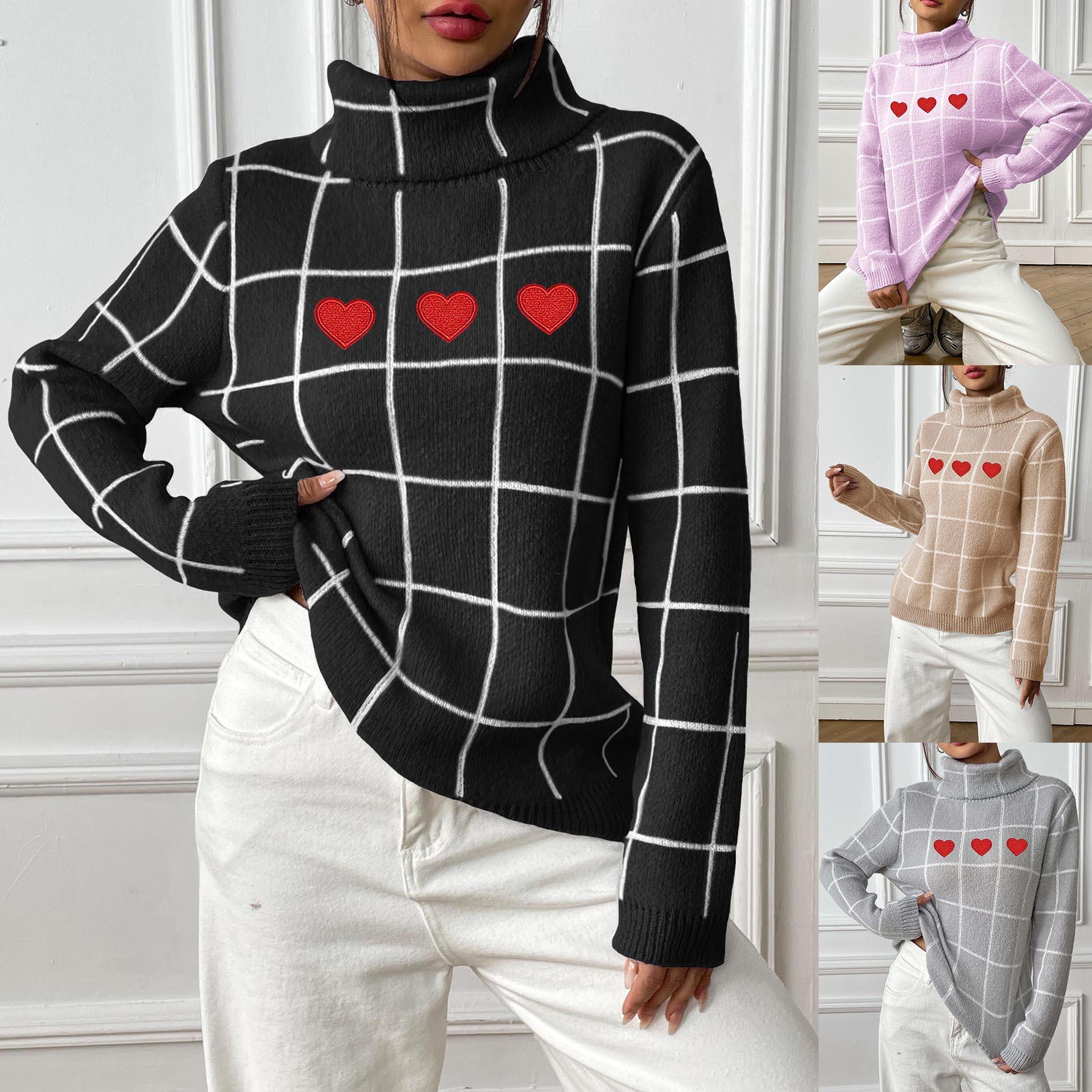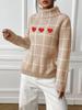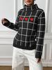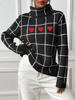 Suéter de cuello alto con estampado de cuadros escoceses y pegatinas de amor para mujer, camisa básica tejida europea y americana con bordes cruzados para mujer