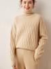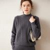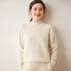 Suéter de cachemira de cuello alto medio para mujer, nuevo, de otoño e invierno, de moda, sencillo, suelto, grueso, de punto, con base de cachemira.