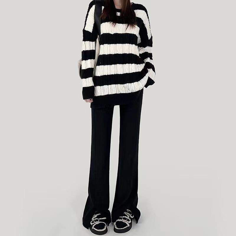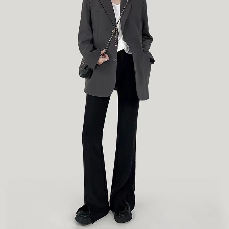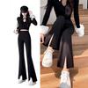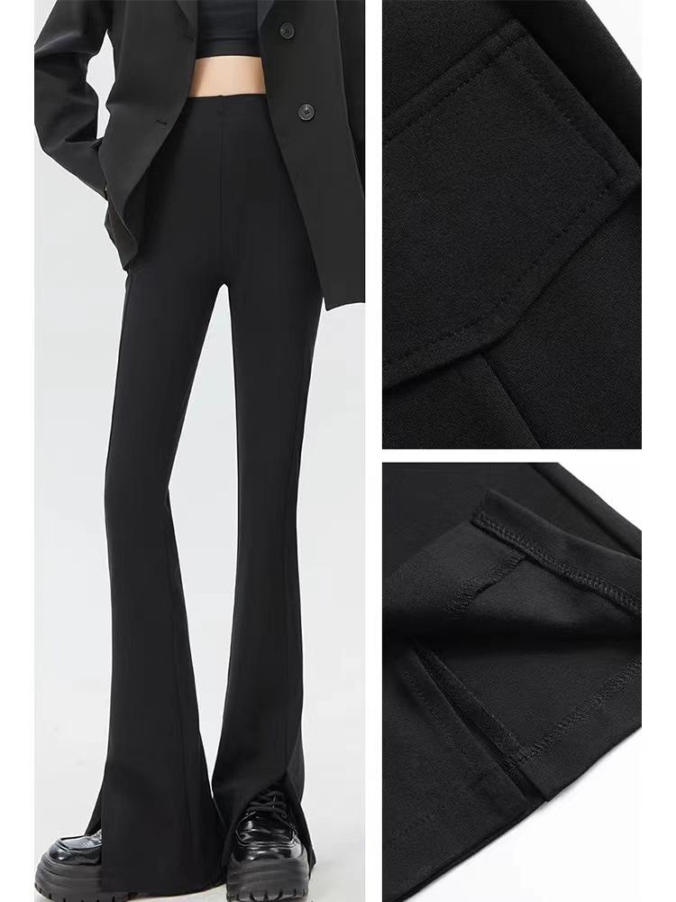 Pantalones acampanados para mujer primavera y otoño 2024 nuevos pantalones adelgazantes de cintura alta de alta gama con sensación de caída, traje negro con abertura, micropantalones de otoño