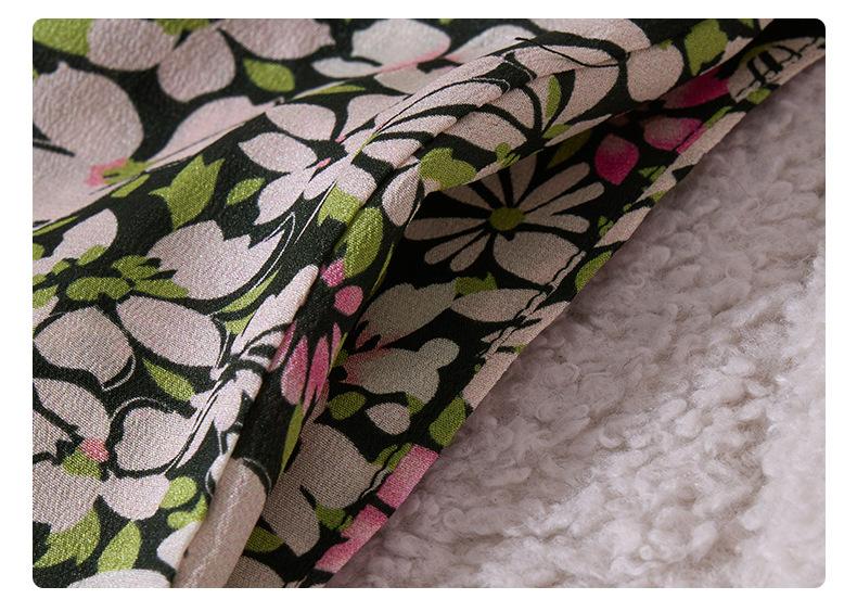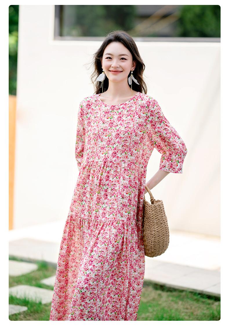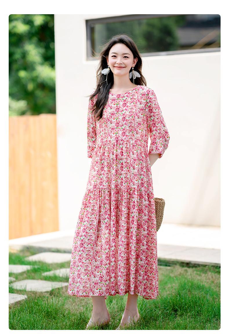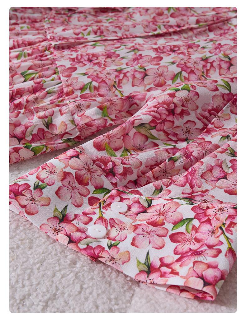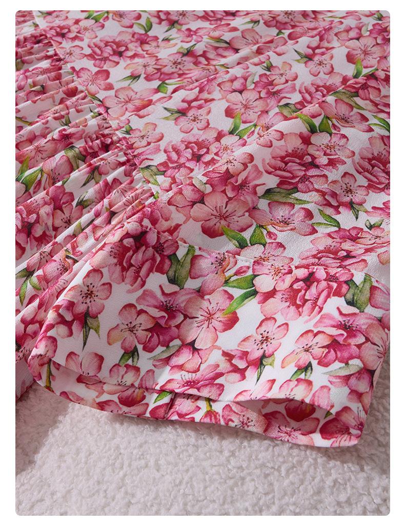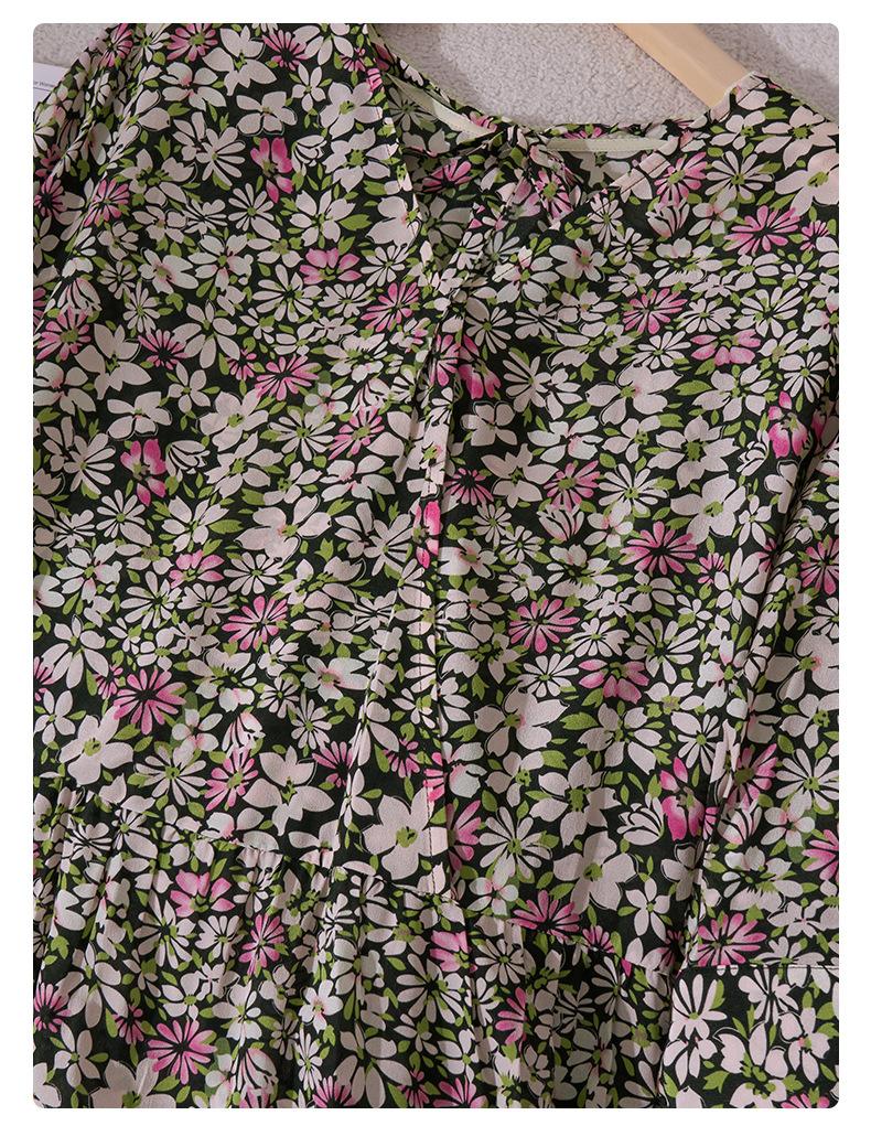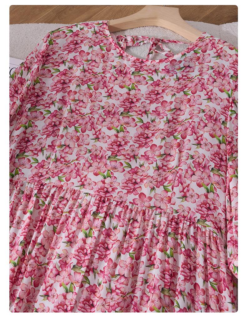 Rongtai Diseño Floral Espalda con Cordones Vestido de Seda de Morera de Seda de una Sola Capa para Mujer Falda Amplia Holgada Empalmada