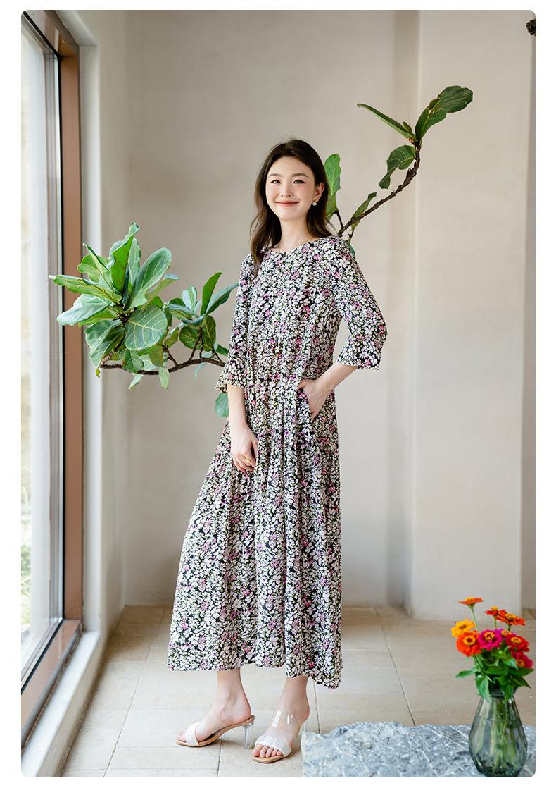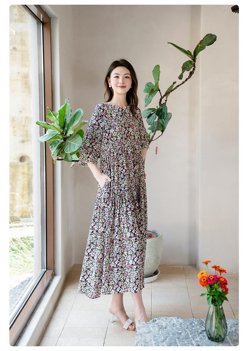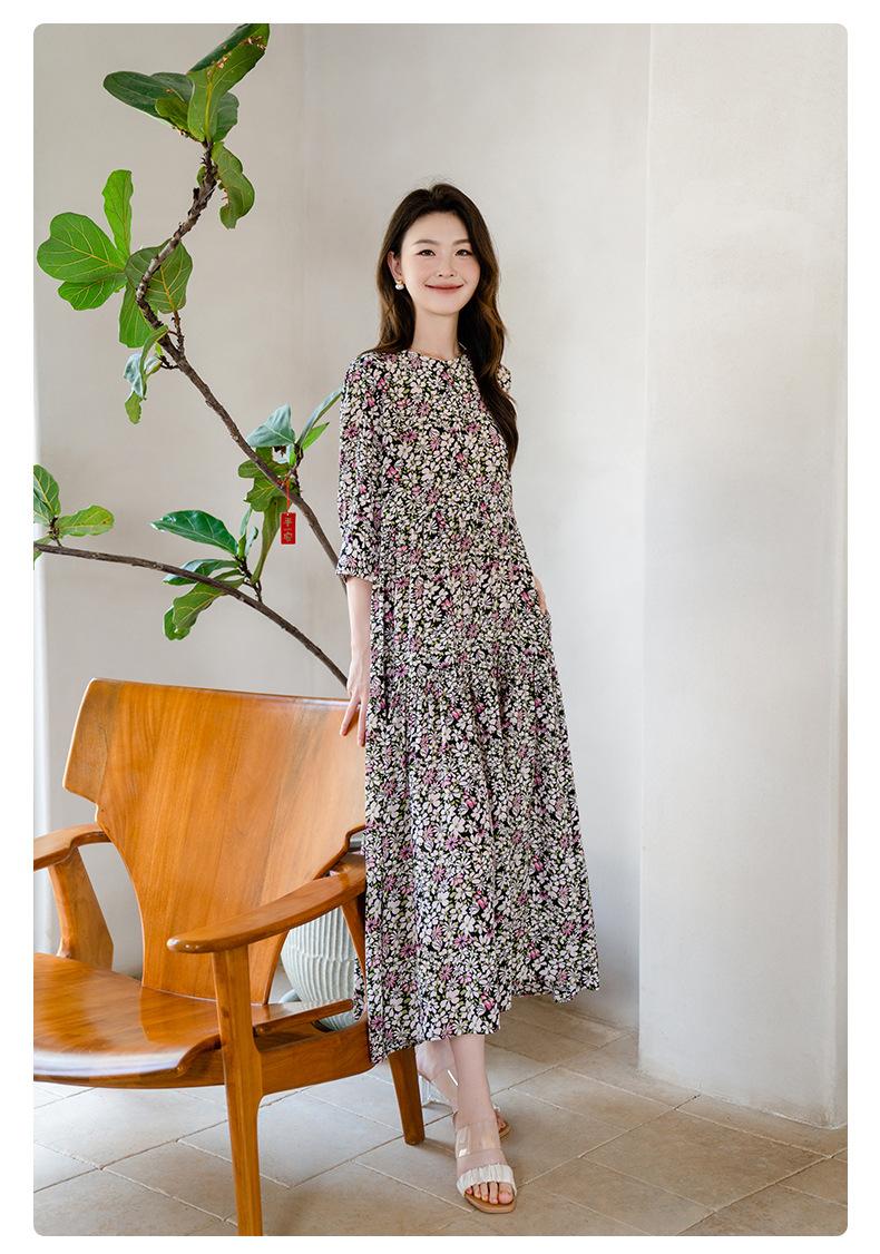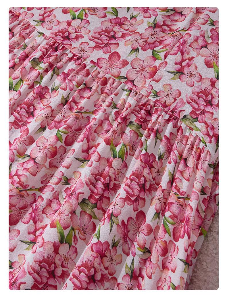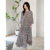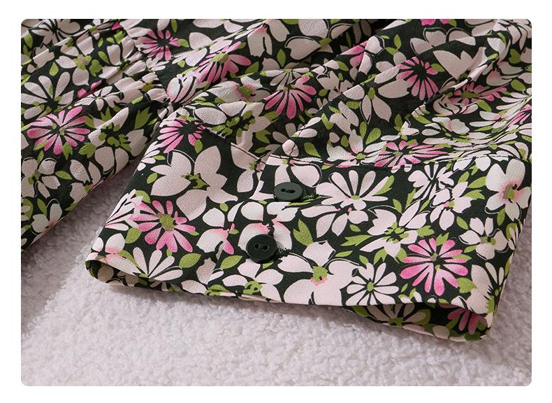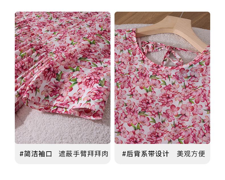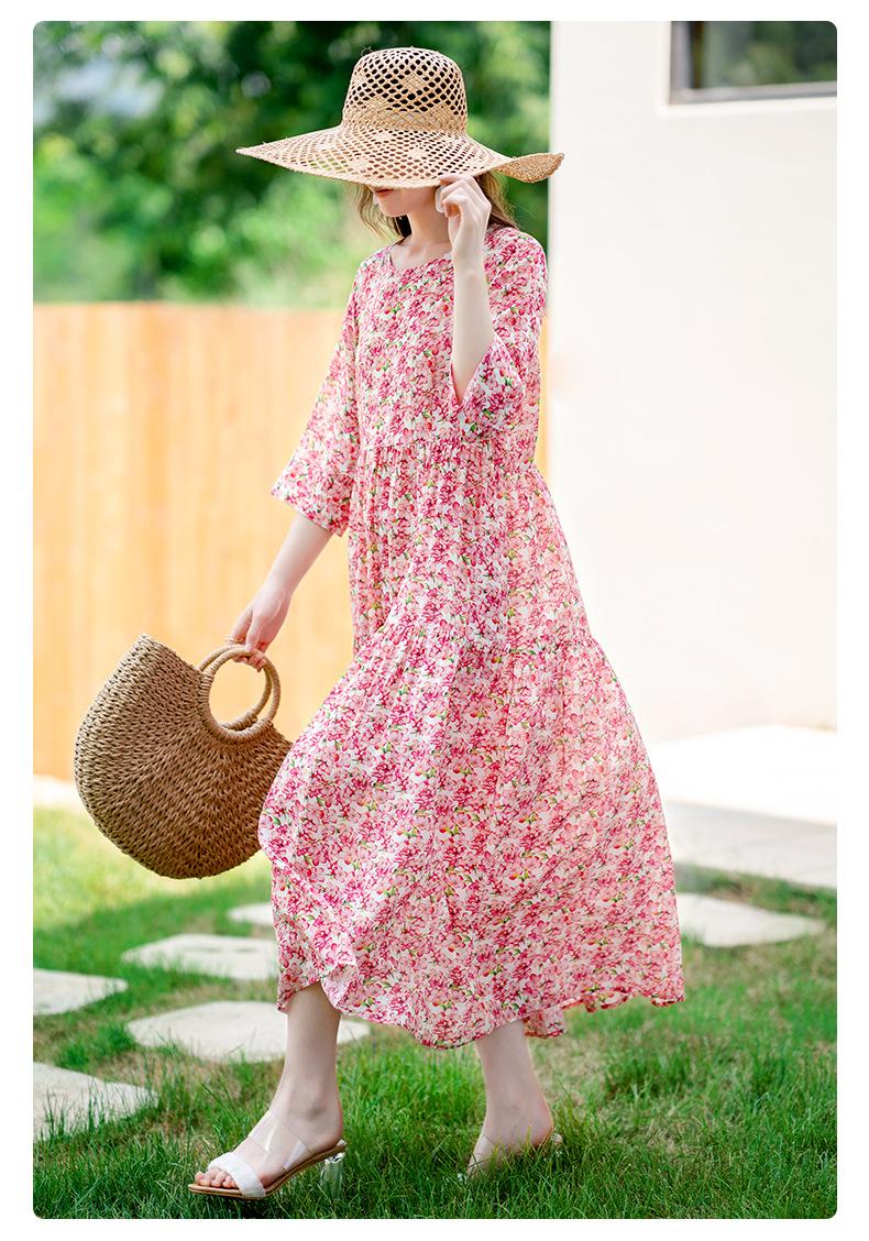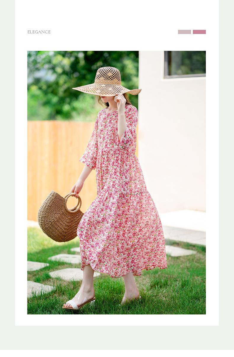 Rongtai Diseño Floral Espalda con Cordones Vestido de Seda de Morera de Seda de una Sola Capa para Mujer Falda Amplia Holgada Empalmada