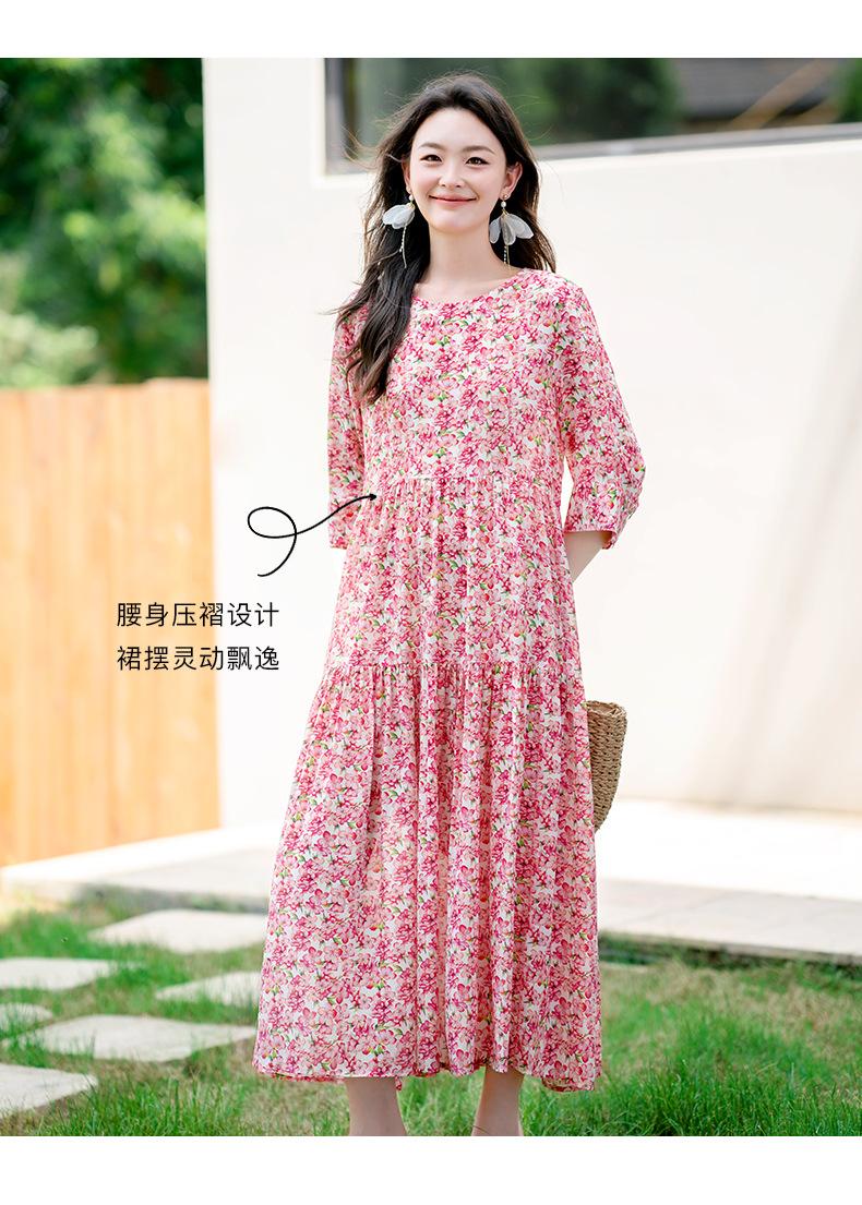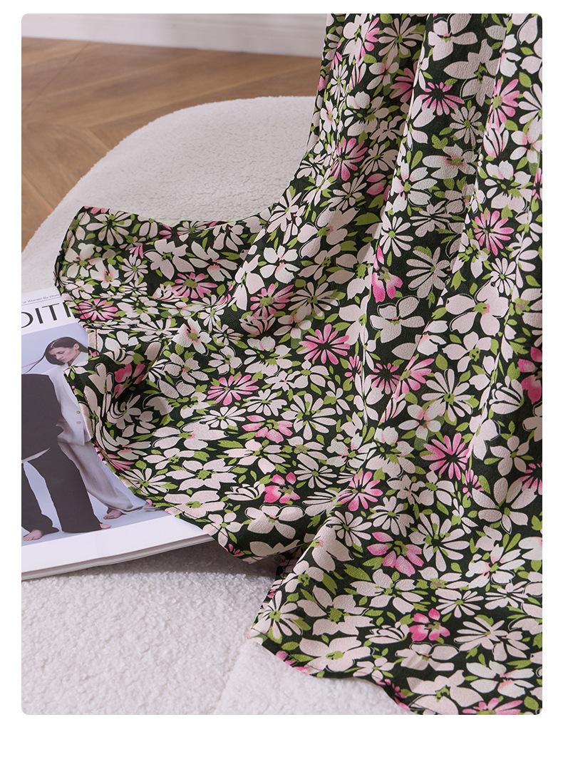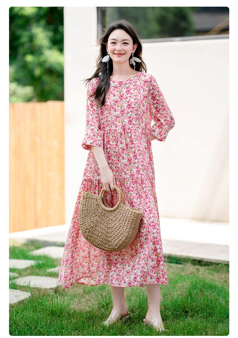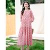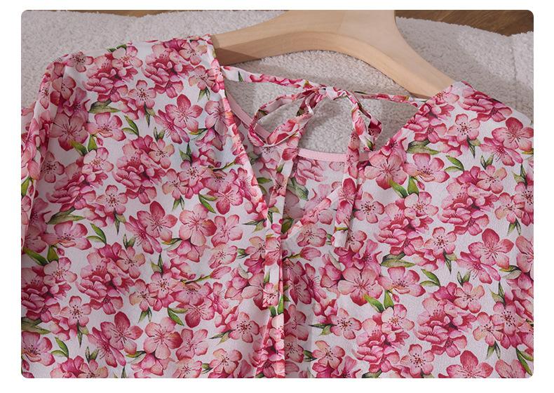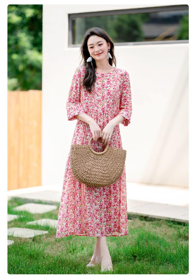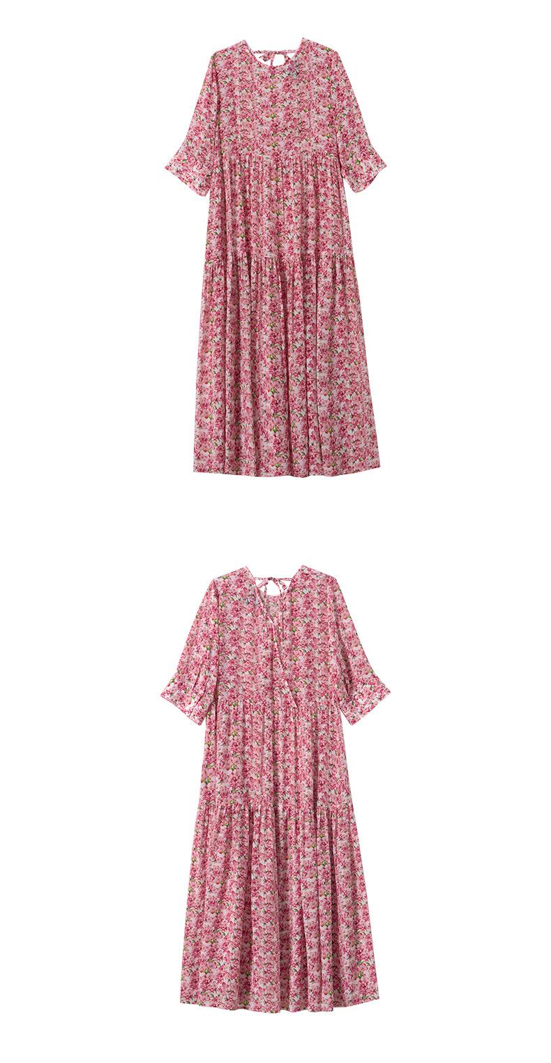 Rongtai Diseño Floral Espalda con Cordones Vestido de Seda de Morera de Seda de una Sola Capa para Mujer Falda Amplia Holgada Empalmada