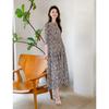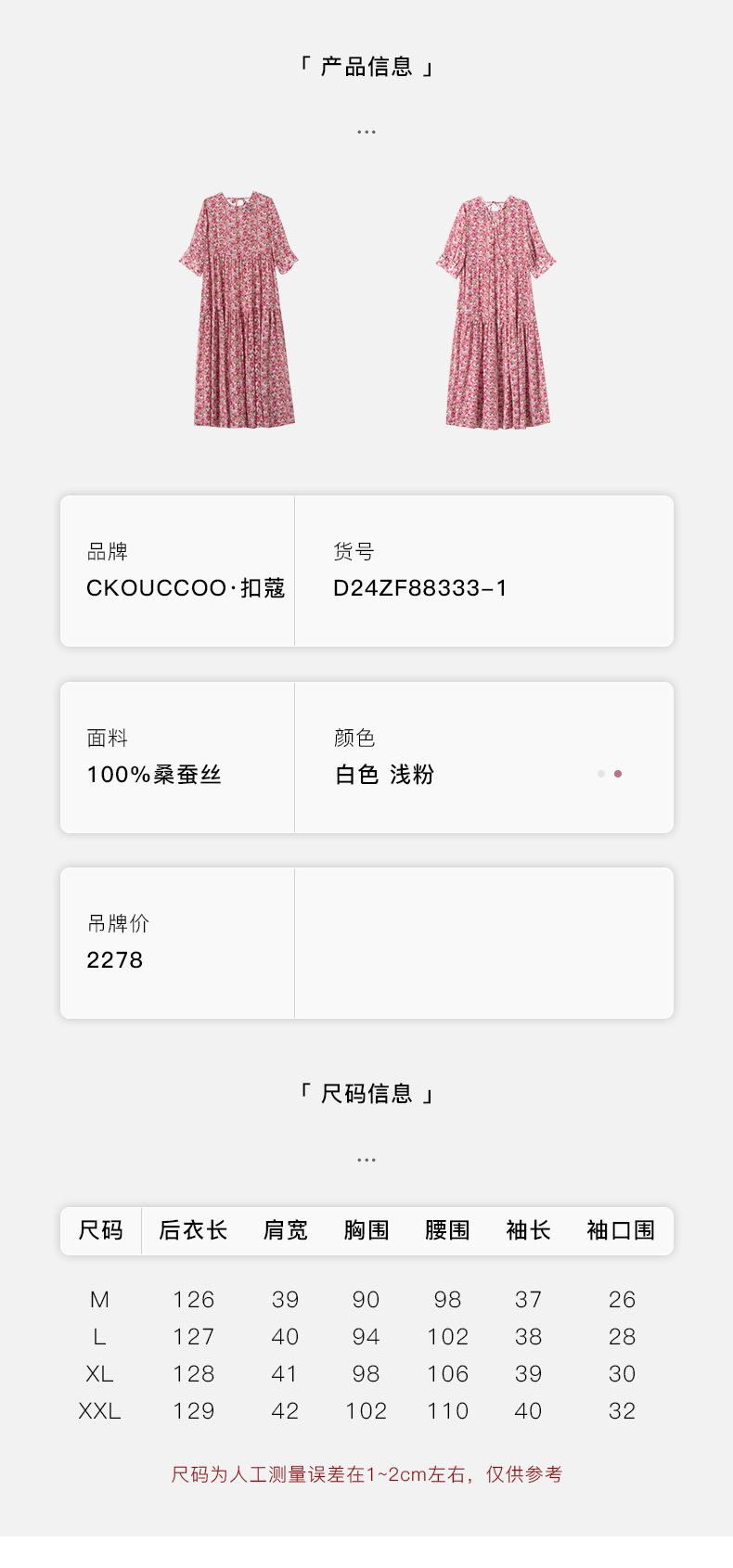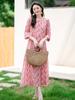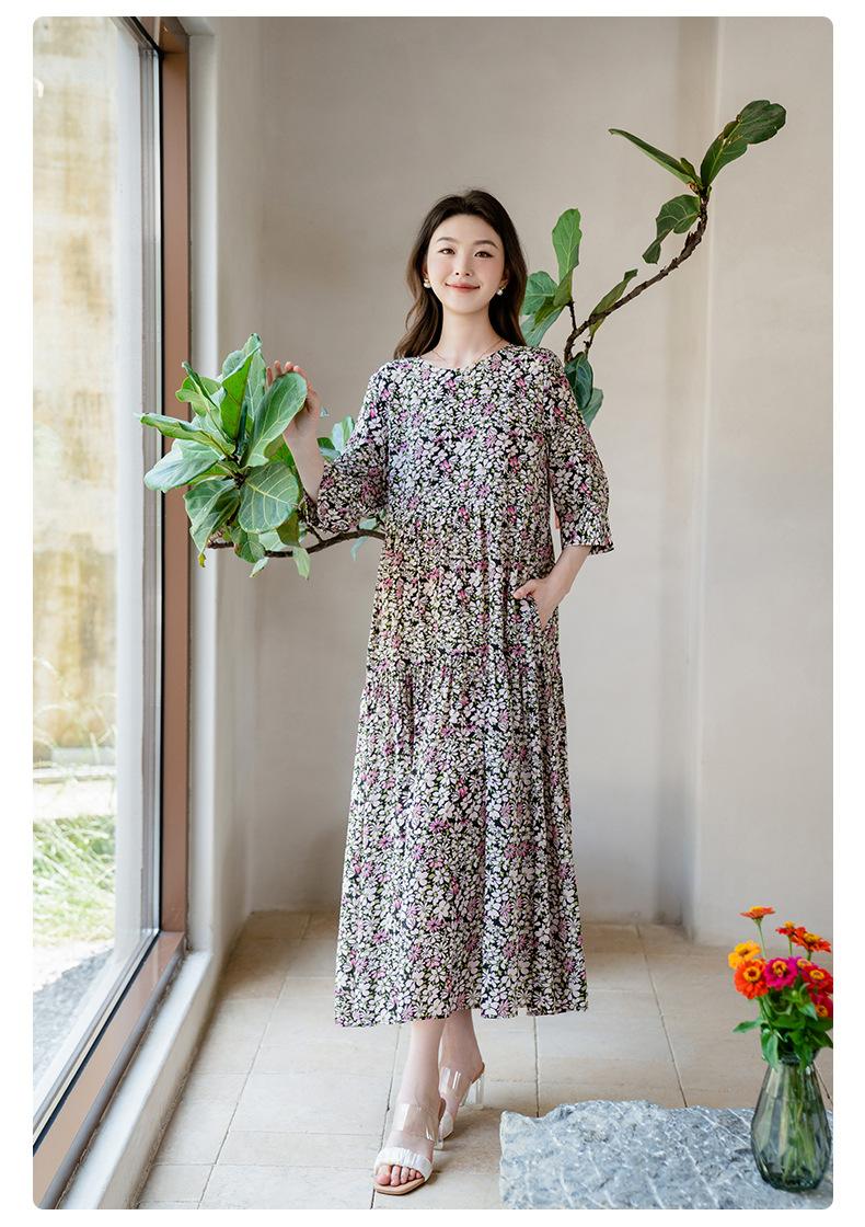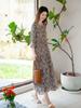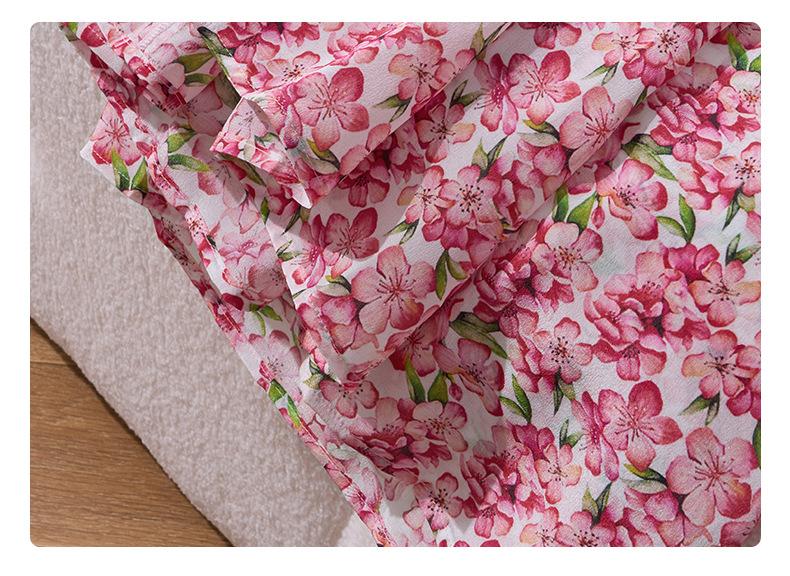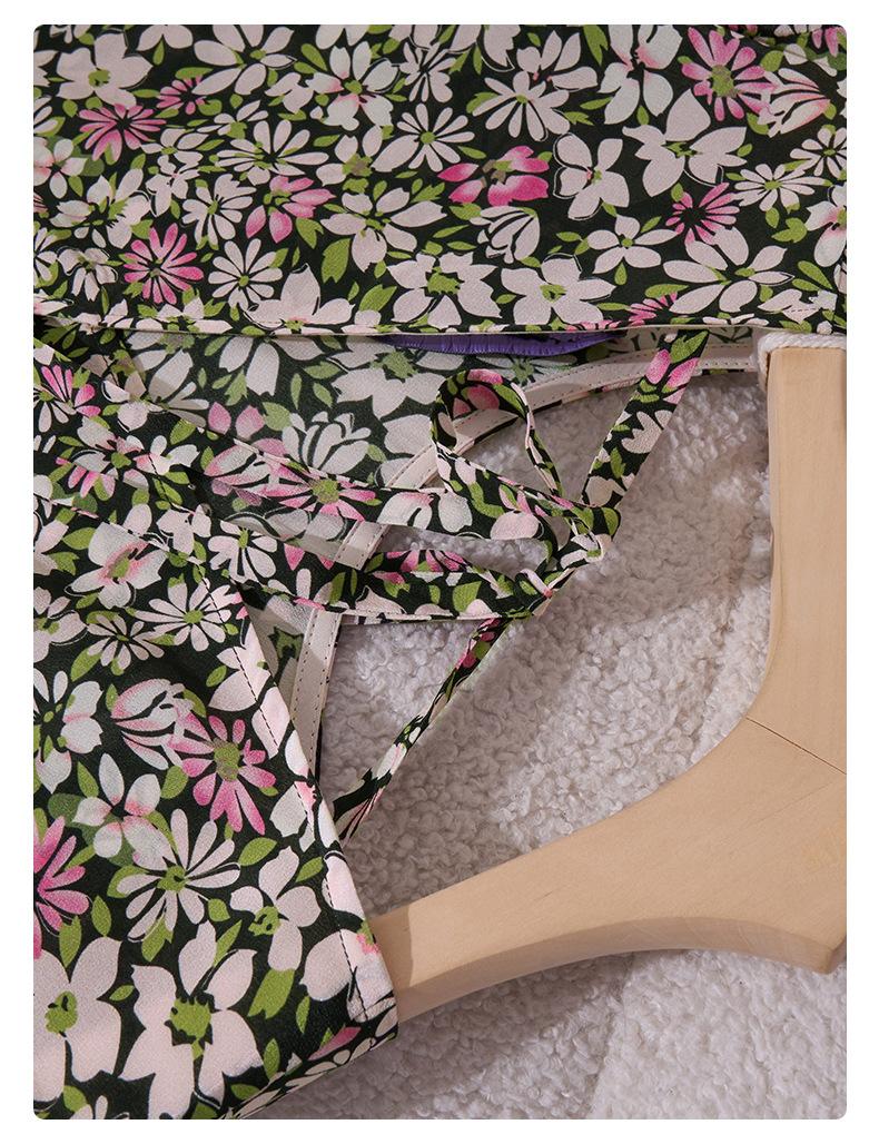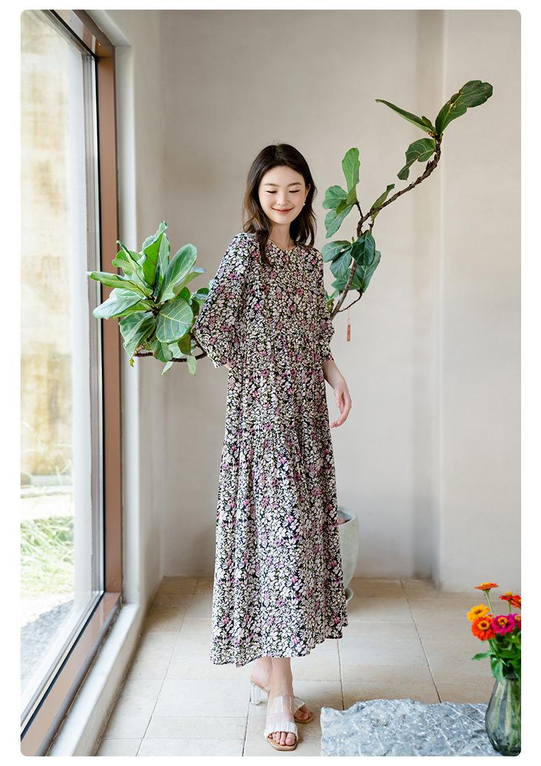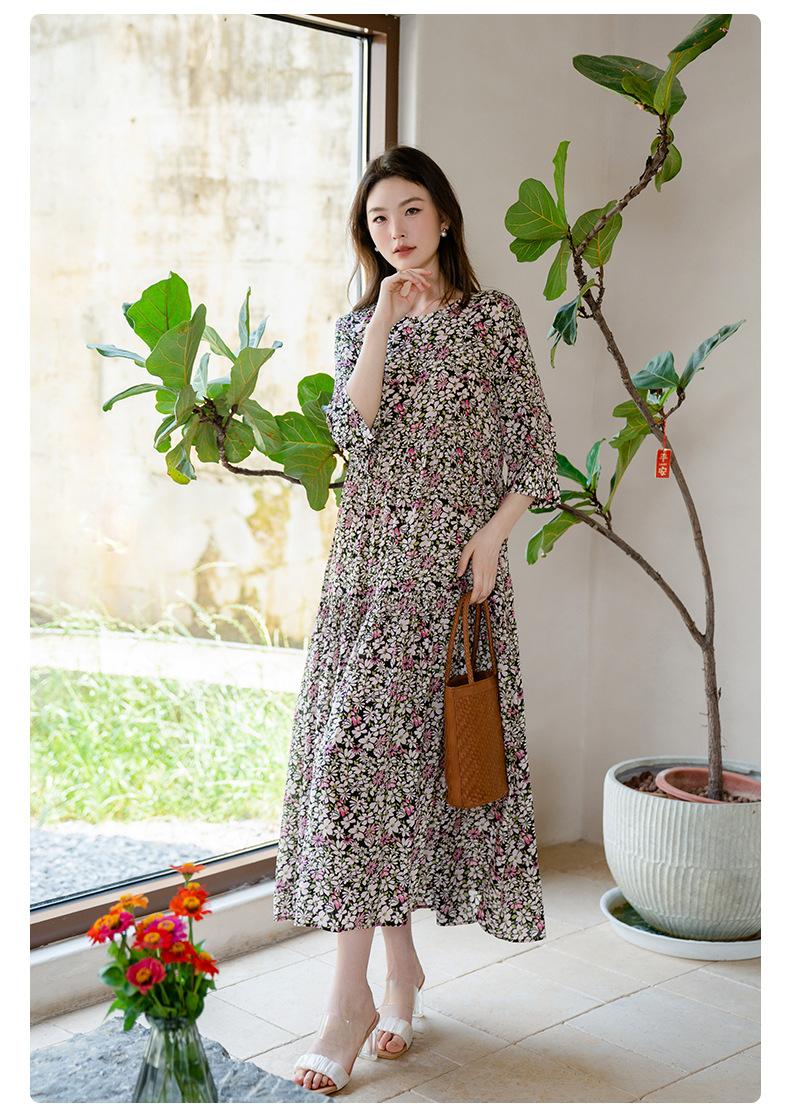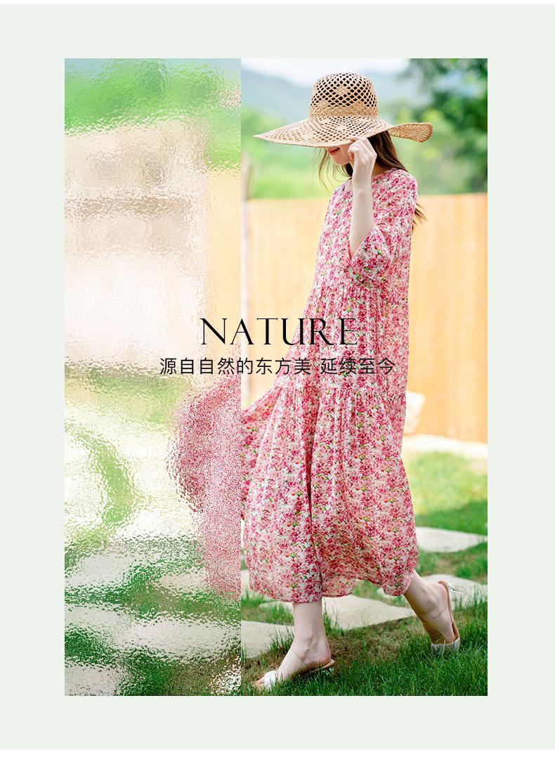 Rongtai Diseño Floral Espalda con Cordones Vestido de Seda de Morera de Seda de una Sola Capa para Mujer Falda Amplia Holgada Empalmada