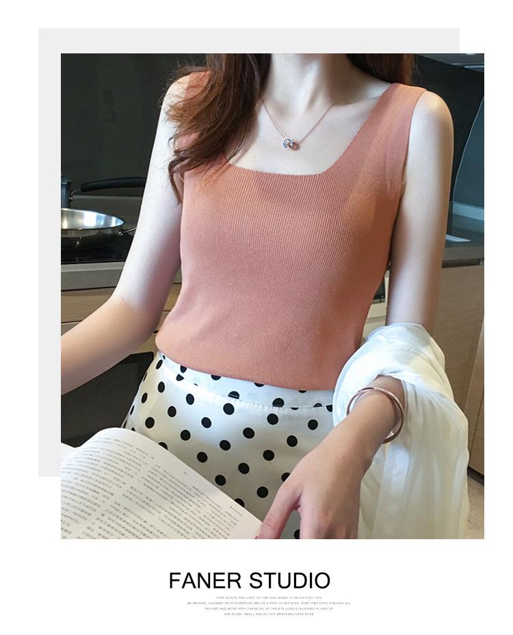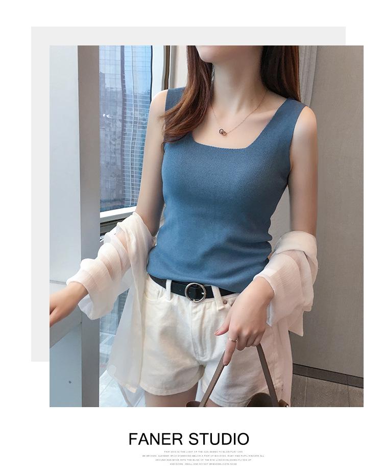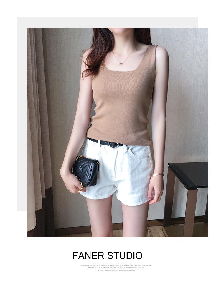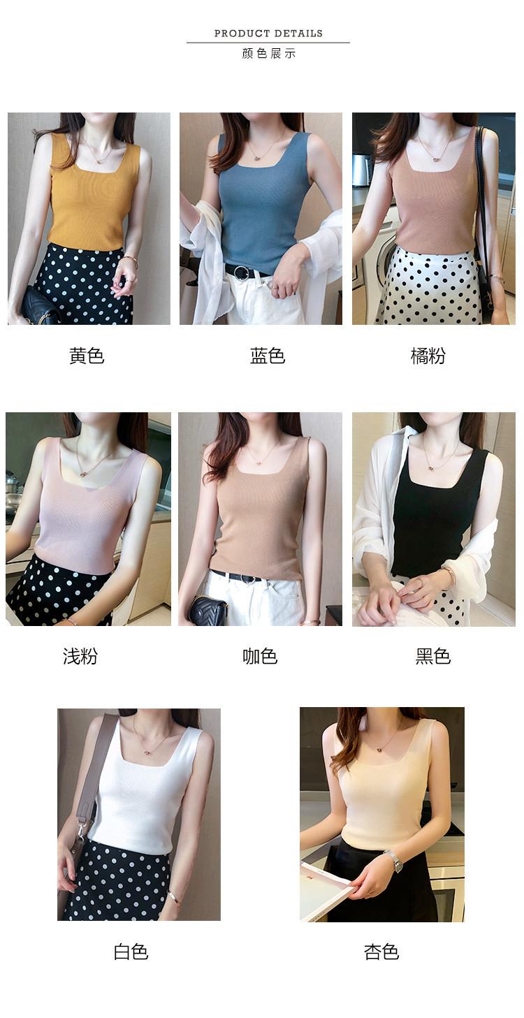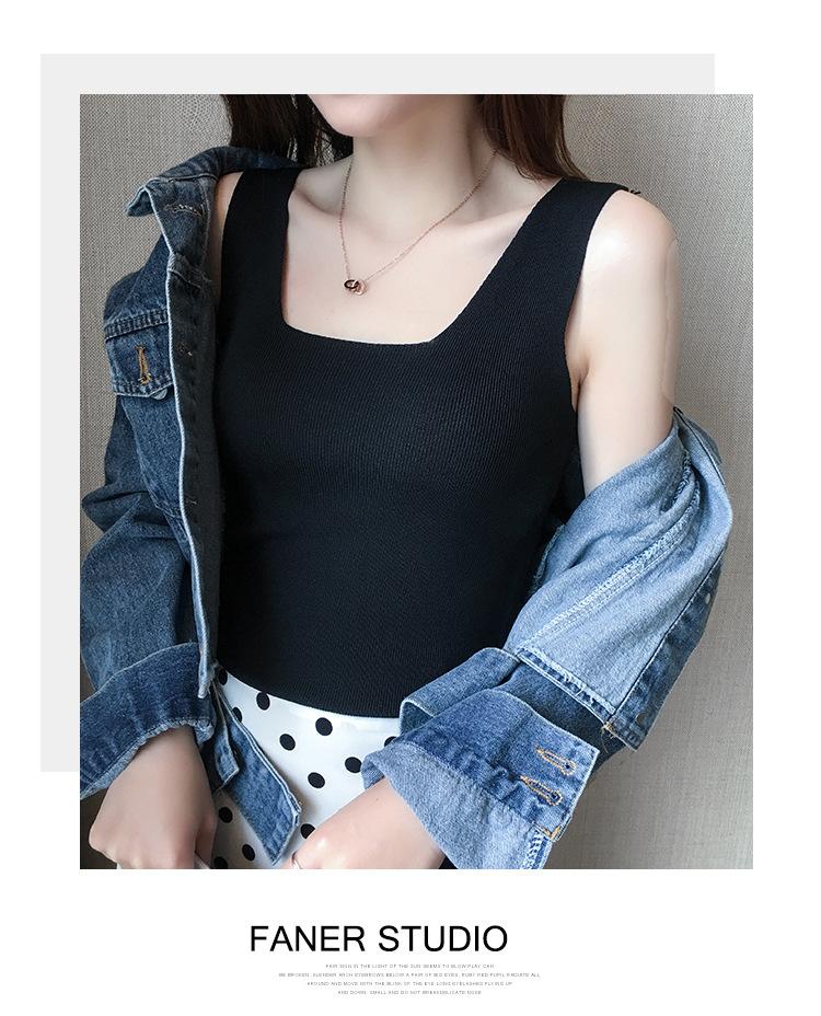 Traje de otoño e invierno para mujer con tirantes pequeños, chaleco negro de punto corto sin mangas para primavera y otoño, prenda exterior, camisa de capa base.