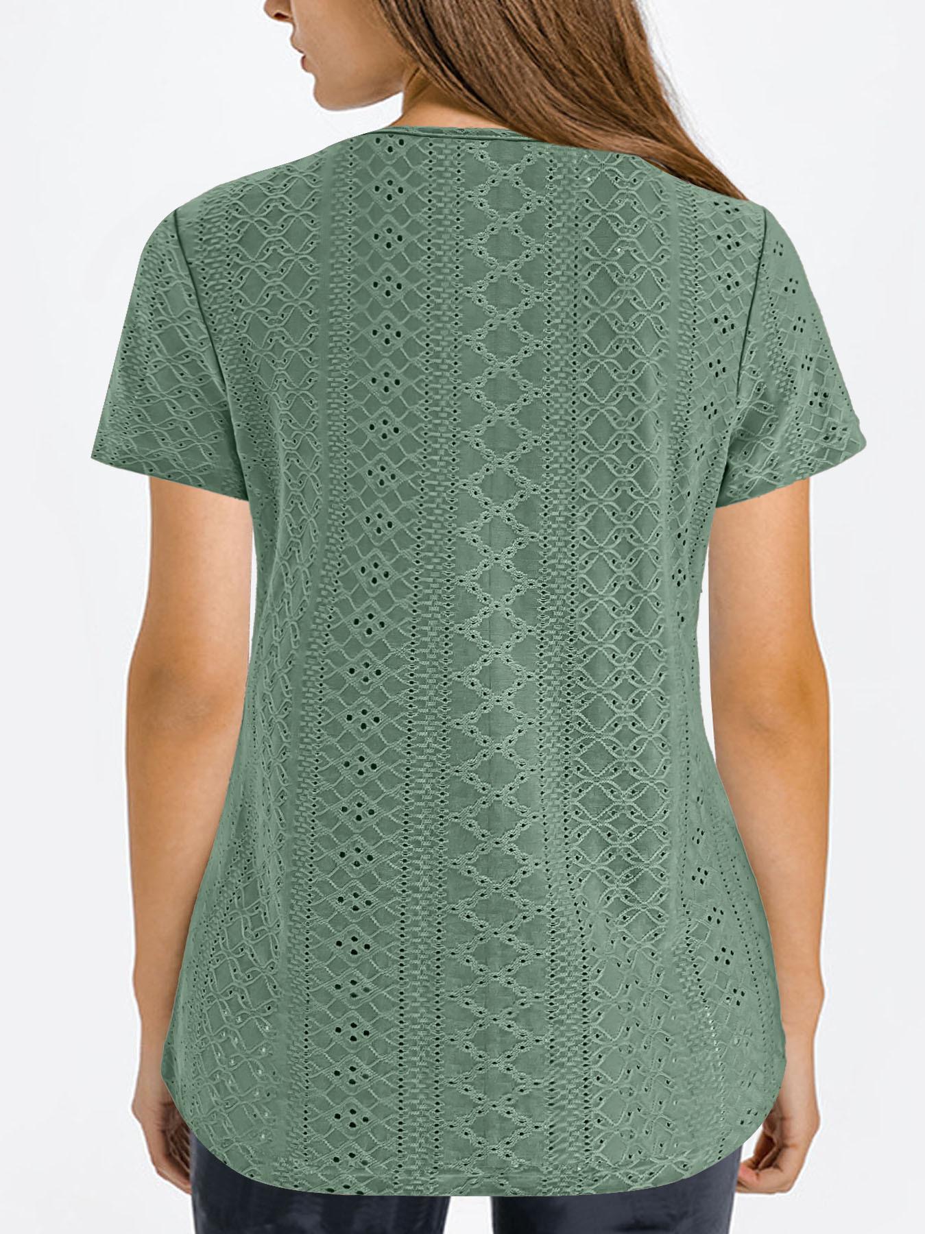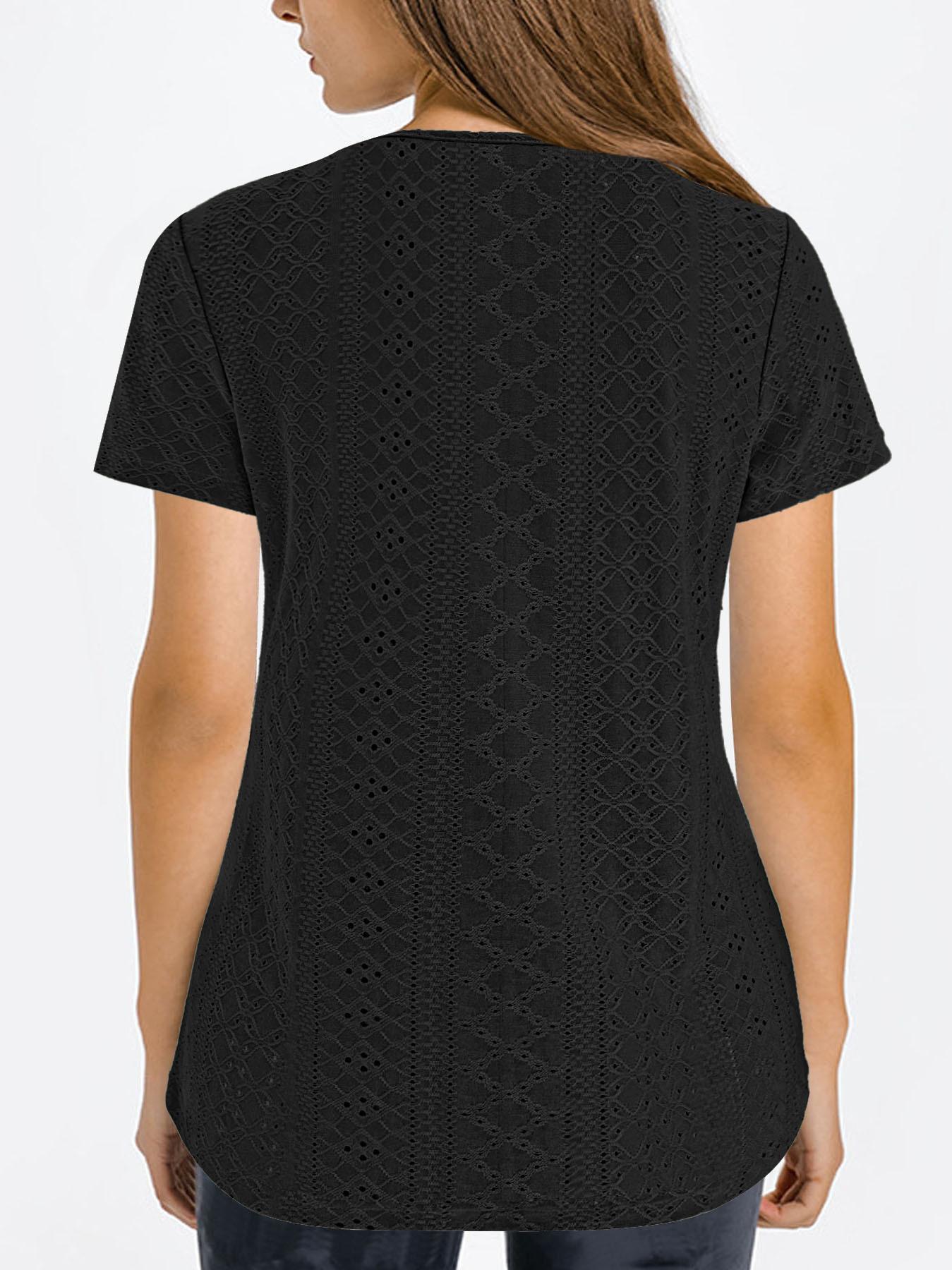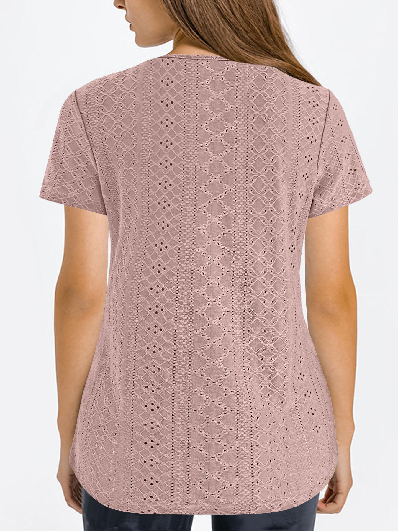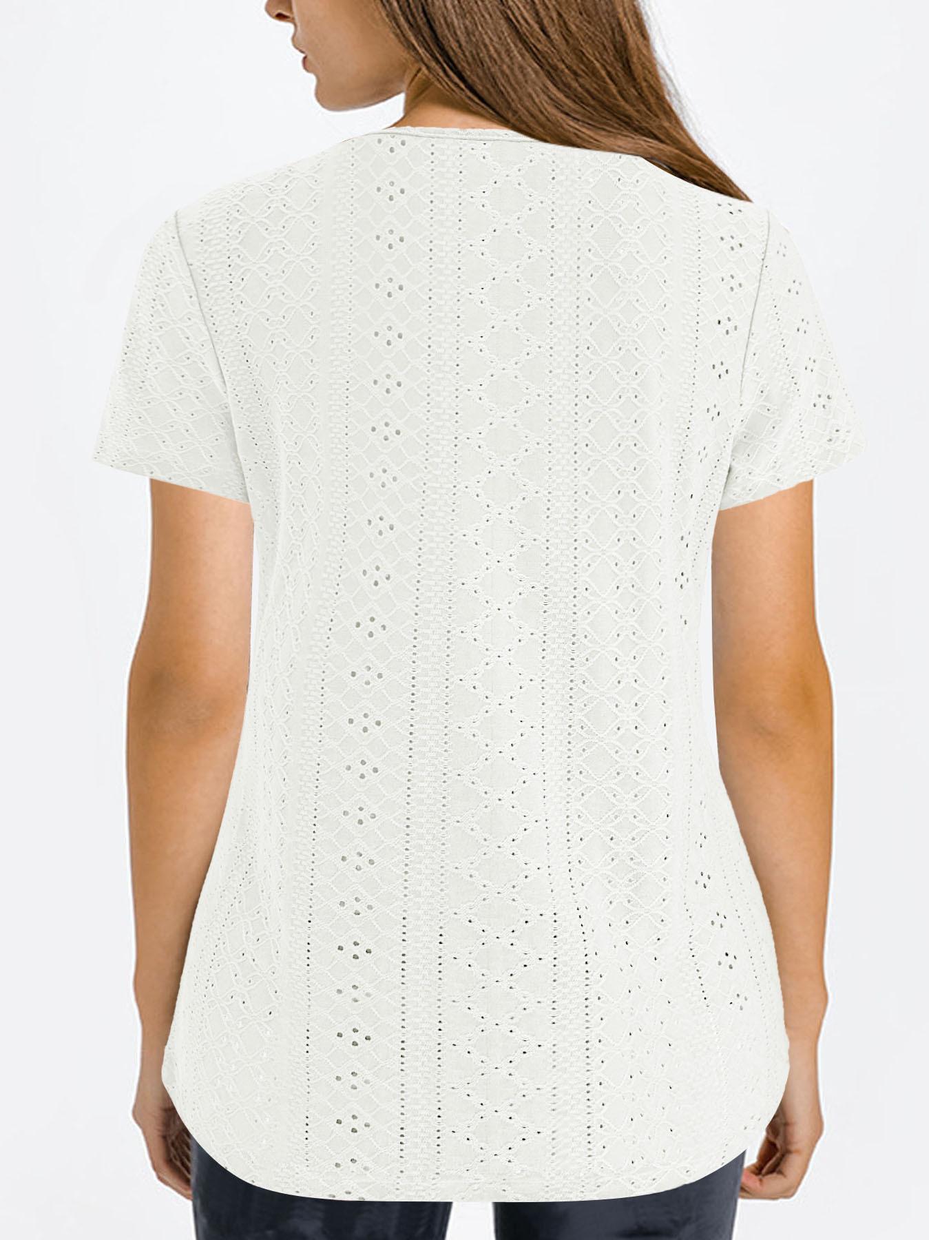 Camiseta de manga corta holgada, informal, cómoda, de cuello redondo, de jacquard, hueca, de Amazon, para mujer, de verano, europea y americana.