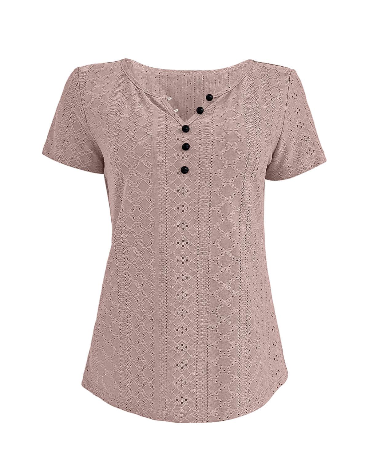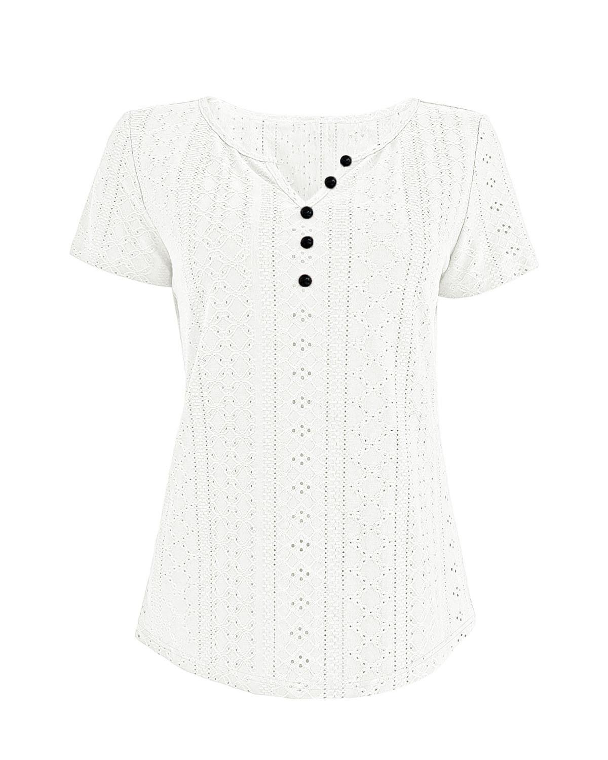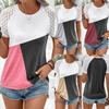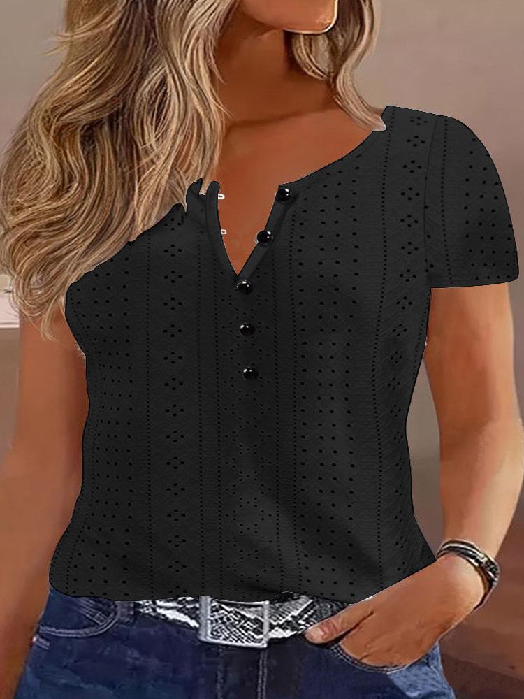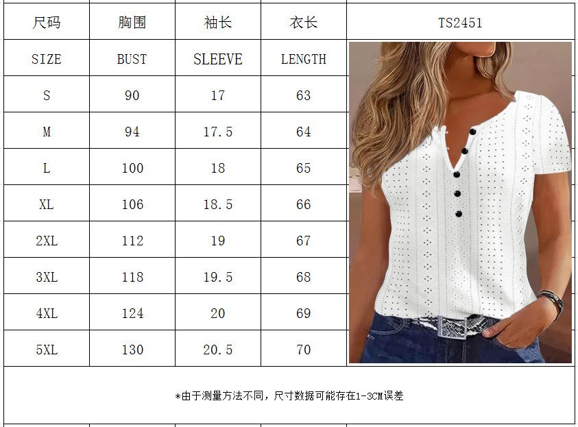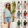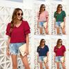 Camiseta de manga corta holgada, informal, cómoda, de cuello redondo, de jacquard, hueca, de Amazon, para mujer, de verano, europea y americana.