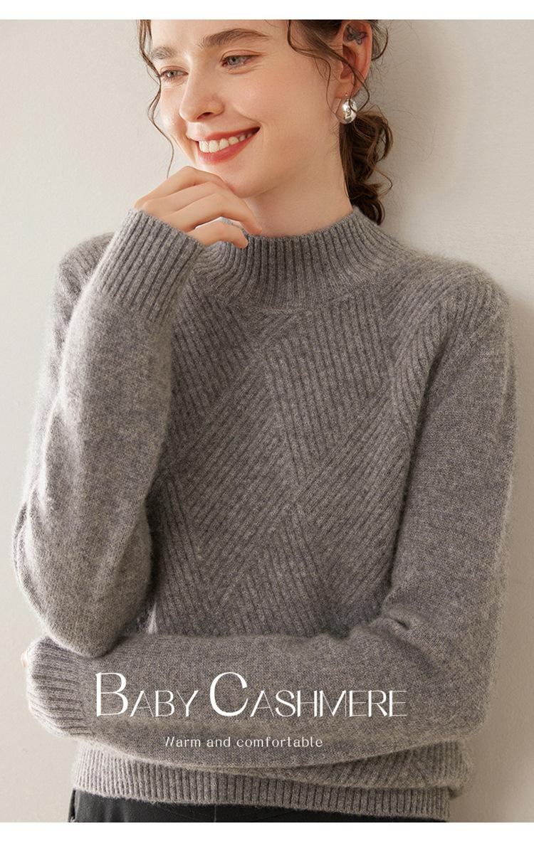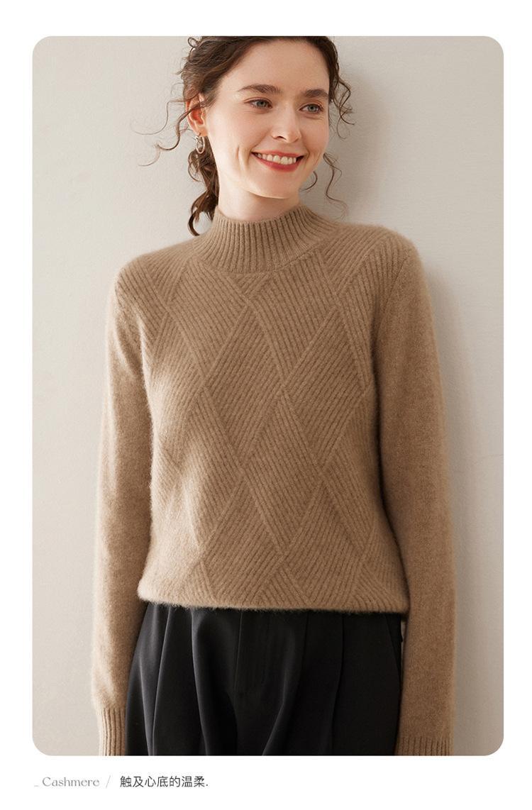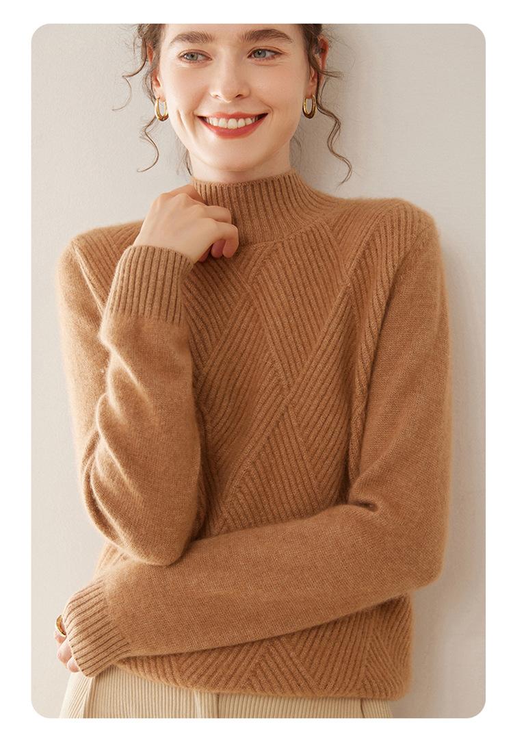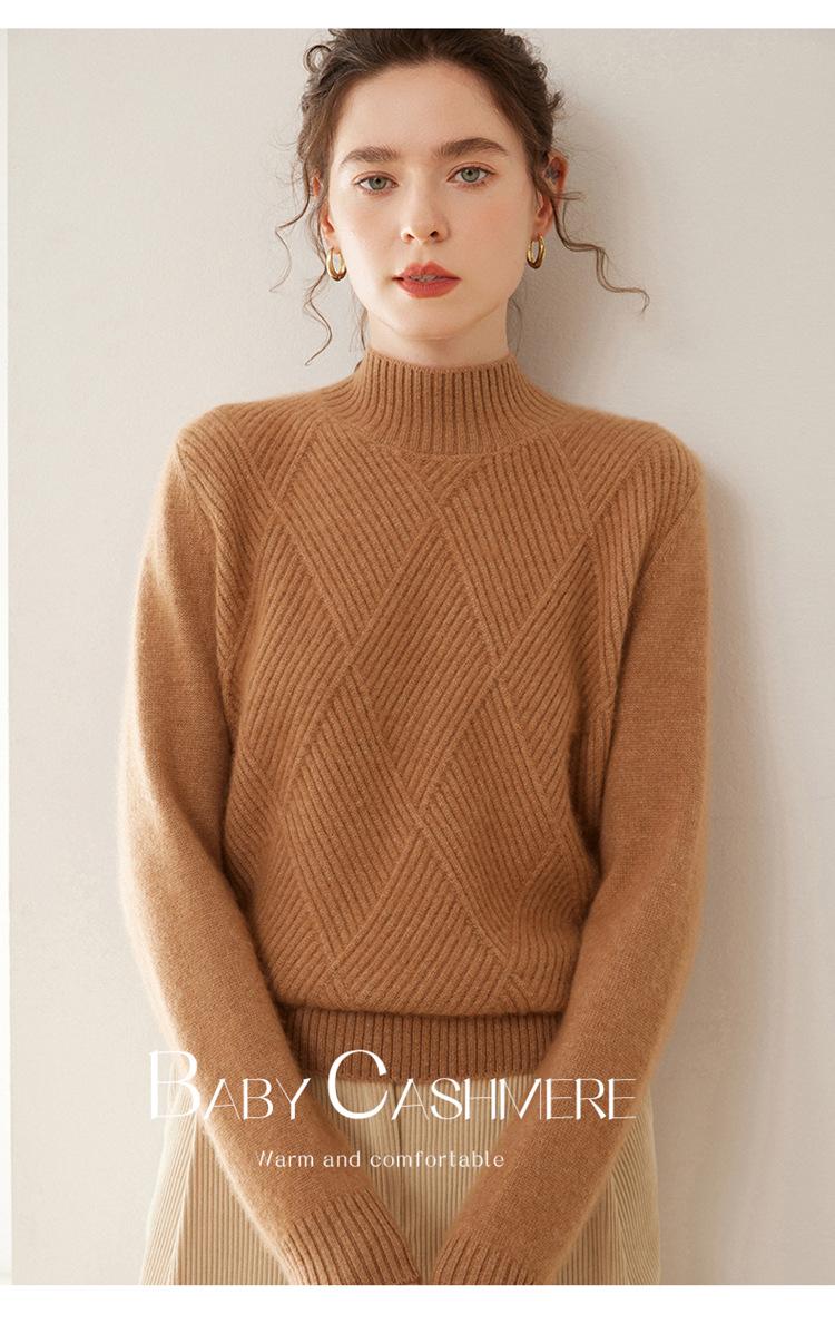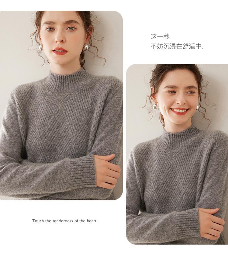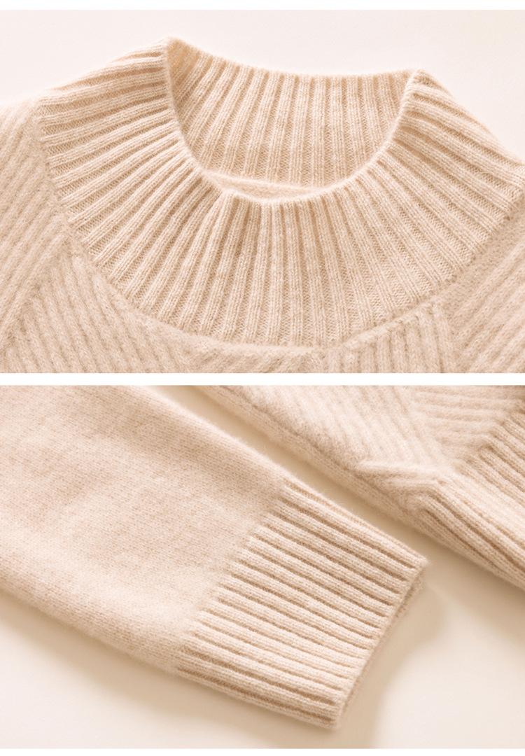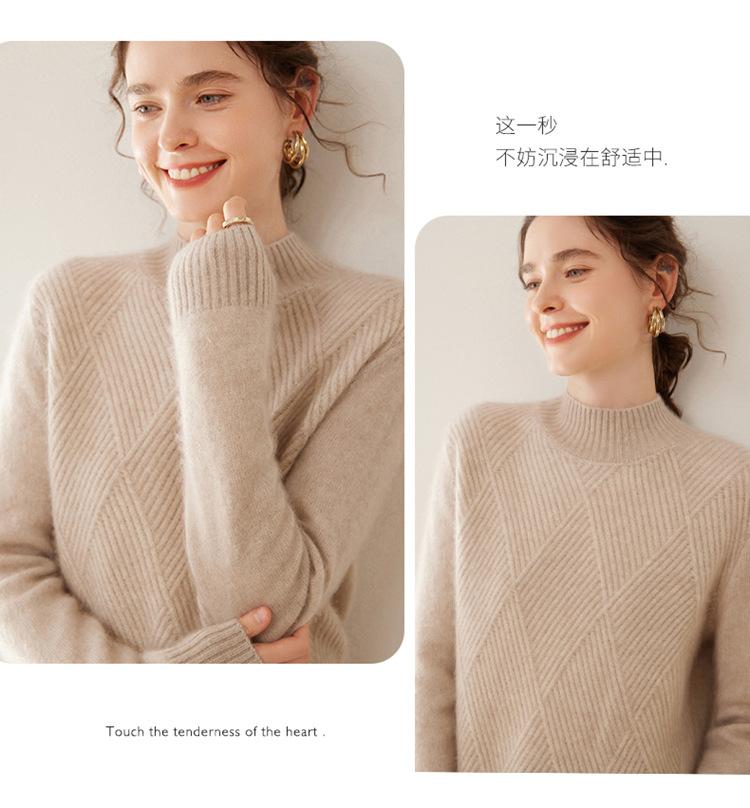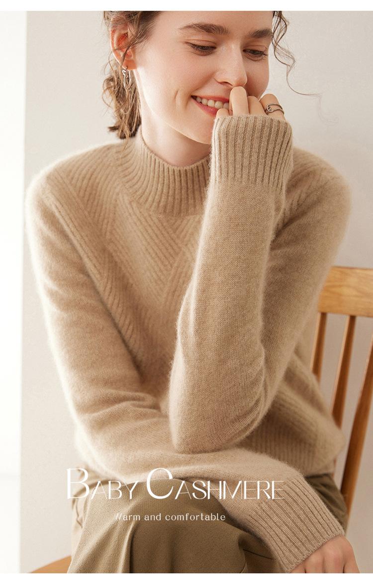 Suéter de cachemira grueso de cuello medio alto para mujer, suéter holgado y cálido de manga larga, cómodo, suave y combinable, agradable para la piel.