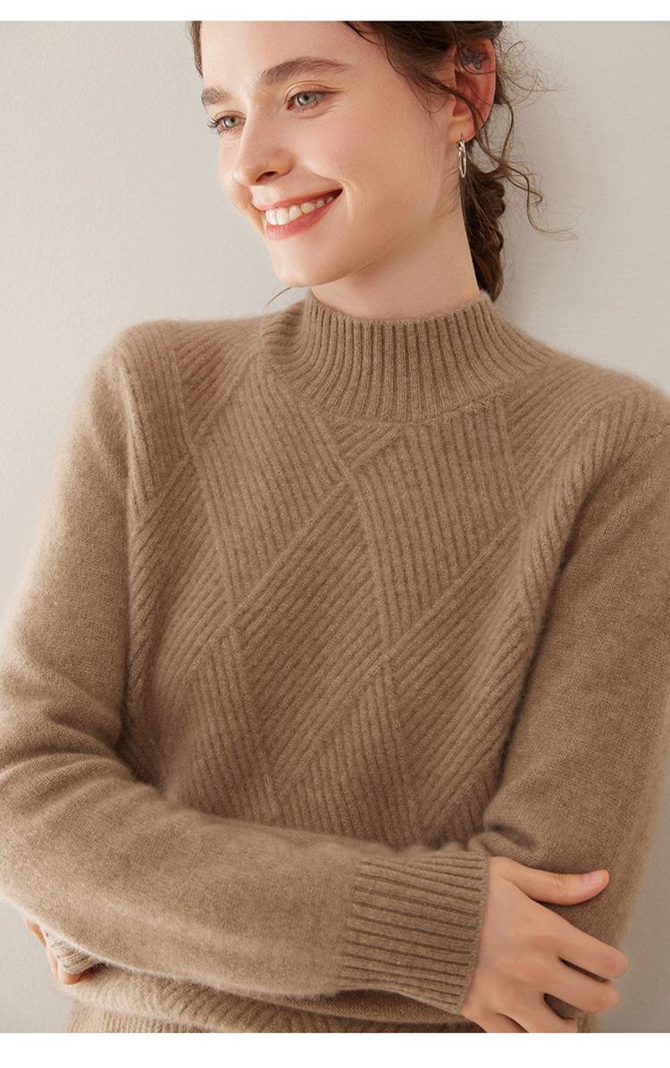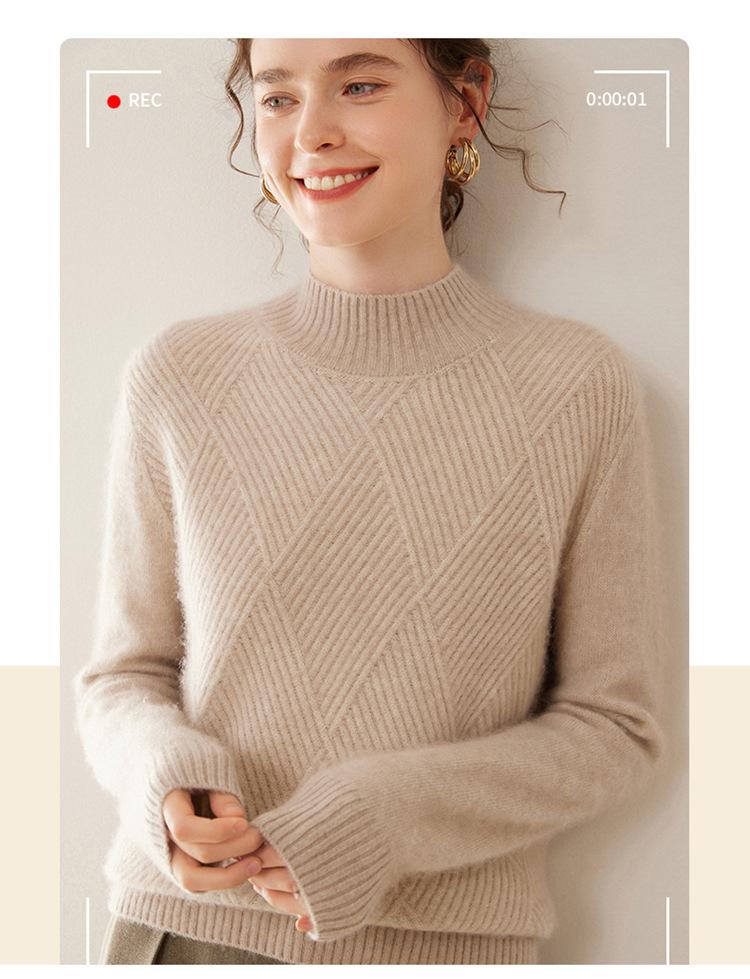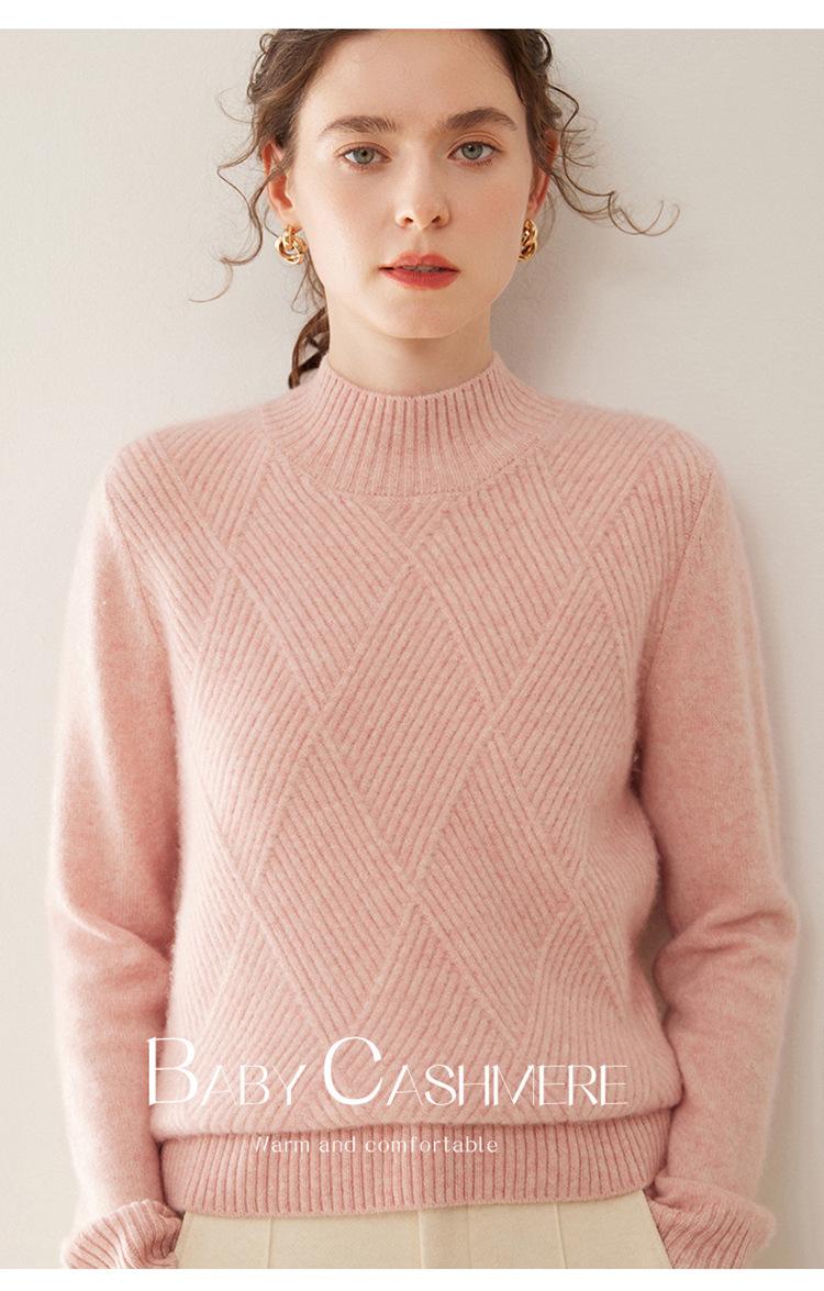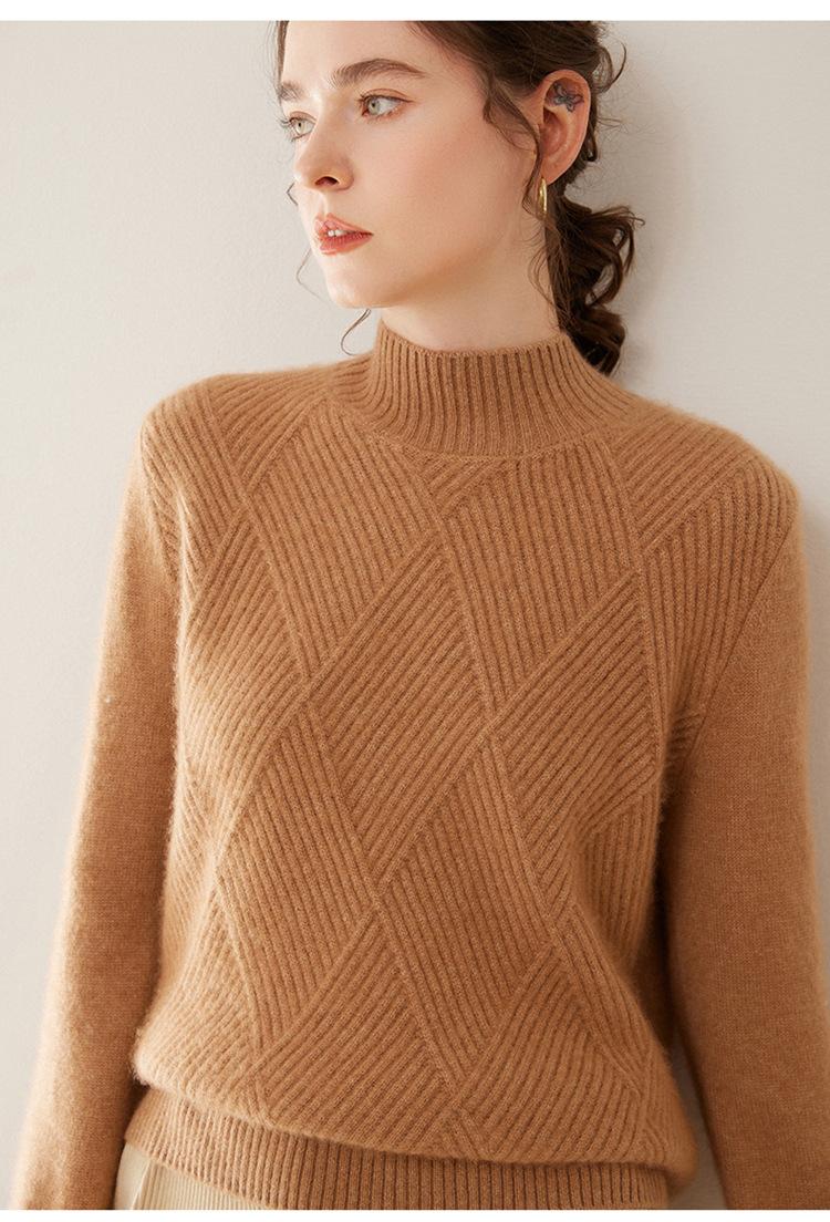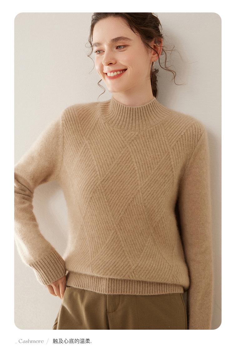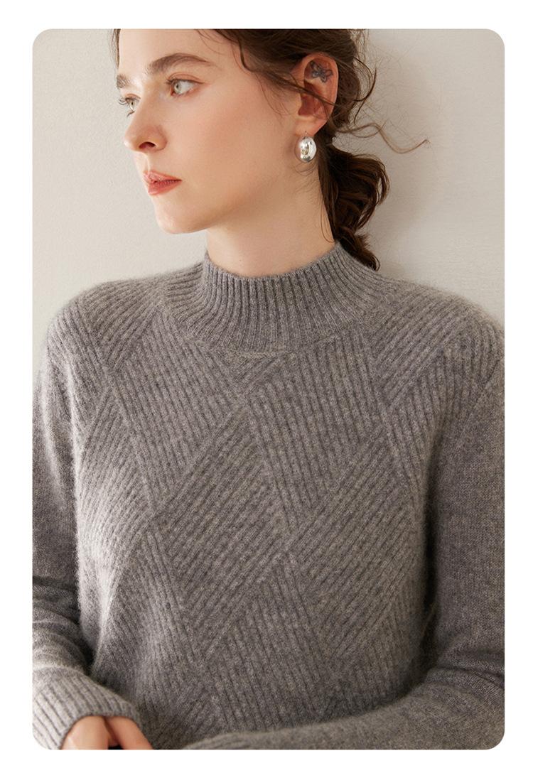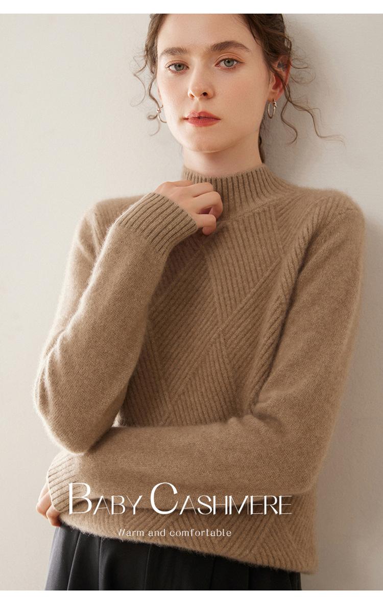 Suéter de cachemira grueso de cuello medio alto para mujer, suéter holgado y cálido de manga larga, cómodo, suave y combinable, agradable para la piel.