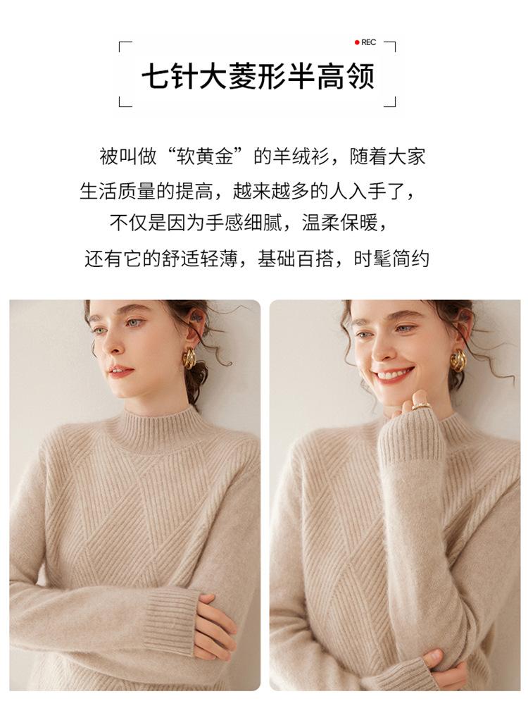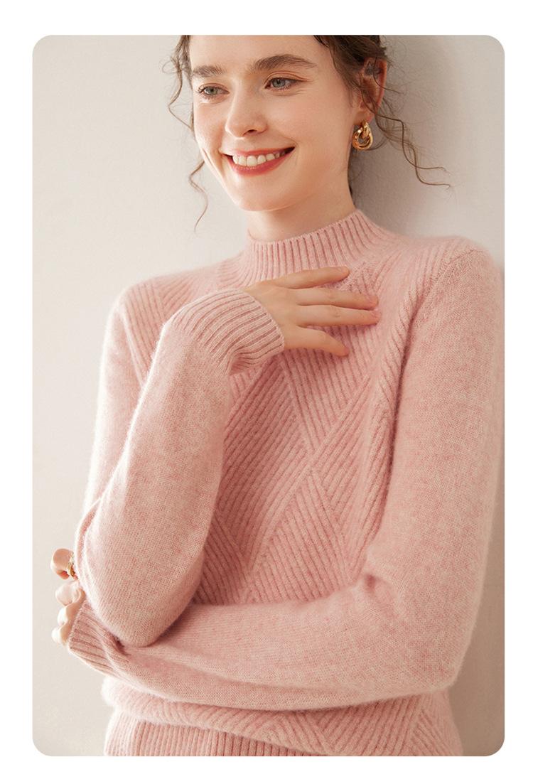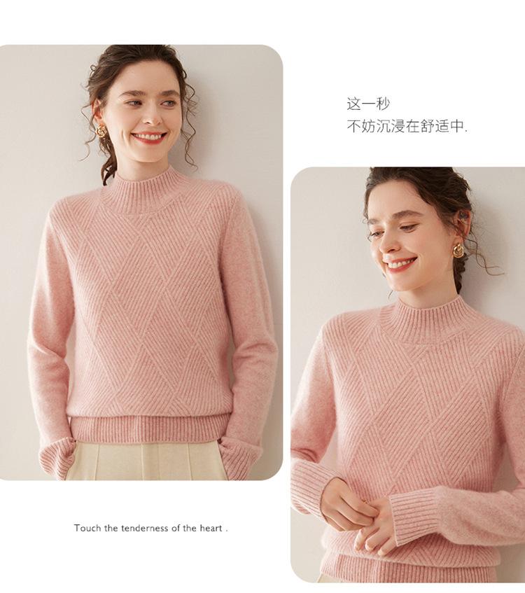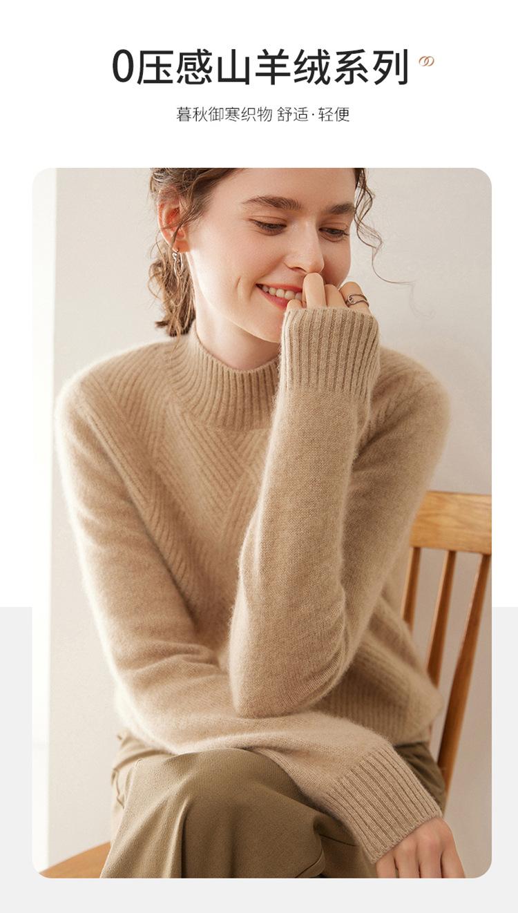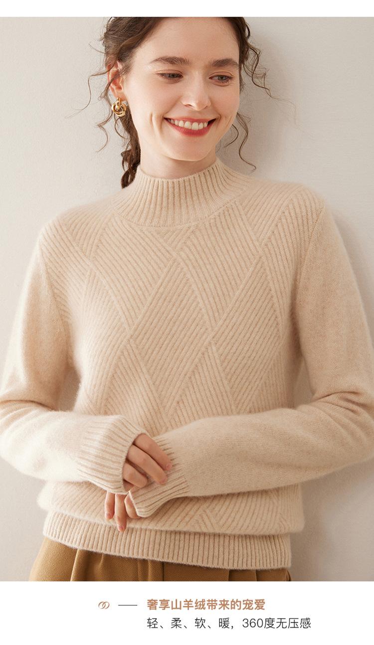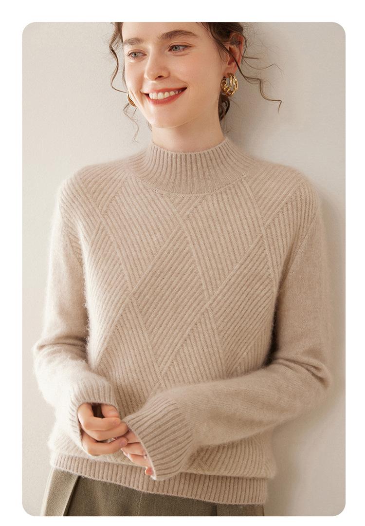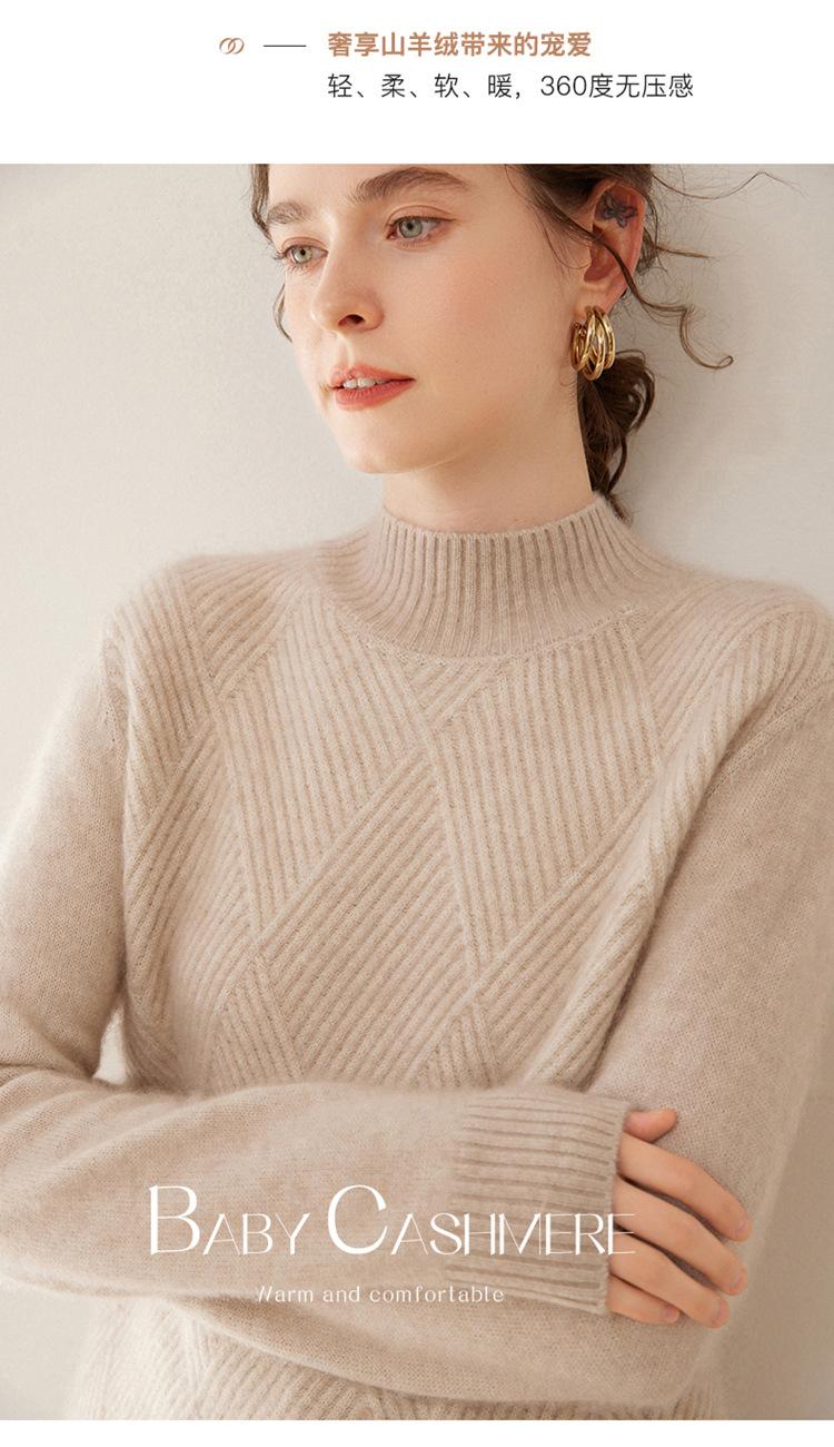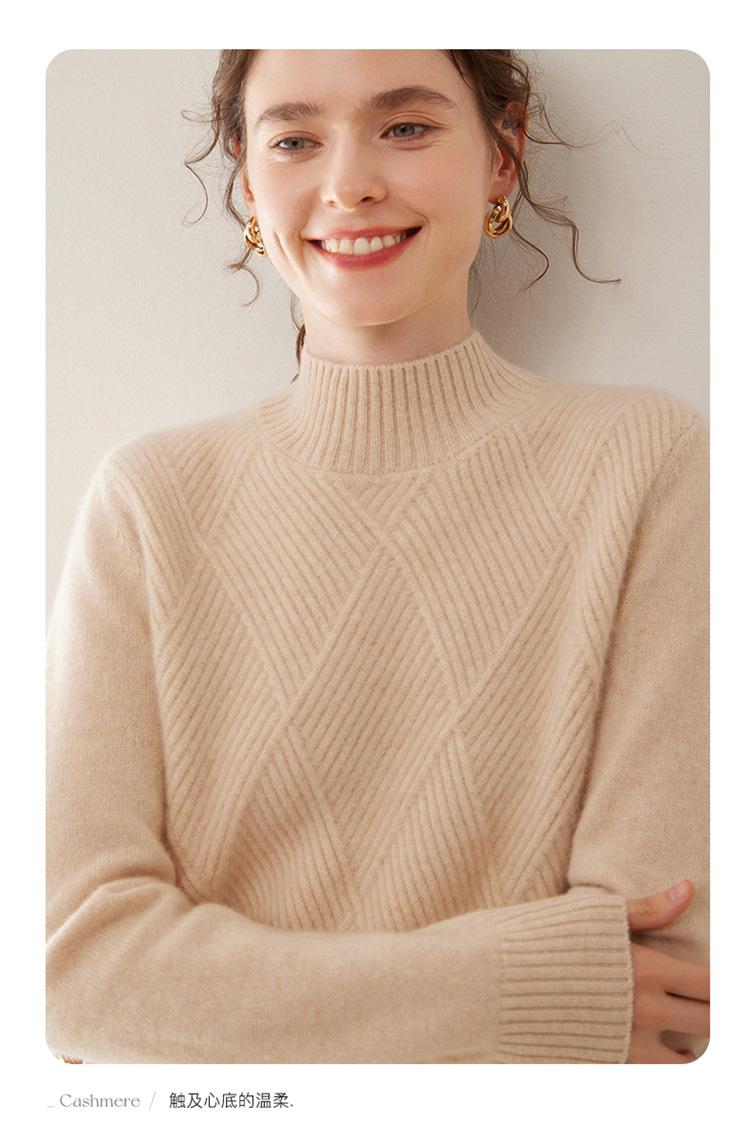 Suéter de cachemira grueso de cuello medio alto para mujer, suéter holgado y cálido de manga larga, cómodo, suave y combinable, agradable para la piel.