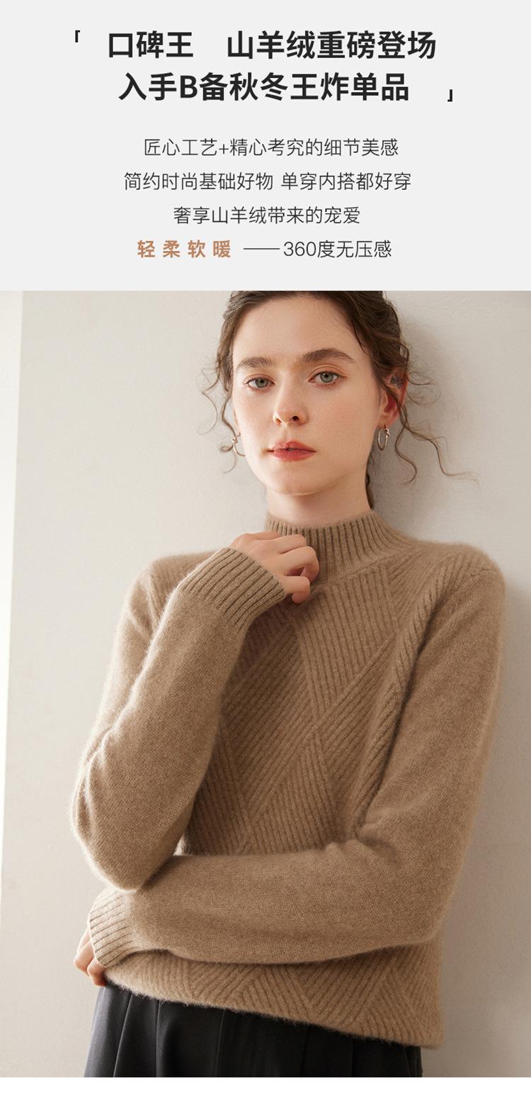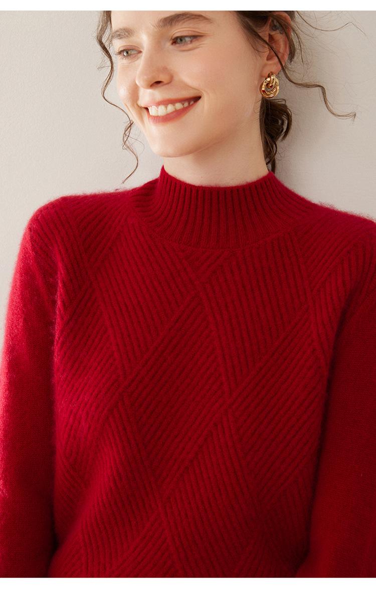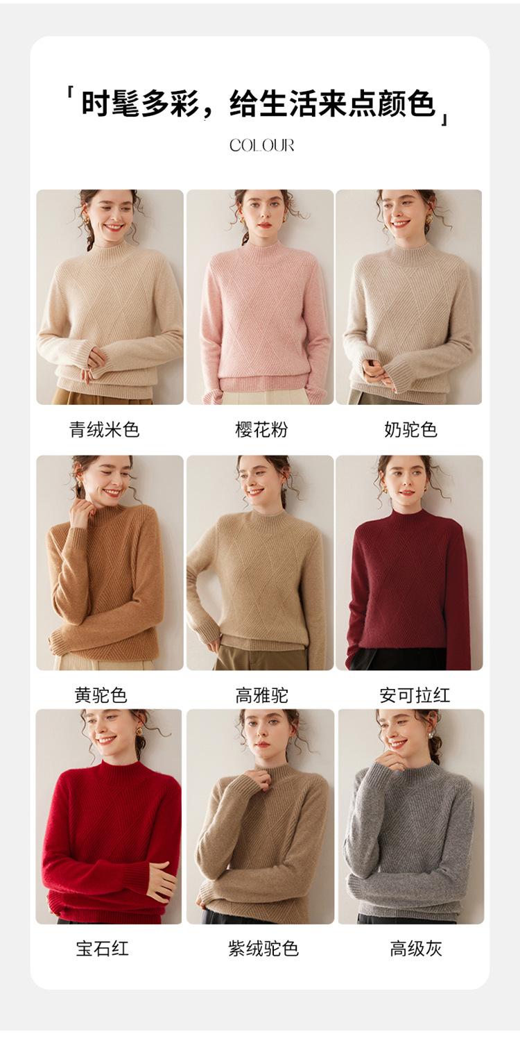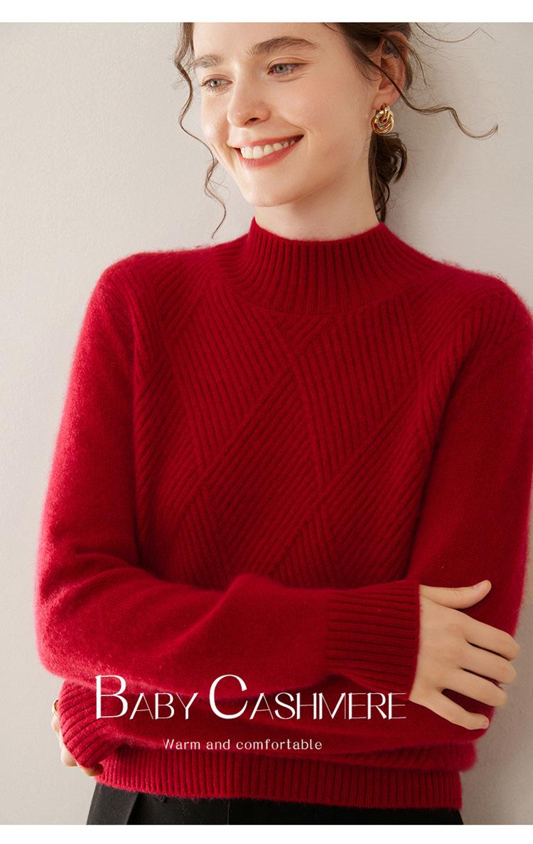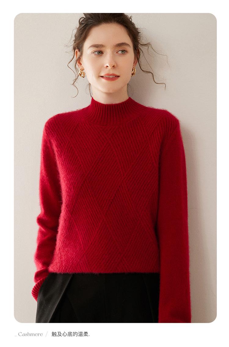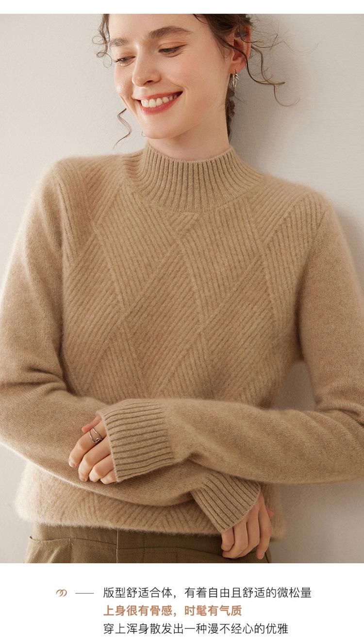 Suéter de cachemira grueso de cuello medio alto para mujer, suéter holgado y cálido de manga larga, cómodo, suave y combinable, agradable para la piel.