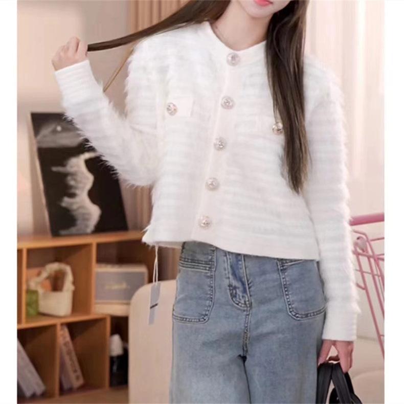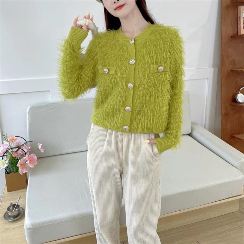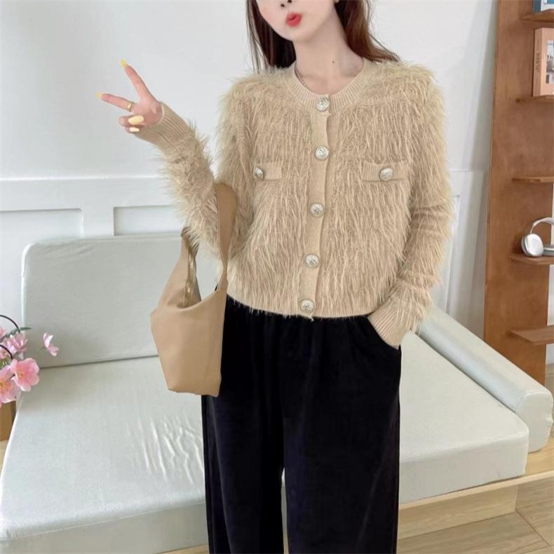 Suéter tipo cárdigan de cuello redondo estilo perezoso coreano nuevo de otoño e invierno para mujer, tops casuales sueltos y suaves que no dañan la piel.