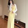 Chic Francés Dulce y Picante Diseño Nicho Look Adelgazante de Cintura Vestido Floral con Volantes Falda Corta Asimétrica de Verano para Mujer