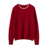 Suéter de Cachemira Mujer 100% Cachemira Pura Primavera y Otoño Nuevo Cuello Redondo Botón Canalé Tejido Suéter de Fondo