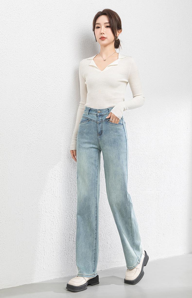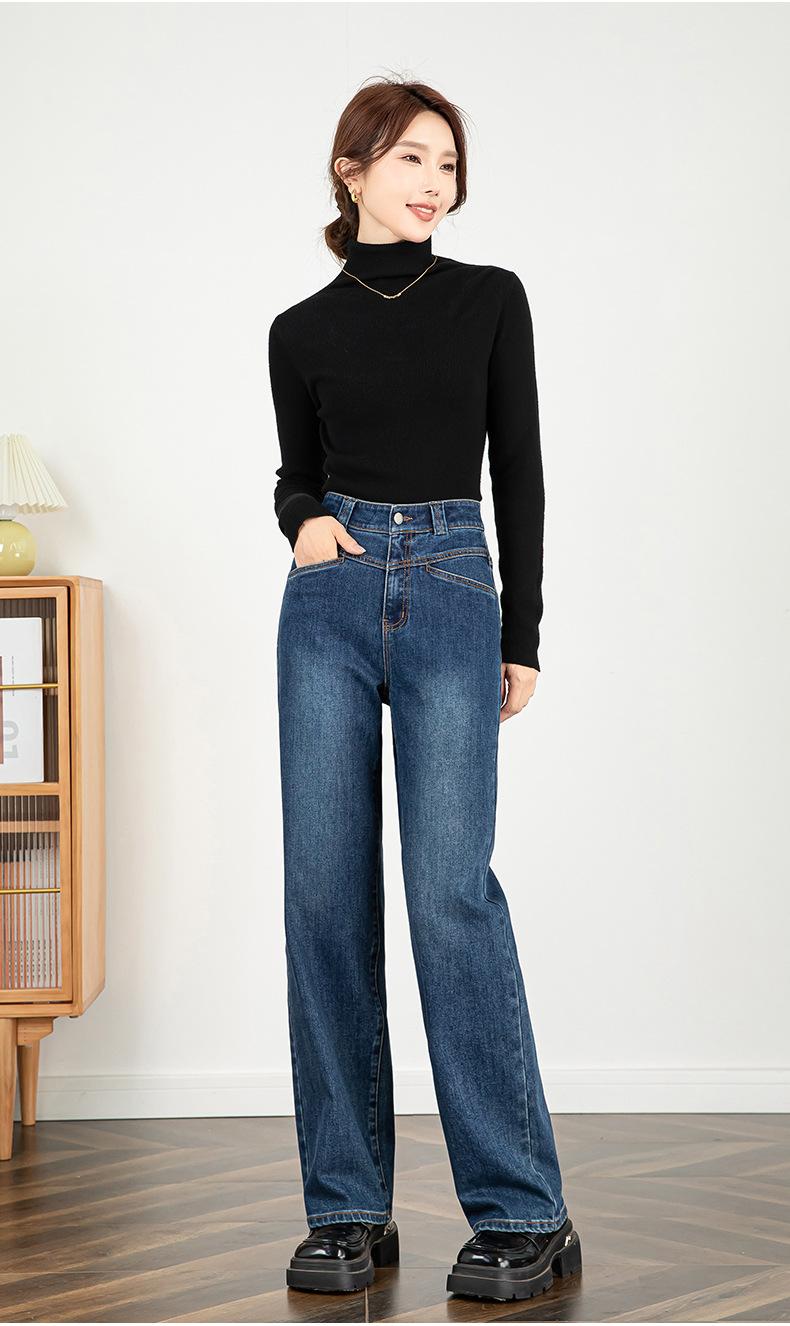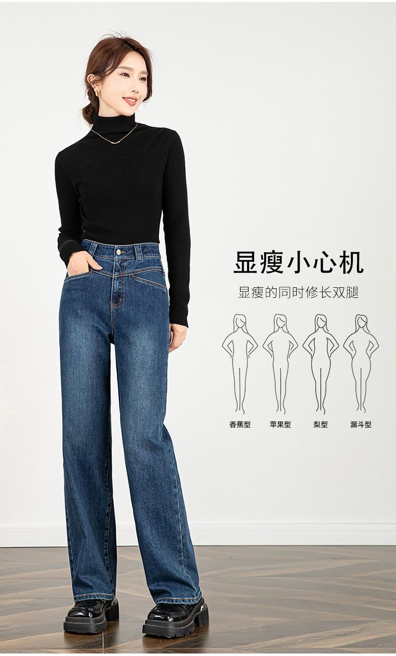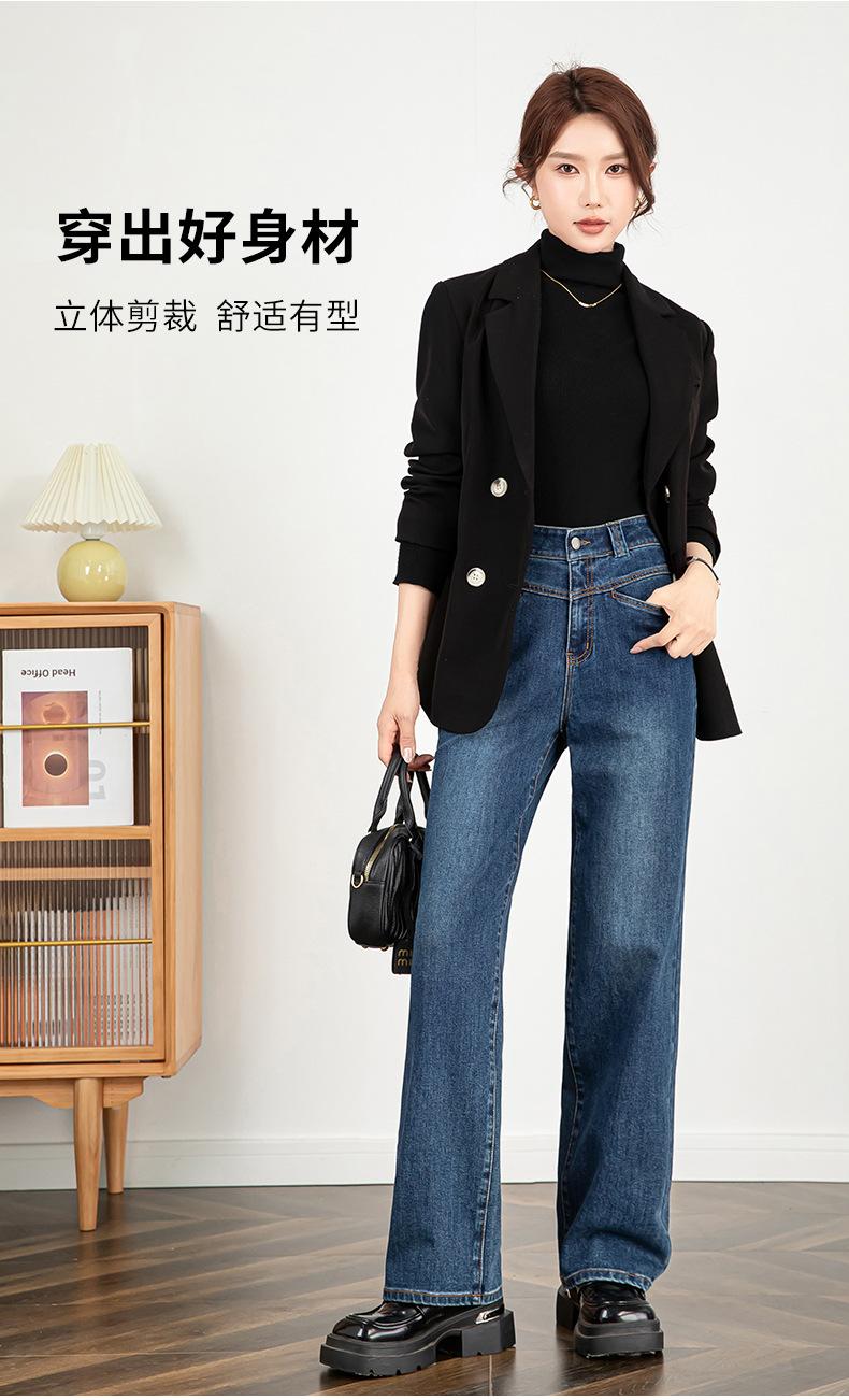 Venta Directa de Fábrica Jeans Slim 2025 Otoño Nuevo Sueltos Rectos de Cintura Alta Adelgazantes de Pierna Ancha Pantalones Largos hasta el Piso 8020