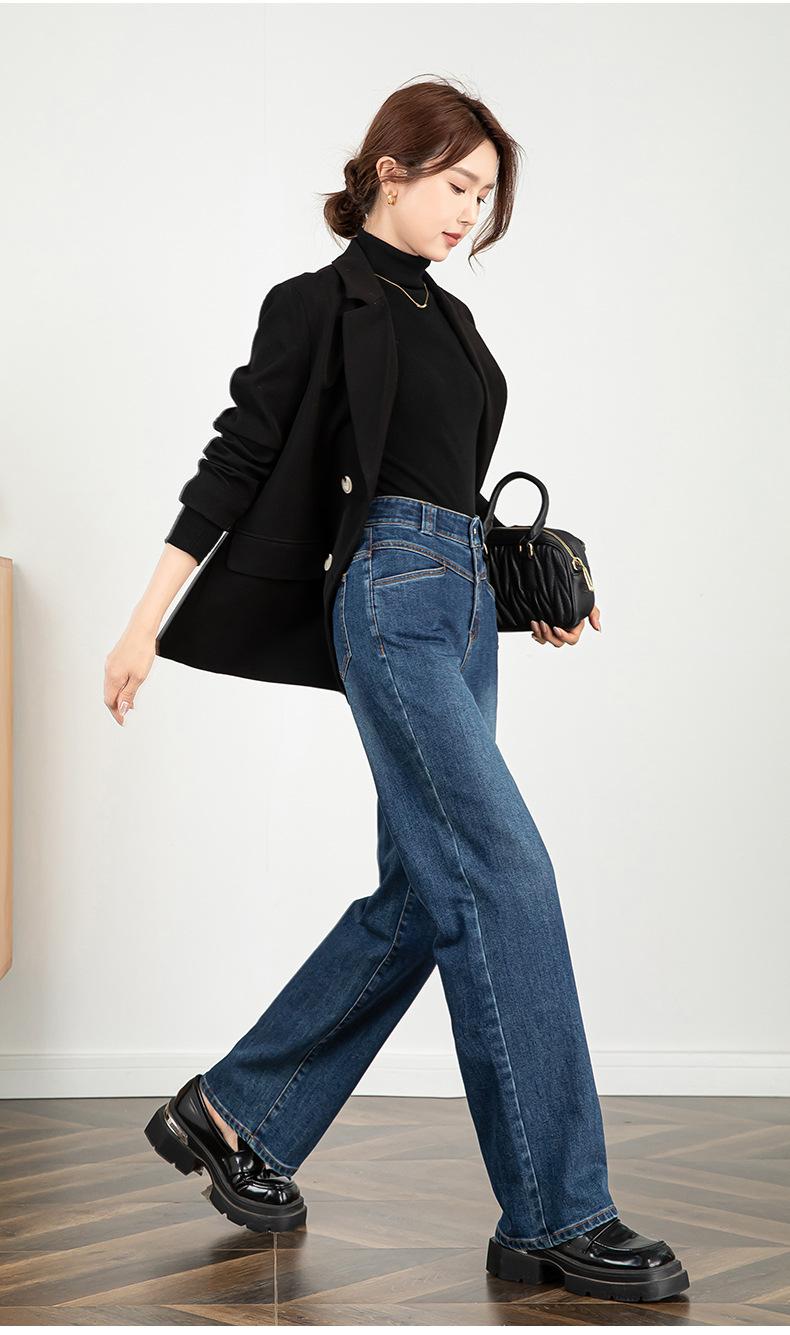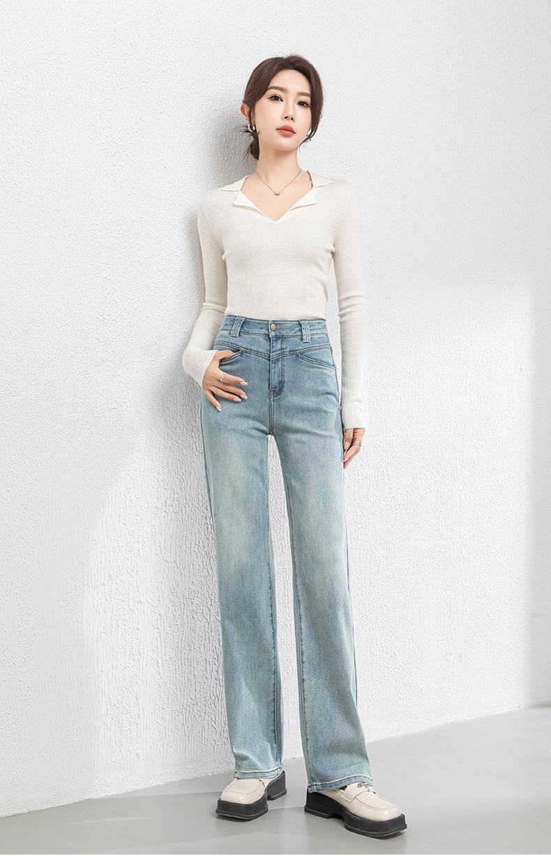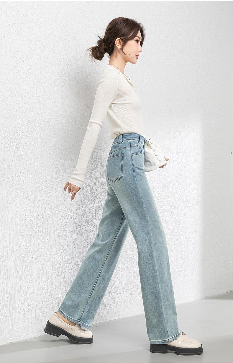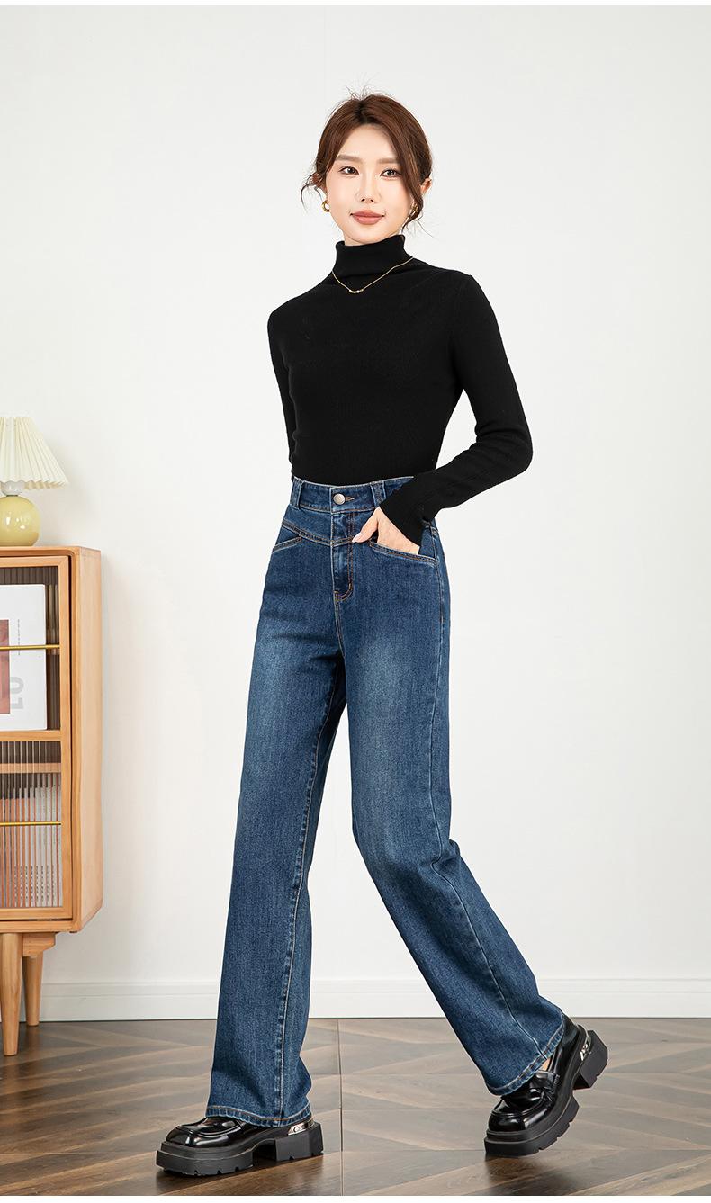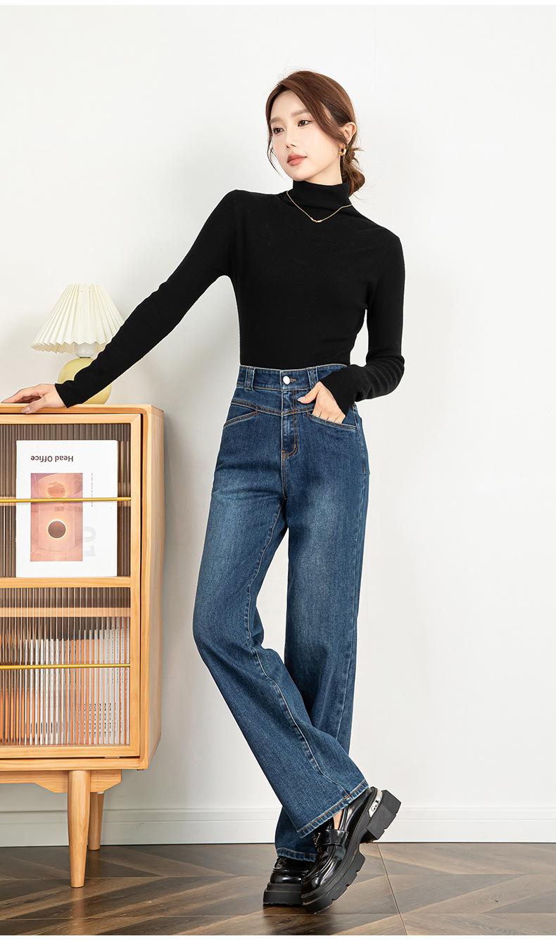 Venta Directa de Fábrica Jeans Slim 2025 Otoño Nuevo Sueltos Rectos de Cintura Alta Adelgazantes de Pierna Ancha Pantalones Largos hasta el Piso 8020
