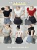 Sexy Sexy Camiseta de Manga Corta con Hombro Derecho Descubierto Bordada con Lazo para Mujer con Almohadillas en el Busto Top Exterior Corto Ajustado Verano