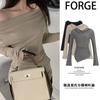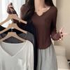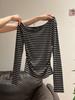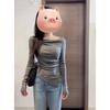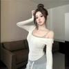 Camiseta de manga larga irregular con hombros descubiertos para mujer, estilo otoño, estilo Spice Girl, plisada, con cintura adelgazante, parte superior interior