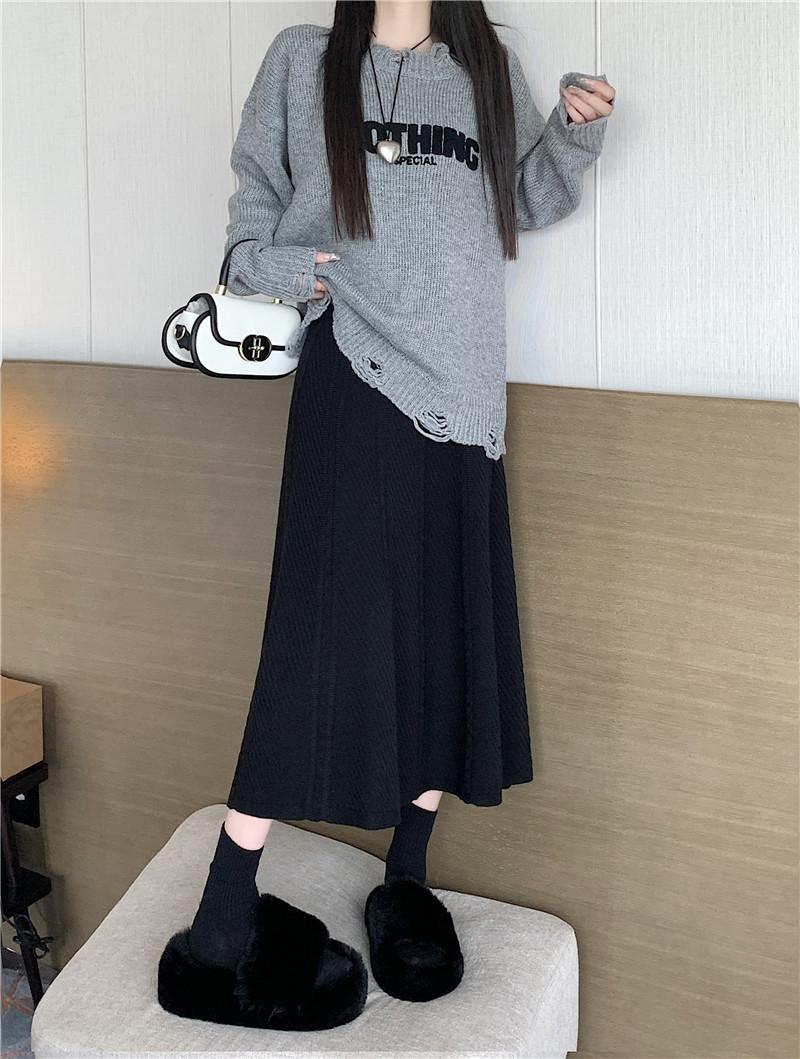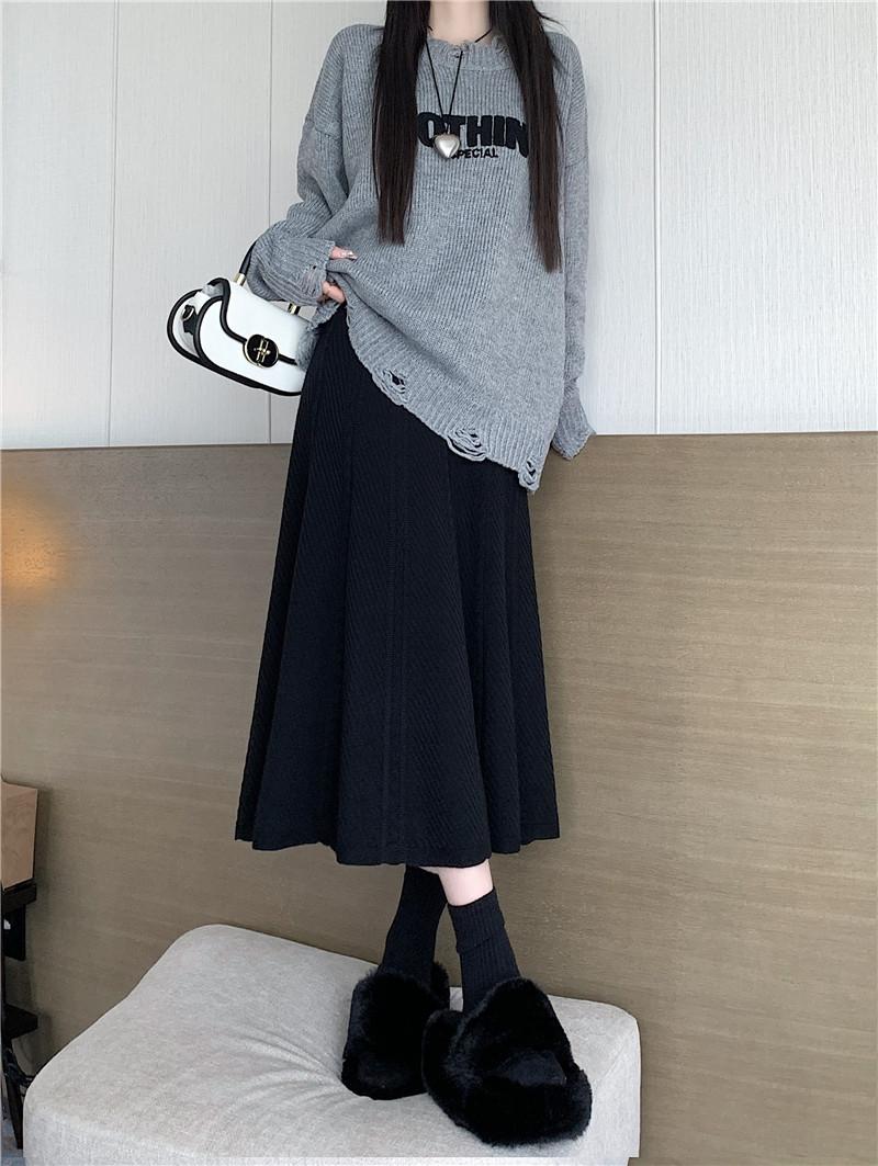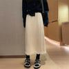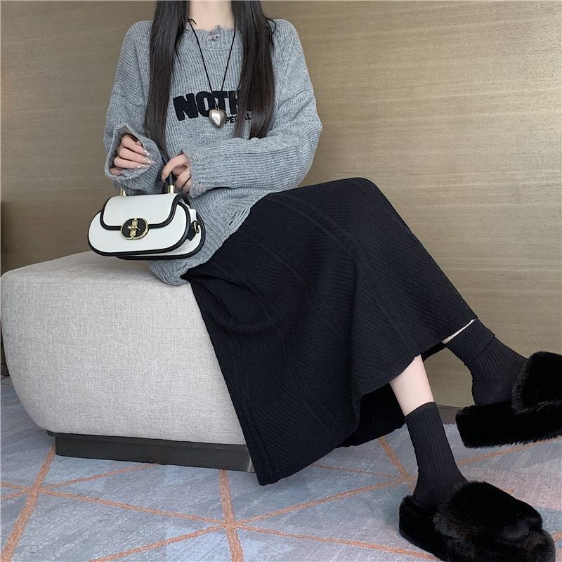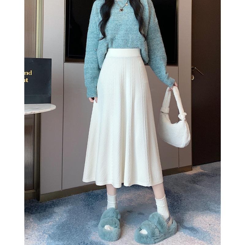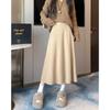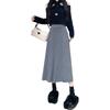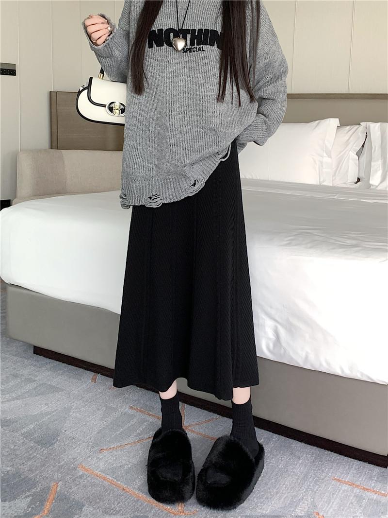 Falda de punto de lana con borlas gruesas negras para mujer, otoño e invierno, nueva, cintura alta, corte A, falda de longitud media con vuelo grande